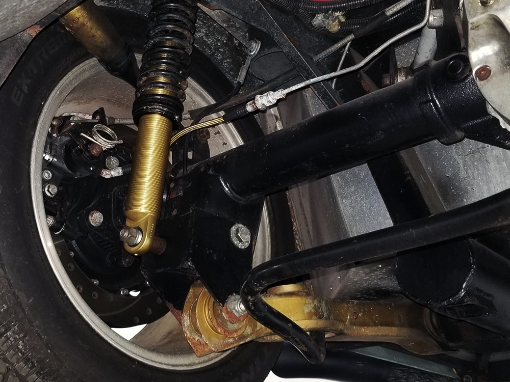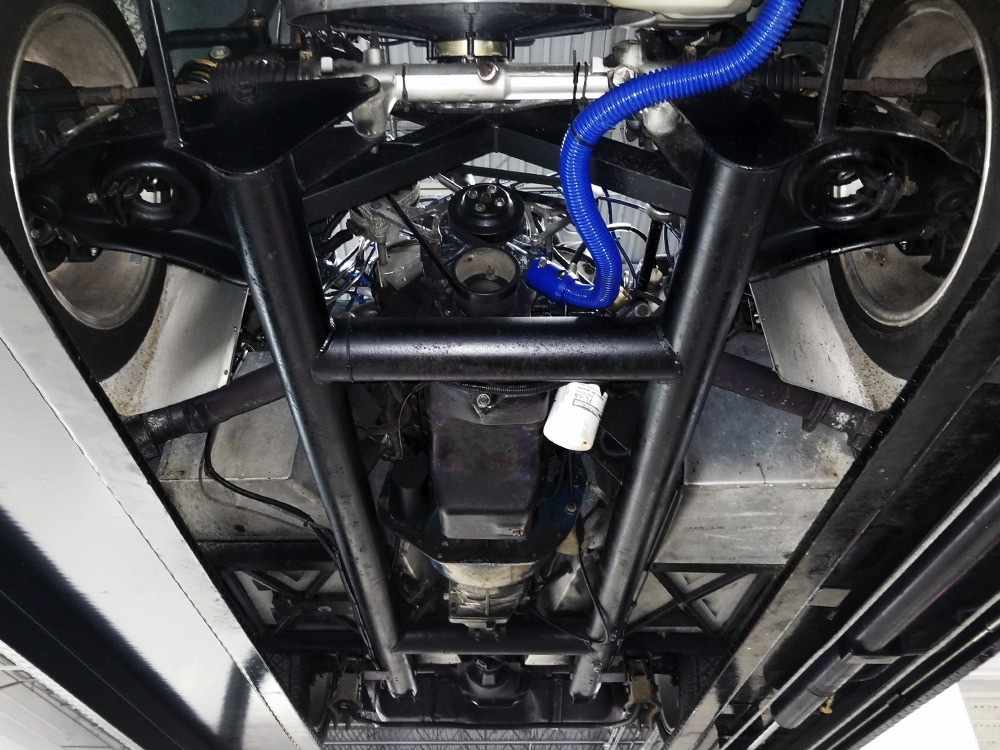 Factory 5’s chassis uses the same round tube ladder setup that the originals used, with CAD engineering to allow the Mustang components to bolt in place. There’s a Tremec 5-speed manual transmission with a stubby driveshaft spinning the Mustang’s 8.8-inch rear end, which feels like it has 3.73 gears inside—this sucker is PUNCHY! The front suspension uses custom coil-over shocks and tubular upper A-arms so ride height is adjustable, while the rear still uses the Mustang 4-link setup with coil-overs and quad shocks to tame the rear end. It works rather well, and this sucker does hook up hard! Brakes are beefy Wilwood discs all around, with the rears being brand new and installed at a cost of over $3000. Take a moment to note the beautiful aluminum panel work on the floors, the heavily reinforced chassis, and even the factory Mustang fuel tank hanging out back. You’ll have no problems servicing this Cobra and parts are available just about anywhere. Ride quality is surprisingly good for a Cobra and with so little weight, acceleration and braking will strain your neck muscles. And while Halibrands are cool, the 17-inch Cobra R wheels on this Cobra work extremely well and carry brand new 245/45/17 front and 275/40/17 rear continental performance radials.