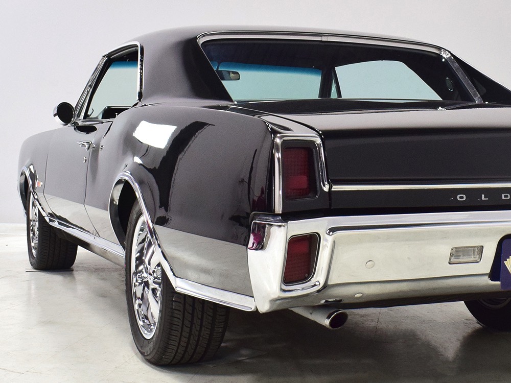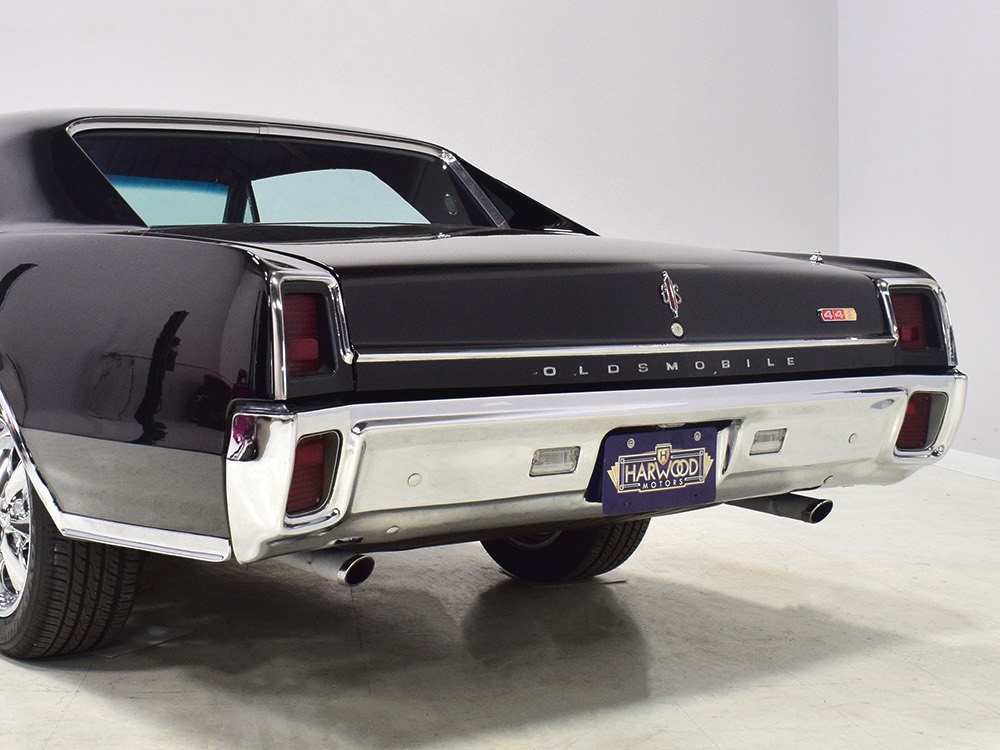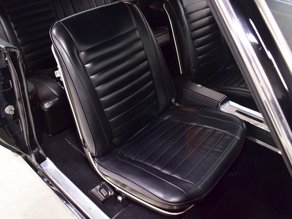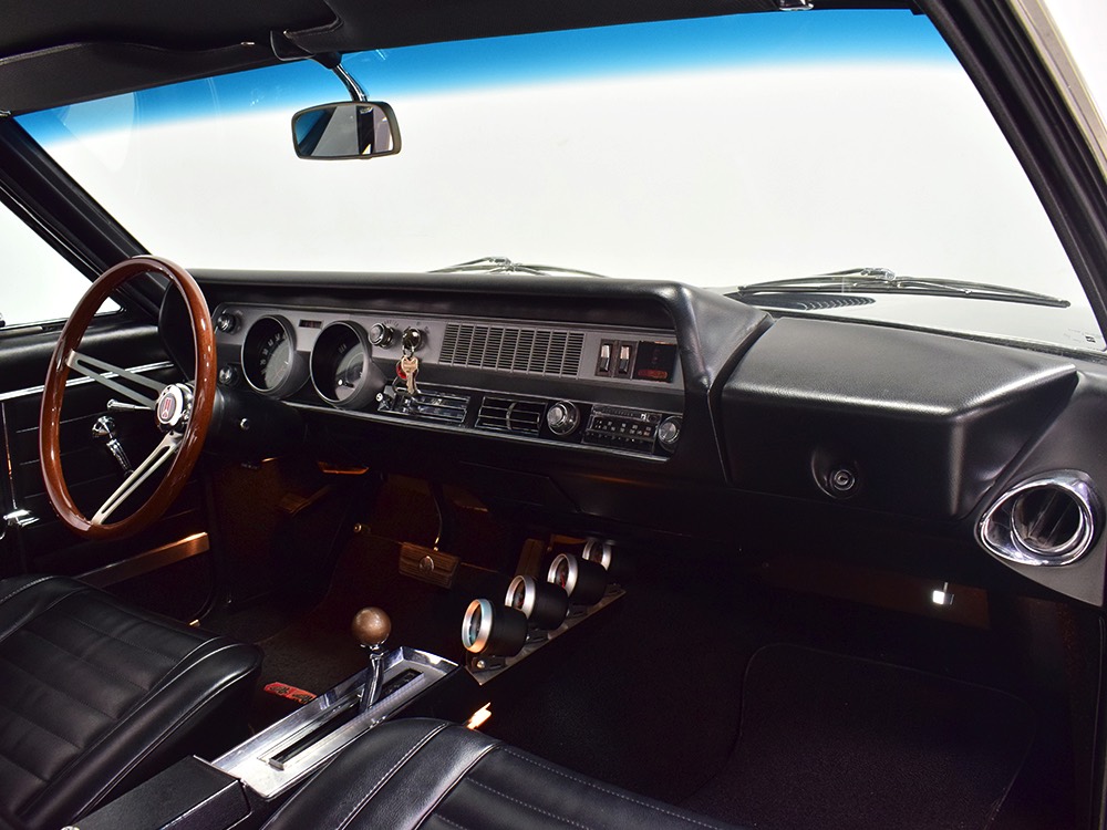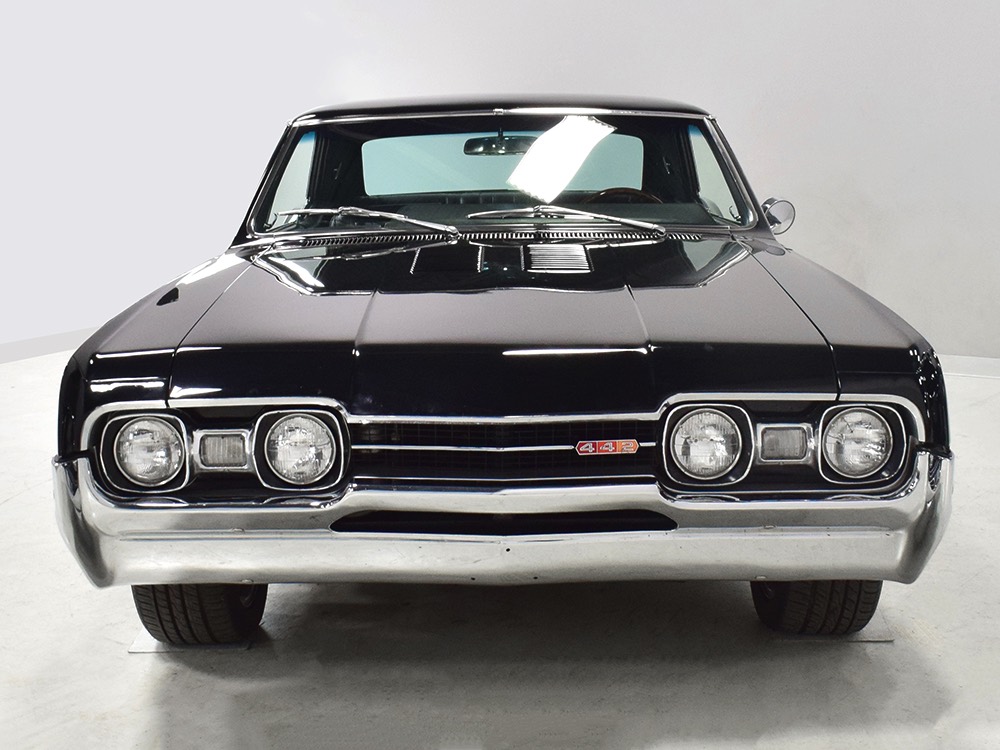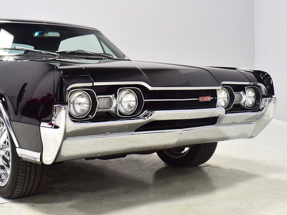 Don’t be fooled by the big wheels, this restored 442 is not too far away from the show field. In fact, the wheels and the carburetor/intake manifold are the lone modifications on what is otherwise a very correct car. The cowl tag will tell you that it was originally code H Aspen Green with a green vinyl top, but that’s a bit too much green even for 1967. So they stripped it down to bare metal, straightened the sheetmetal, and gave it a brilliant coat of code A Ebony Black instead, and we have to admit it works extremely well. No stripes, no add-ons, no spoilers, just the way a grown-up shopping at Oldsmobile would have wanted it. It remains in exceptionally good condition with none of the waves or dings that show up so easily in black paint and even though it shared the A-body platform with the Chevelle and GTO, the 442 has an identity all its own. The horizontal headlights were an Oldsmobile trademark look, the kick-up behind the doors adds a muscular crouch, and from behind it’s unmistakable. Awesome details include the louvered hood that’s just plain cool and the flying buttress C-pillars that give the 442 a sleek profile. Anybody can drive a Chevelle, but a 442 says you’ve got a little taste and sophistication.