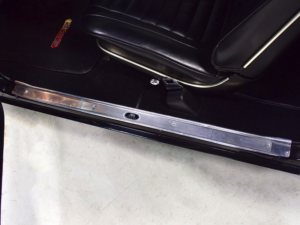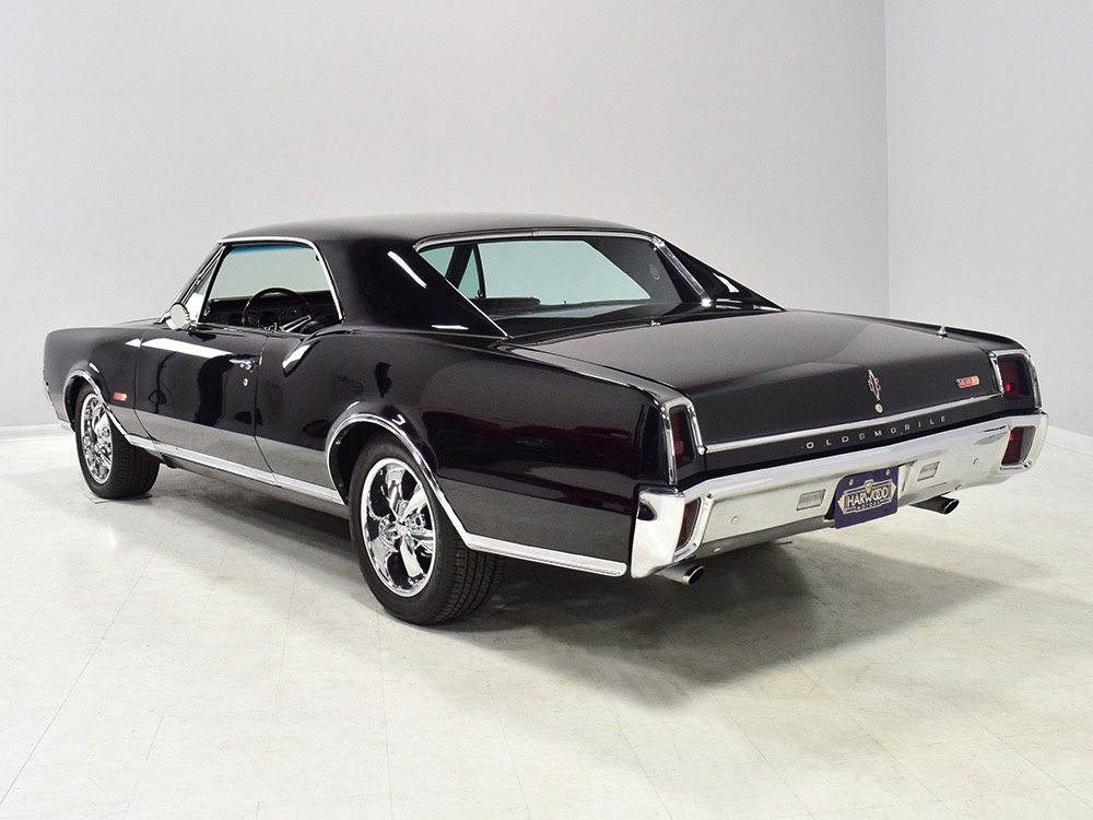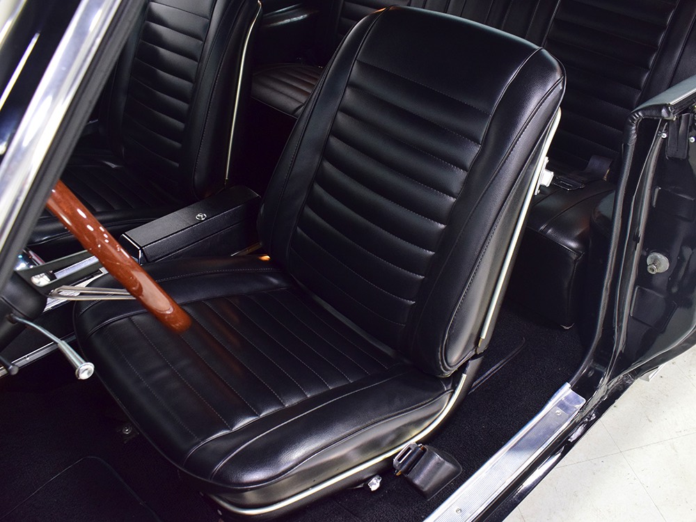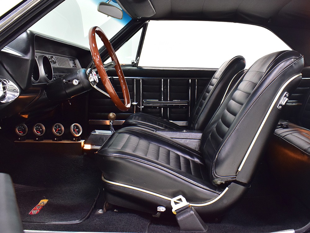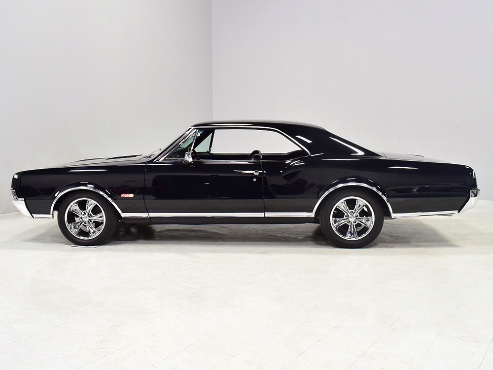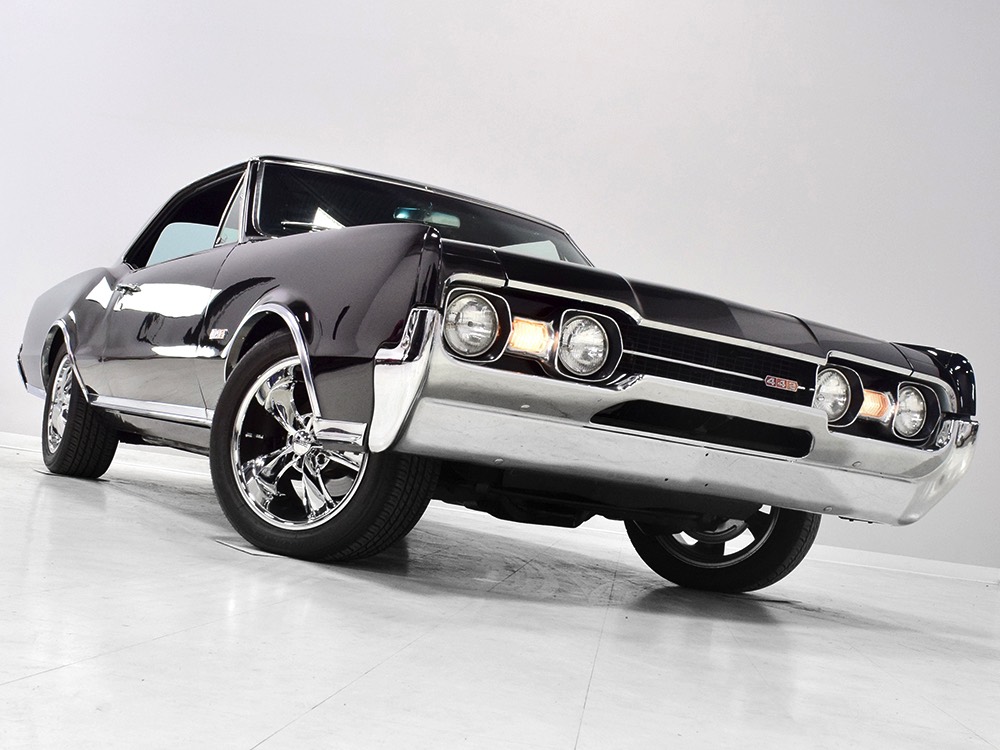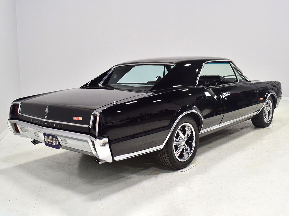 Don’t be fooled by the big wheels, this restored 442 is not too far away from the show field. In fact, the wheels and the carburetor/intake manifold are the lone modifications on what is otherwise a very correct car. The cowl tag will tell you that it was originally code H Aspen Green with a green vinyl top, but that’s a bit too much green even for 1967. So they stripped it down to bare metal, straightened the sheetmetal, and gave it a brilliant coat of code A Ebony Black instead, and we have to admit it works extremely well. No stripes, no add-ons, no spoilers, just the way a grown-up shopping at Oldsmobile would have wanted it. It remains in exceptionally good condition with none of the waves or dings that show up so easily in black paint and even though it shared the A-body platform with the Chevelle and GTO, the 442 has an identity all its own. The horizontal headlights were an Oldsmobile trademark look, the kick-up behind the doors adds a muscular crouch, and from behind it’s unmistakable. Awesome details include the louvered hood that’s just plain cool and the flying buttress C-pillars that give the 442 a sleek profile. Anybody can drive a Chevelle, but a 442 says you’ve got a little taste and sophistication.