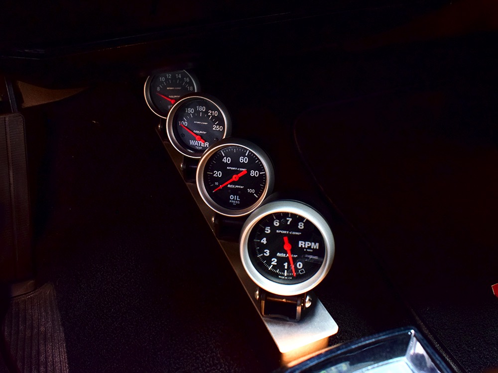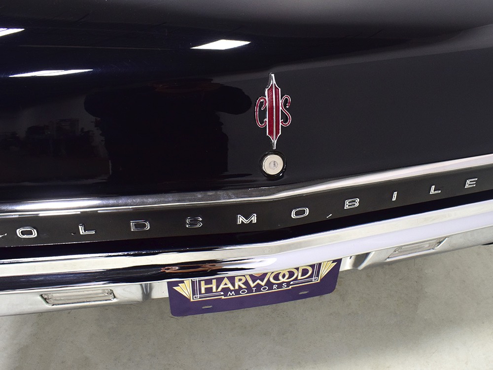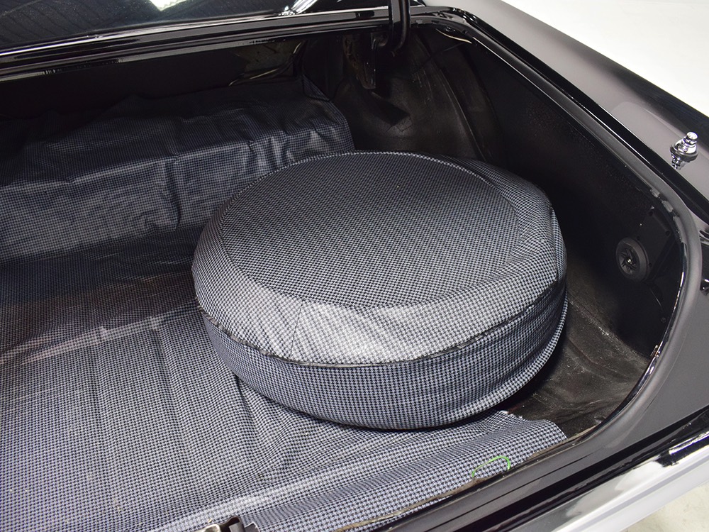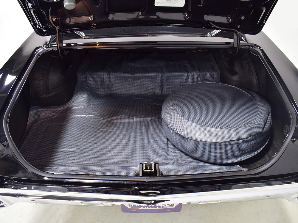 Code 970-B denotes the luxurious black bucket seat interior, and it explains exactly why people paid extra to own an Olds. The upholstery is far more plush, the carpets better insulated, and the overall look is very upscale. The wood-rimmed steering wheel certainly helps, and it matches the shifter ball on the center console to warm up the otherwise monochromatic interior. Factory gauges covered the basics of speed and fuel level, and those dials are in good shape. Someone has also thoughtfully added a full set of Auto Meter gauges on the center console, including a tachometer, all angled towards the driver so it almost looks OEM. The list of options in this 442 include ice cold factory A/C (with R134a refrigerant for easy service), AM/FM radio with power antenna on the rear deck, tilt steering column, and a rather rare rear defroster which uses a blower on the rear package shelf. Everything works correctly including the clock, and you’ll quickly find that there aren’t many better places to spend your time than behind the wheel of this Olds. Sight lines are good, there’s plenty of room in the back seat, and the massive trunk is finished with a correct mat and full-sized spare with cover. Look, even the trunk light works!