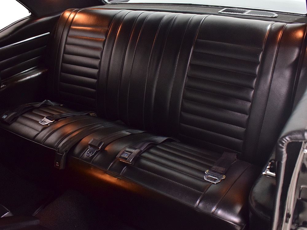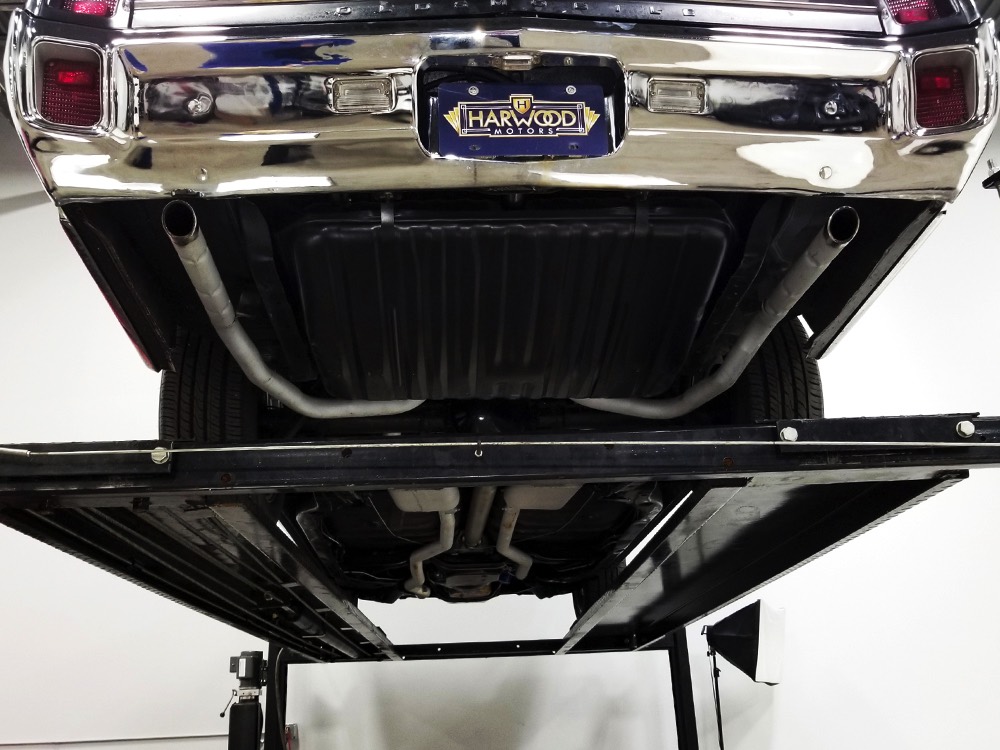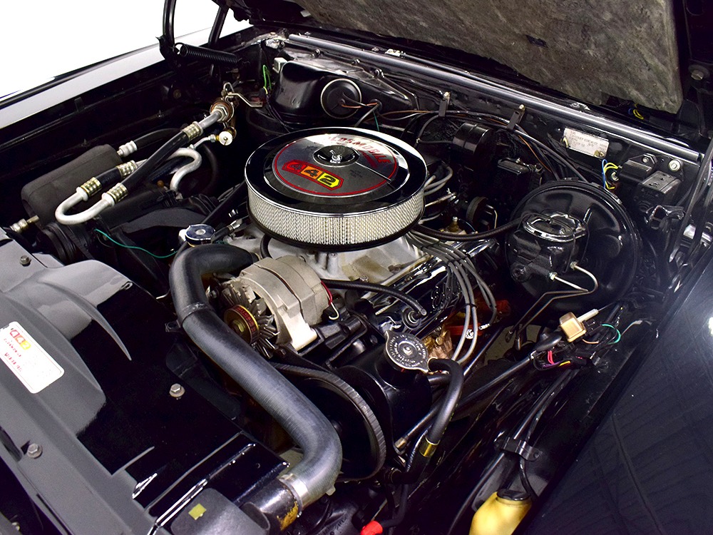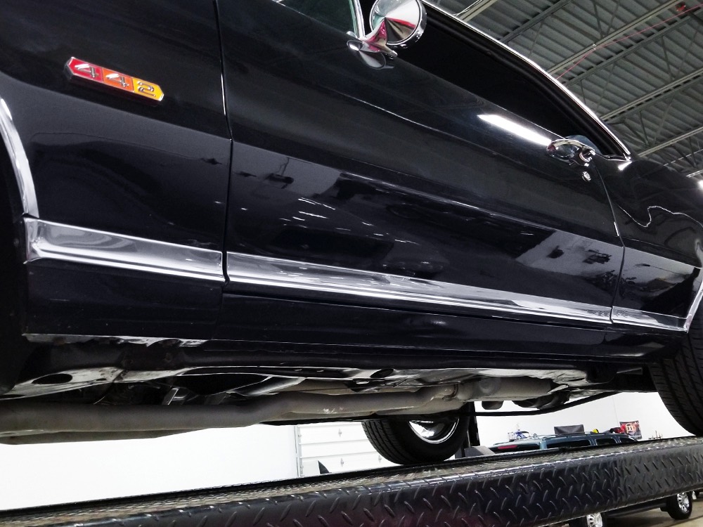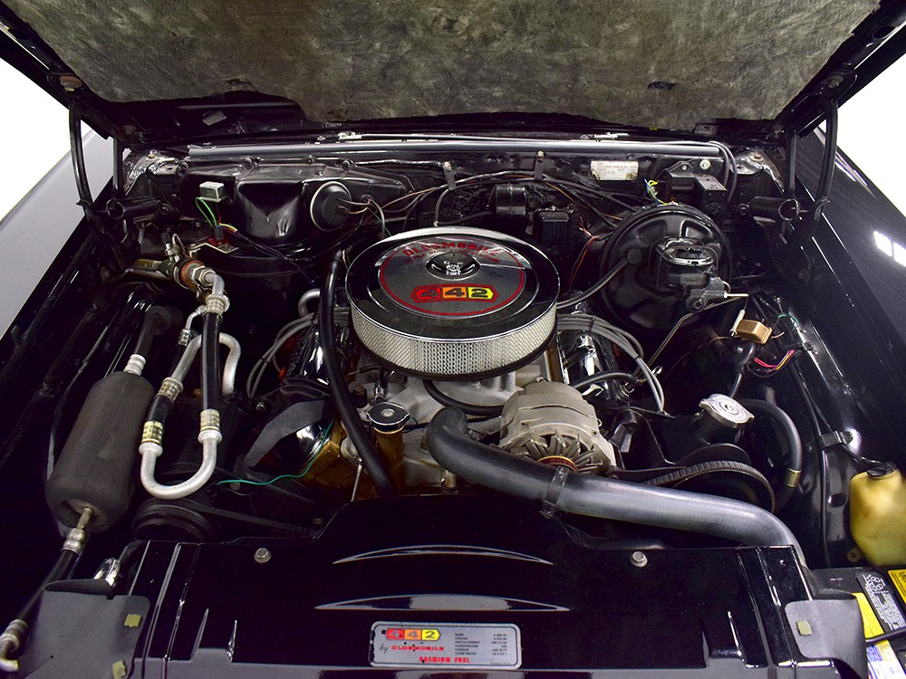 You can see the thoroughness of the restoration underneath, where ultra-clean floors, a rebuilt suspension, and recent Flowmaster exhaust system suggest a quality car that had a lot of money spent on it. The TH400 3-speed automatic transmission was the only auto-box able to handle the 400’s torque and it channels the twist to a rugged 12-bolt rear end with modest 3.23 gears inside. You’ll note correct disc brakes up front, fat sway bars front and rear, and those 442-only boxed lower control arms out back. And as long as you’re looking around, check out those unmarked inner rockers, a sure sign of a car that has lived in a warm climate. New shocks, new lines and hoses, and a fresh gas tank out back mean this 442 is 100% ready to cruise. As I mentioned, those 17-inch Foose Legend wheels aren’t exactly original equipment but they sure look awesome with fat 235/50/17 front and 235/55/17 rear performance radials. And if you want an original look, this car also includes a set of stock Magnum 500 wheels with recent redline radials (see photos).