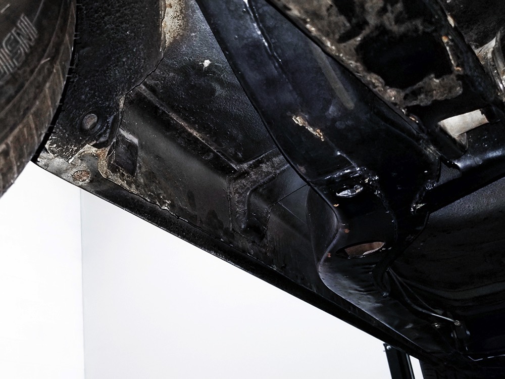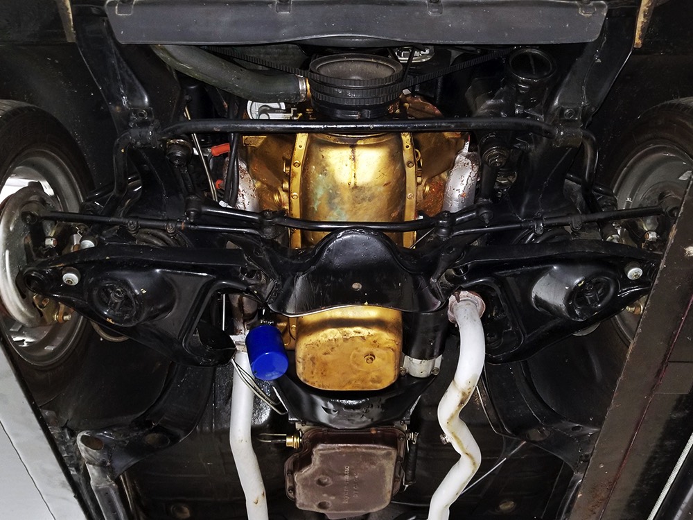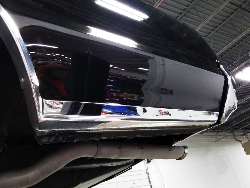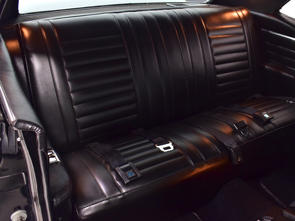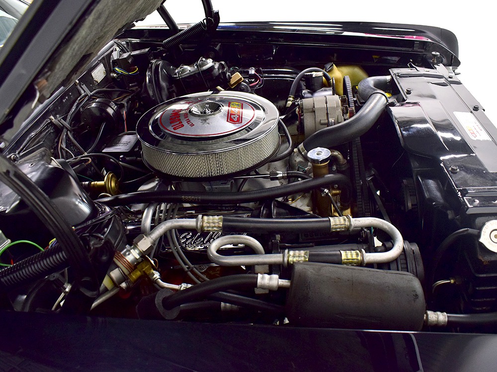You can see the thoroughness of the restoration underneath, where ultra-clean floors, a rebuilt suspension, and recent Flowmaster exhaust system suggest a quality car that had a lot of money spent on it. The TH400 3-speed automatic transmission was the only auto-box able to handle the 400’s torque and it channels the twist to a rugged 12-bolt rear end with modest 3.23 gears inside. You’ll note correct disc brakes up front, fat sway bars front and rear, and those 442-only boxed lower control arms out back. And as long as you’re looking around, check out those unmarked inner rockers, a sure sign of a car that has lived in a warm climate. New shocks, new lines and hoses, and a fresh gas tank out back mean this 442 is 100% ready to cruise. As I mentioned, those 17-inch Foose Legend wheels aren’t exactly original equipment but they sure look awesome with fat 235/50/17 front and 235/55/17 rear performance radials. And if you want an original look, this car also includes a set of stock Magnum 500 wheels with recent redline radials (see photos).