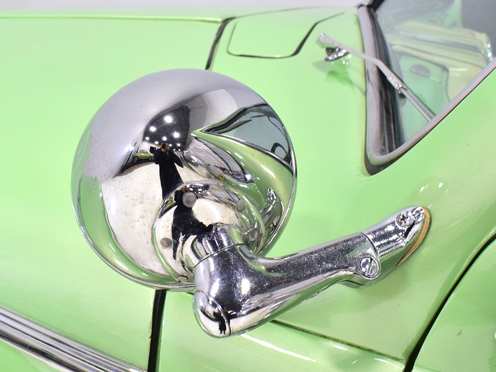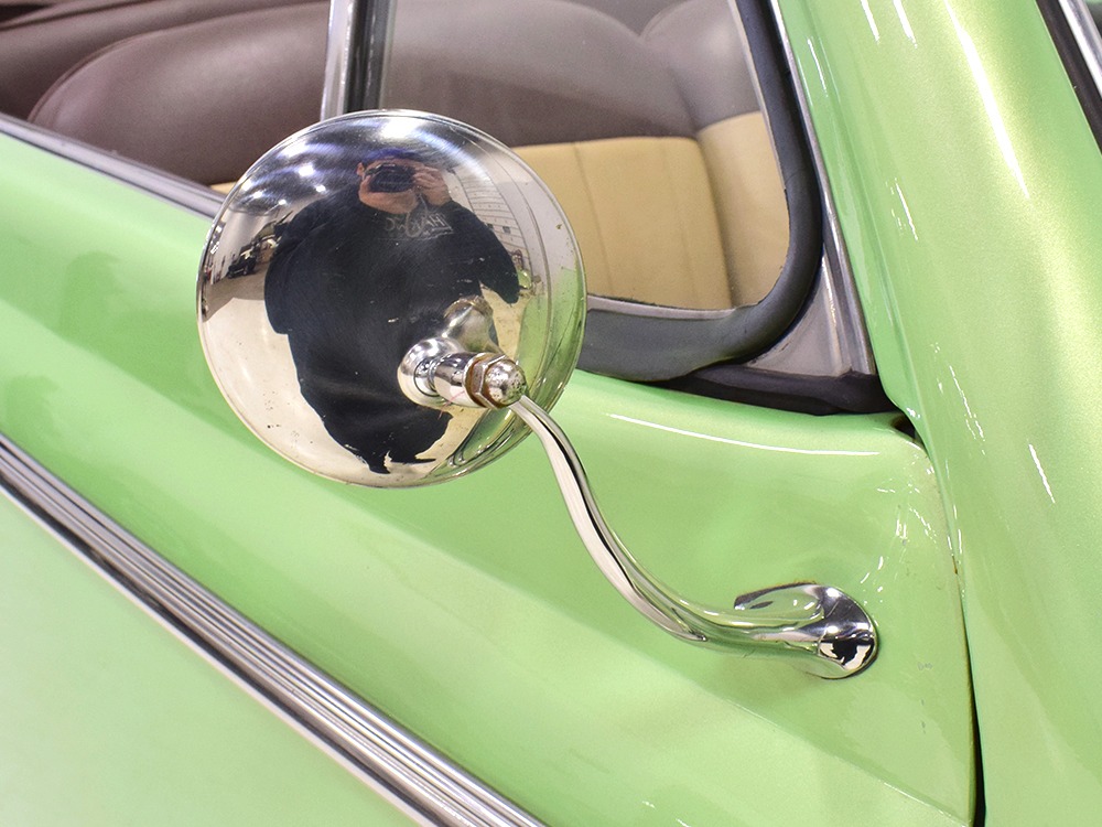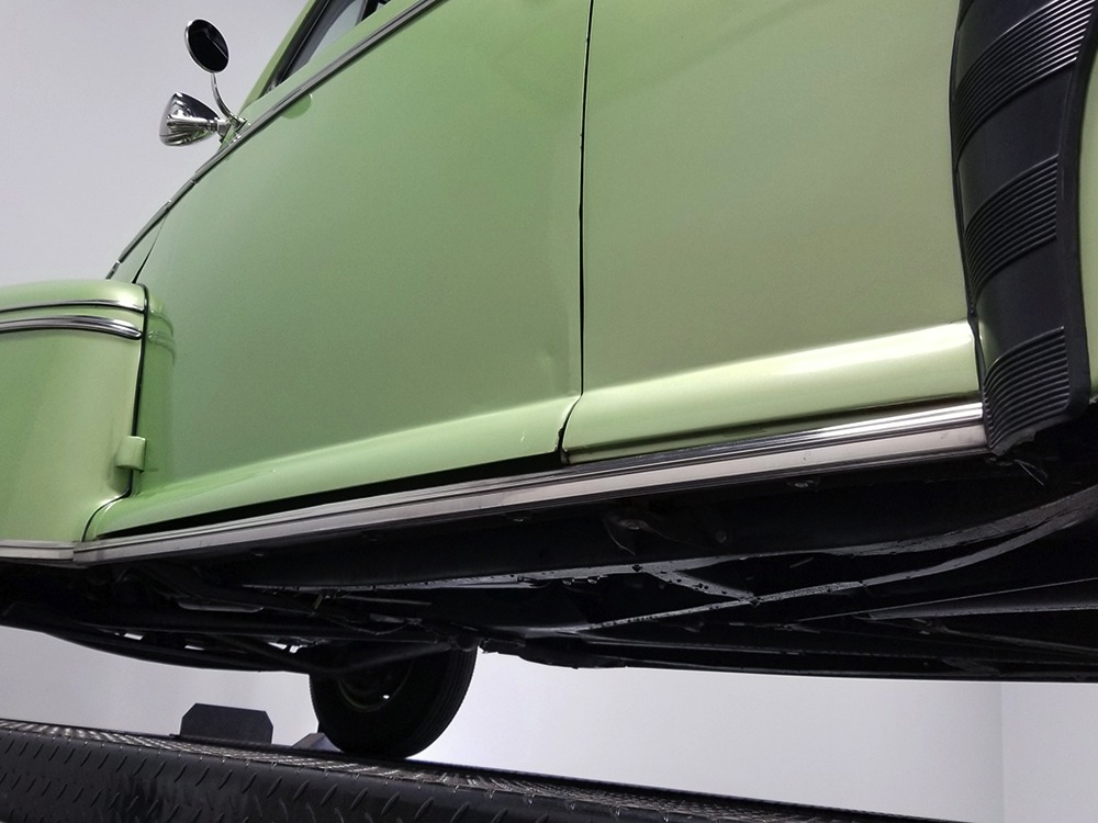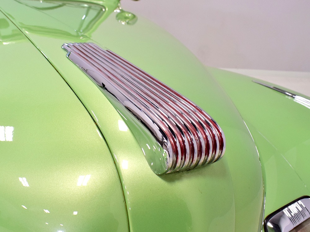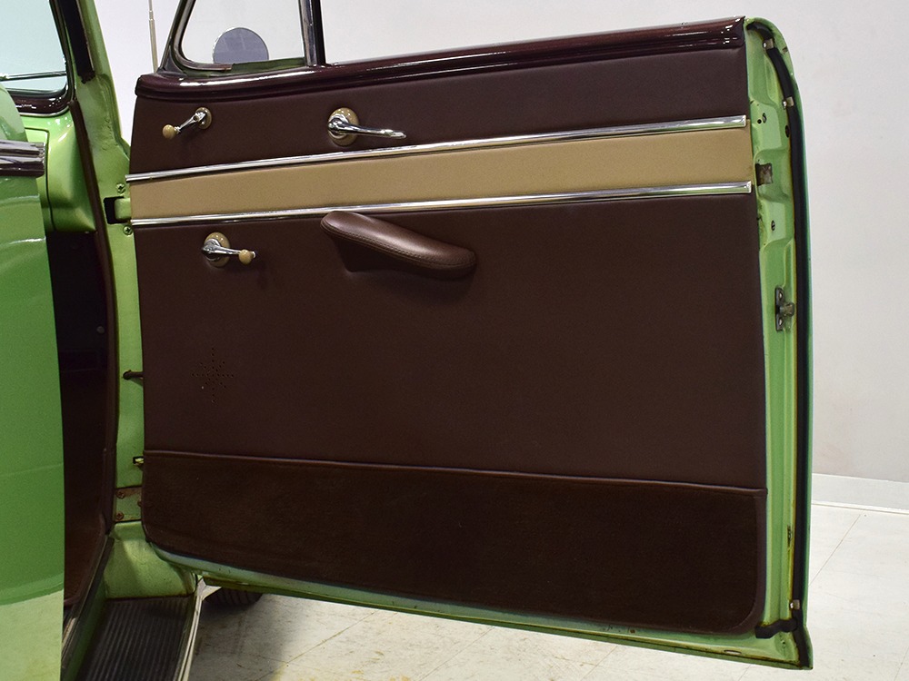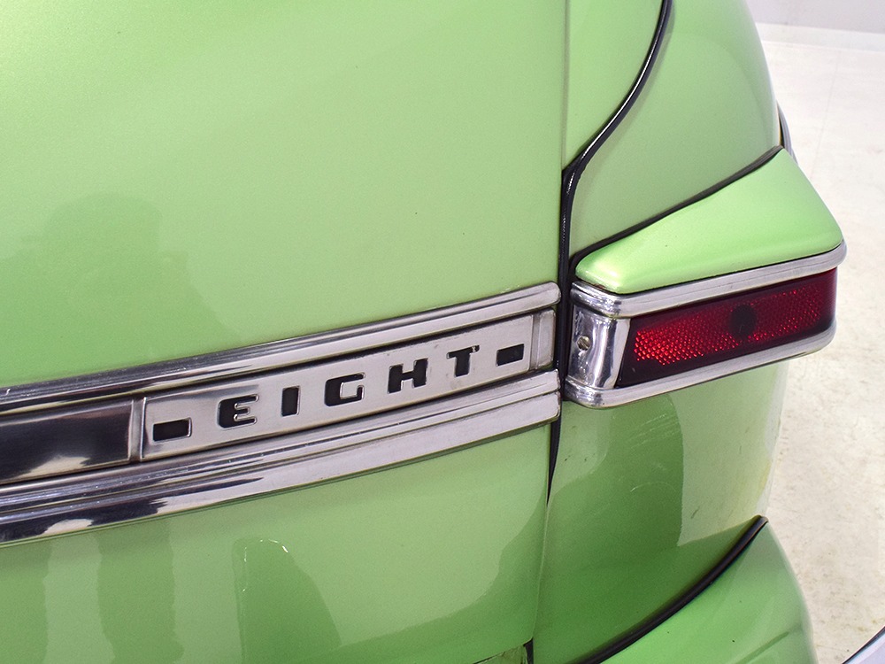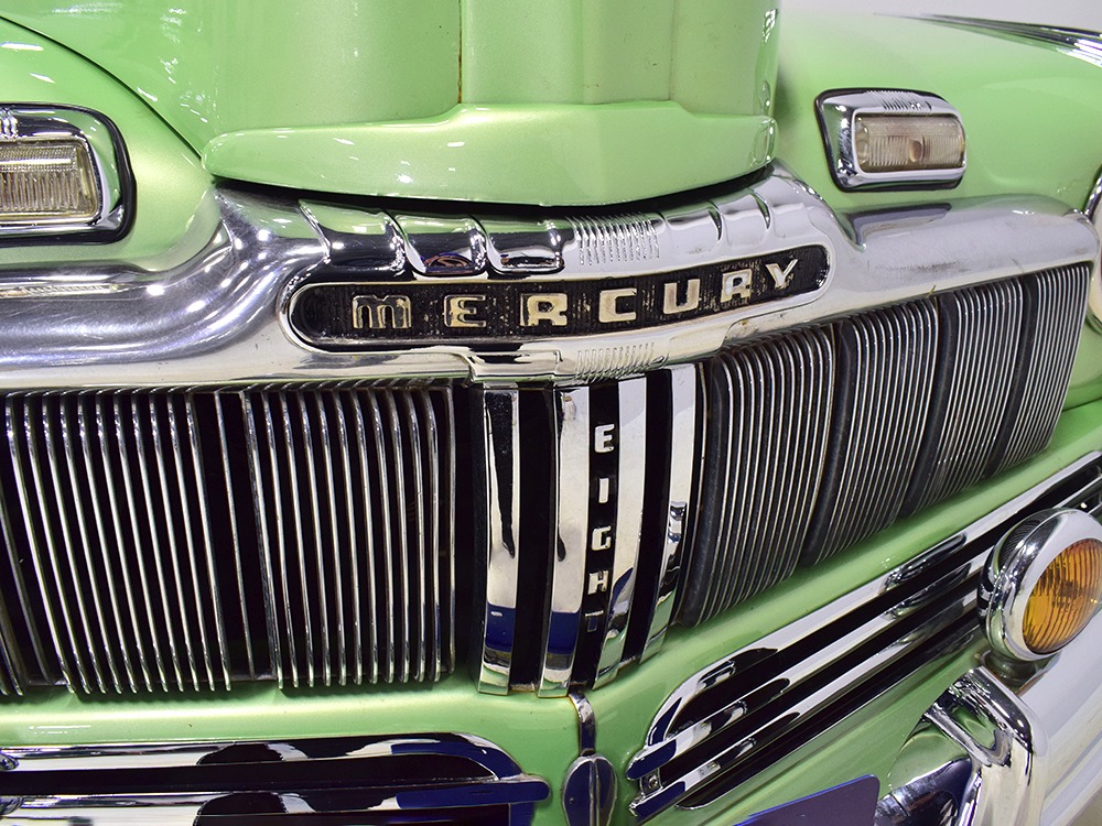 That bright green paint wasn’t on the color chart for 1947, but it doesn’t look wrong on the curvy Mercury bodywork, either. There’s a hint of metallic in the final finish and it just glows out in the sunlight, making this car impossible to miss. Underneath, however, none of the factory bodywork was altered, all the original chrome and stainless trim was retained, and it still looks like a car from 1947 is supposed to look. Although it looks very much like the post-war Fords, the Mercury sits on a 4-inch longer wheelbase and none of the body panels are interchangeable—in the flesh, the Merc looks quite a bit more substantial. The familial resemblance is undeniable, but Mercurys received that unique “electric shaver” grille, extra stainless trim on the fenders, and unique emblems and badging that mean it can be recognized at a glance. During the comprehensive restoration, all that brightwork was restored, including the bumpers, which feature rare (and very expensive) bumper ends that really dress the car up nicely. Other accessories include fog lights, a spotlight on the driver’s A-pillar, and a set of aftermarket blue dot headlights that light up the road like flamethrowers at night. Workmanship is quite good, with straight bodywork, good fit and finish, and an overall feeling that the car is well-assembled and durable, which is surely how it felt when it was new.