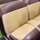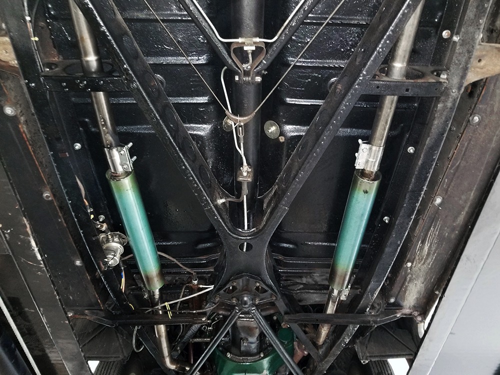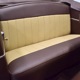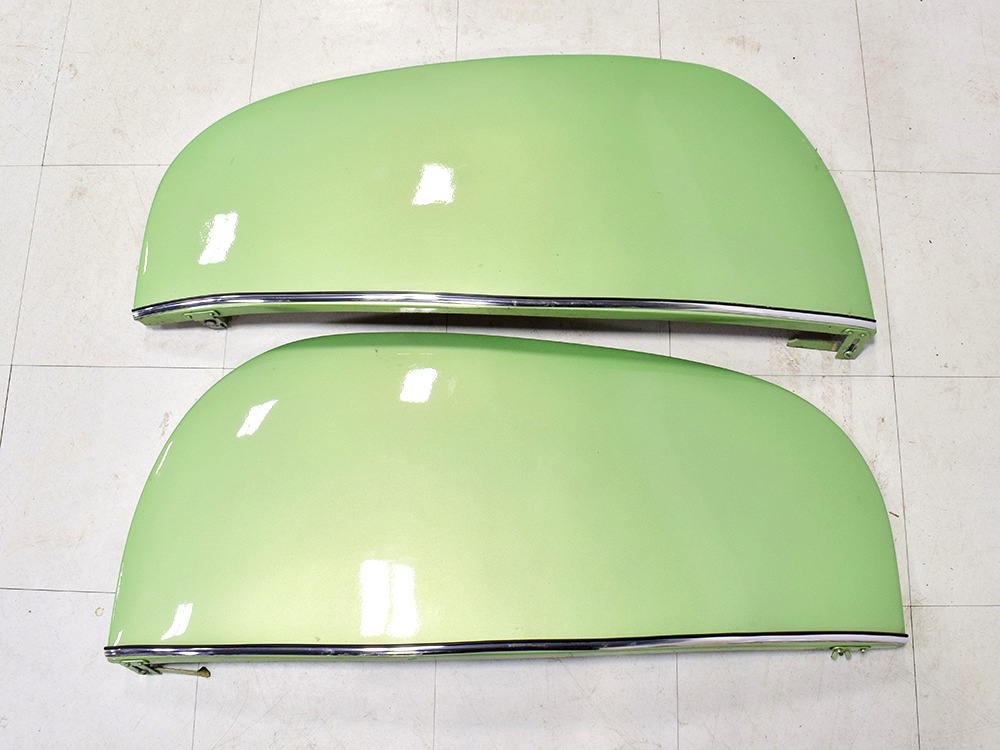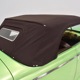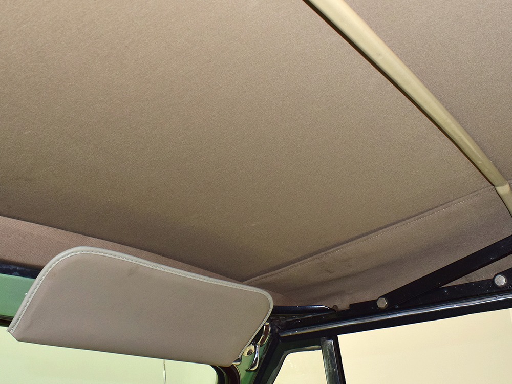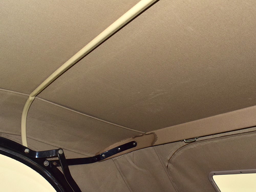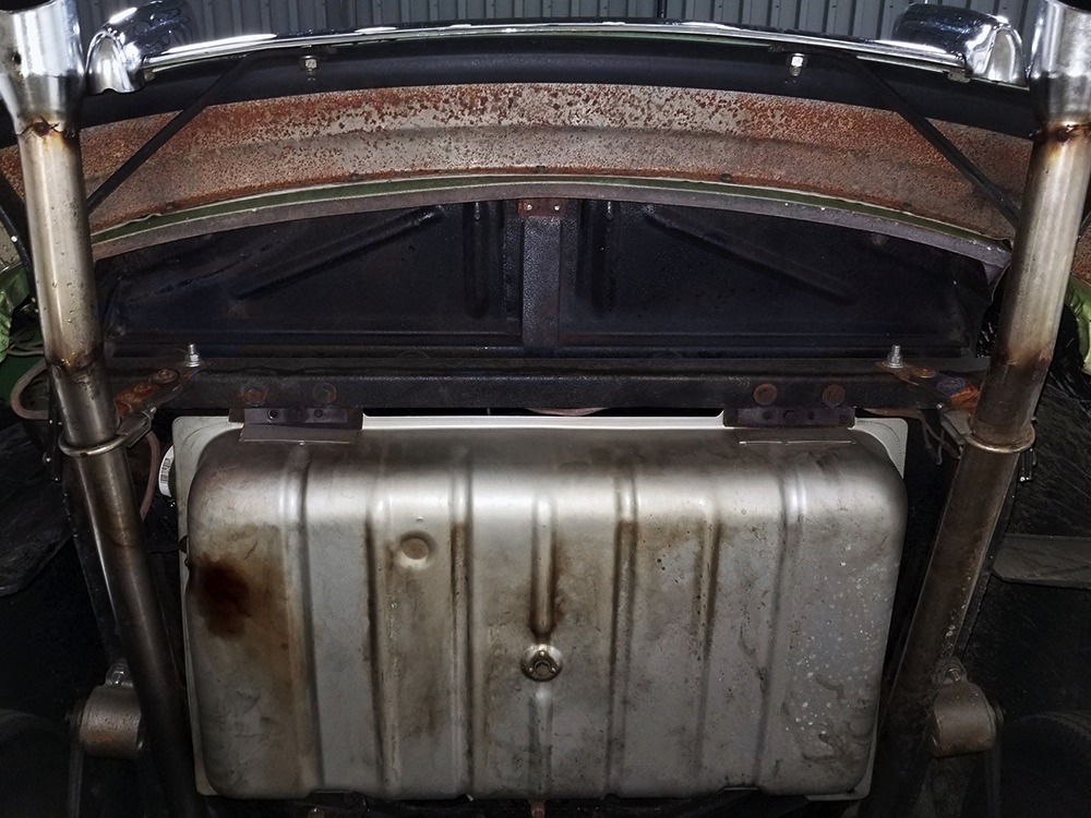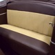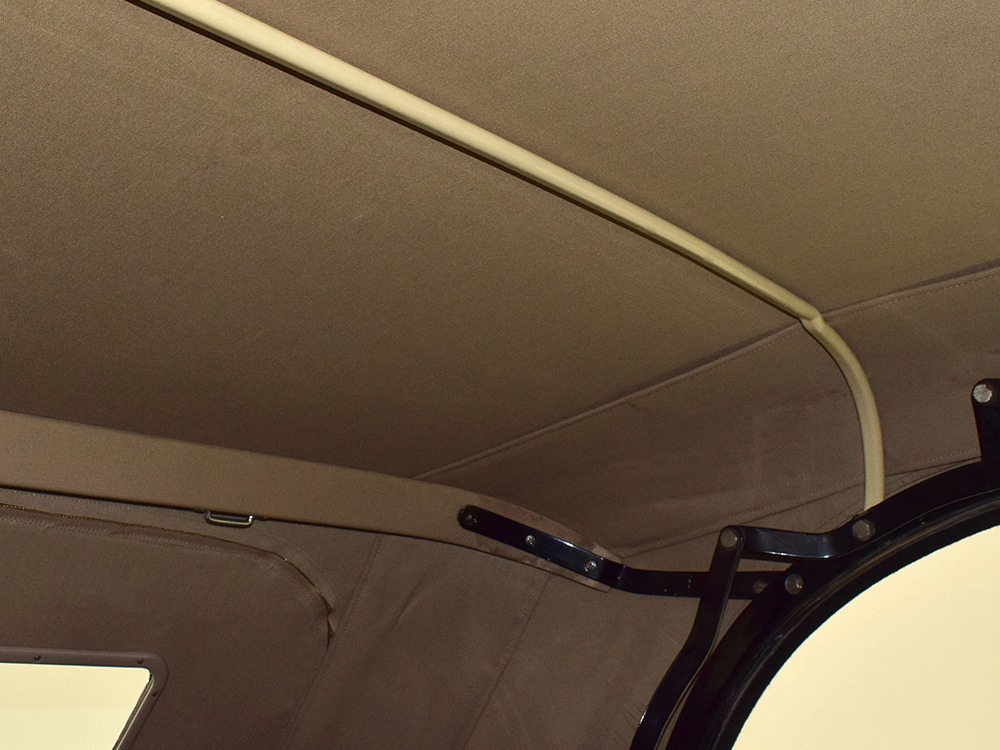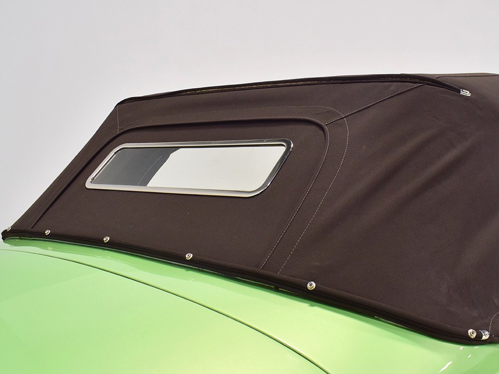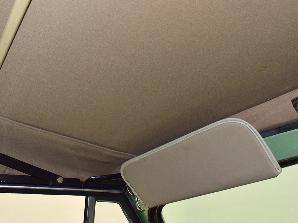 The two-tone interior was freshened using soft leather instead of the original vinyl, and it makes a difference from the moment you slide behind the wheel. The handsome seat covers were custom made to match the original look and there’s new padding underneath so it’s comfortable for long drives. Matching door panels in the original style were created at the same time and there are fresh carpets and mats on the floor, all bound to look like they were born there. The dash was obviously repainted to match the bodywork and retains its original plastic moldings and original gauges, all of which are operational. The electrical system has been converted to 12 volts so things like the wipers and radio have been updated in the interest of making driving a bit safer and more interesting, and we like that they worked hard to retain things like the accessory under-dash heater. Overhead there’s a beautifully made canvas convertible top, and it folds easily with a touch of a knob under the dash then stashes under a matching vinyl boot. The trunk is trimmed to match the interior, with new bulkheads and carpets, as well as a matching full-sized spare tire that’s never been used and a remote CD changer. Nice!