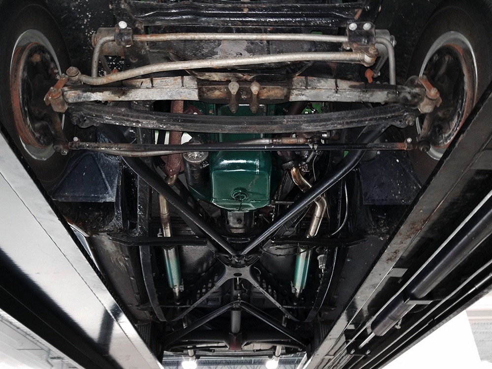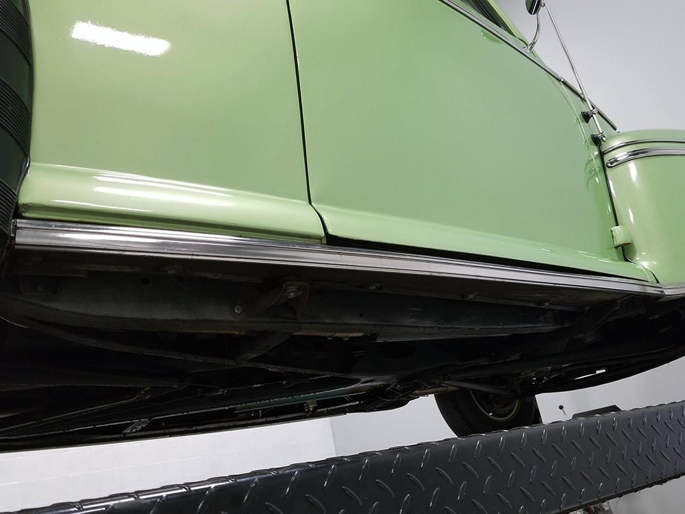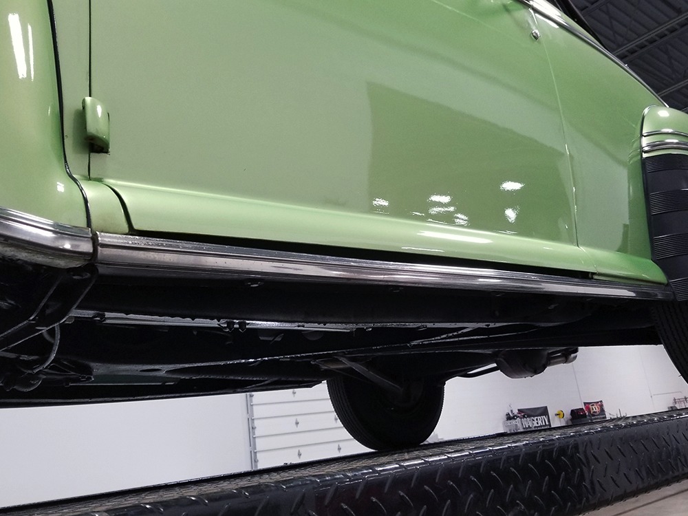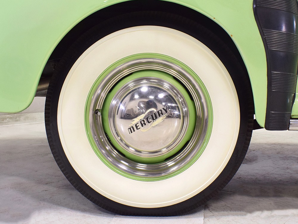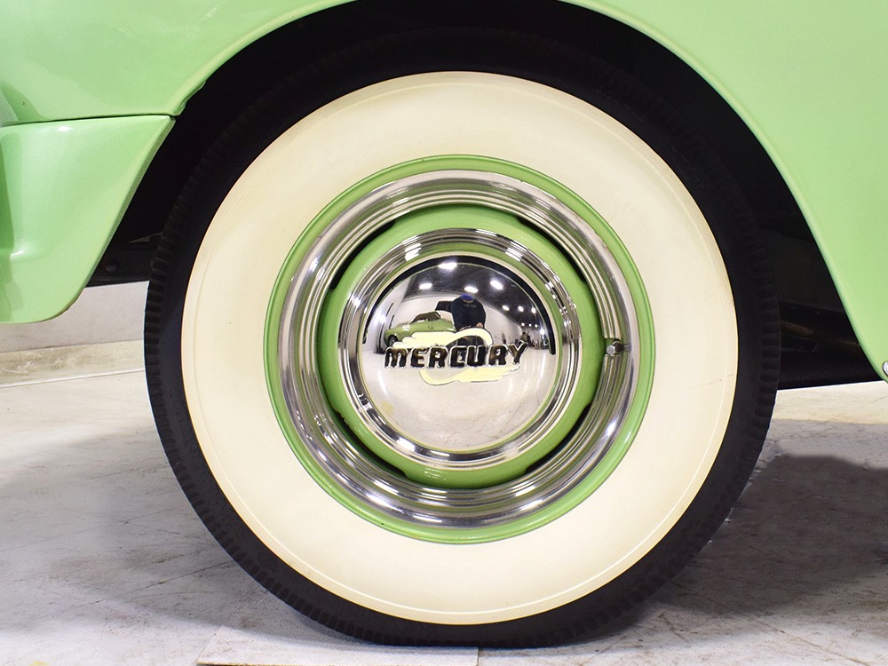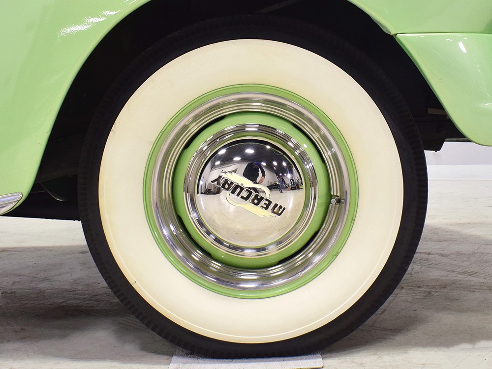 Underneath, the chassis and floors are in excellent condition with no signs that it was ever a rusty car. The stock 3-speed manual has a fresh clutch that doesn’t have the usual flathead chatter, even in reverse, and the original rear end features 3.55 gears for decent cruising under all conditions. The suspension is completely stock, right down to the correct gaiters on the transverse leaf springs and stock drum brakes all around are plenty effective for the car’s performance. Dual exhaust with Smitty mufflers sounds like it’s 1954 all over again and it has the kind of springy, eager handling that makes all flathead Fords (and Mercurys!) a delight to drive. The floors are in great shape with nothing to hide, the lines and hoses were all replaced during the restoration, and there’s a new gas tank hanging out back. Factory 16-inch wheels carry Mercury hubcaps and trim rings, as well as correct 6.70-15 BFGoodrich Silvertown wide whitewall tires.