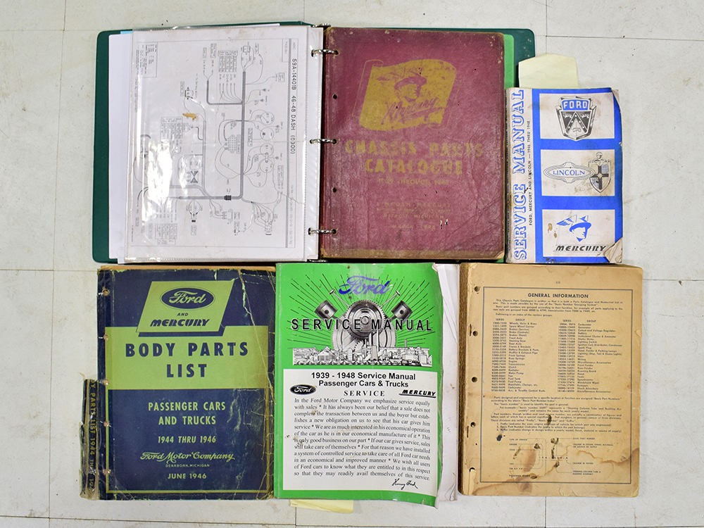 This Merc also includes a LOT of extras, including a set of restored fender skirts that are ready to install, a complete set of books and manuals, wiring diagrams, parts lists, and a lot of spare parts such as trim pieces, the original radio, mechanical fuel pump, gauges, original air cleaner, hubcaps, a spare transmission, the original intake manifold and generator, and much more!