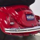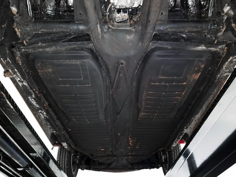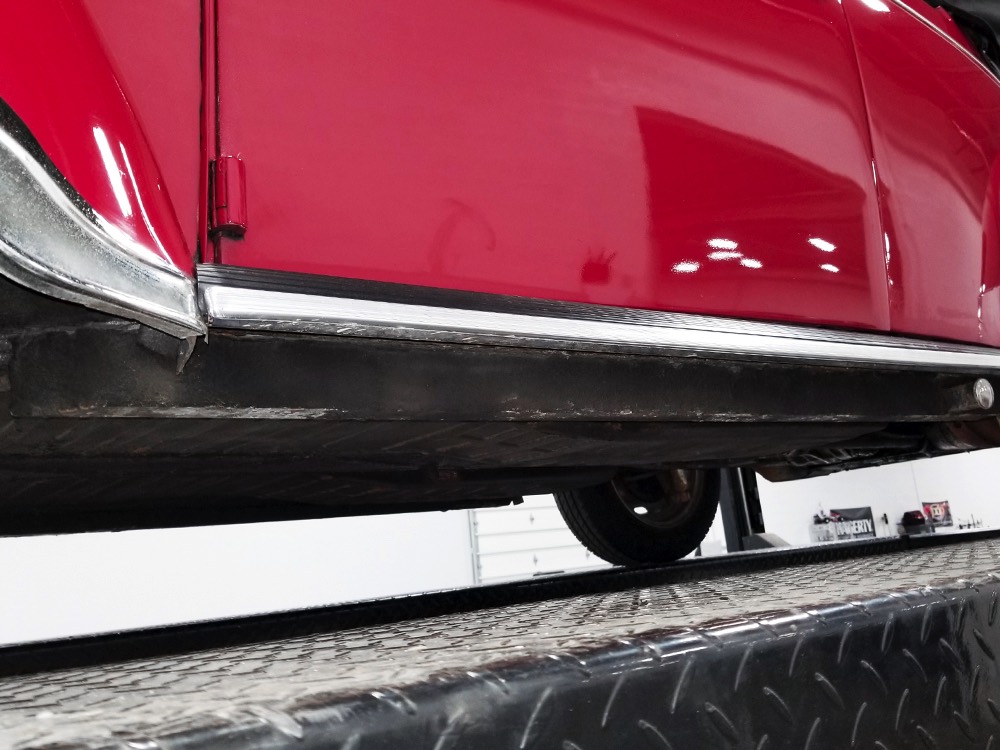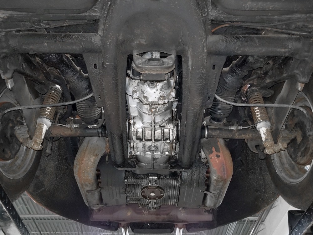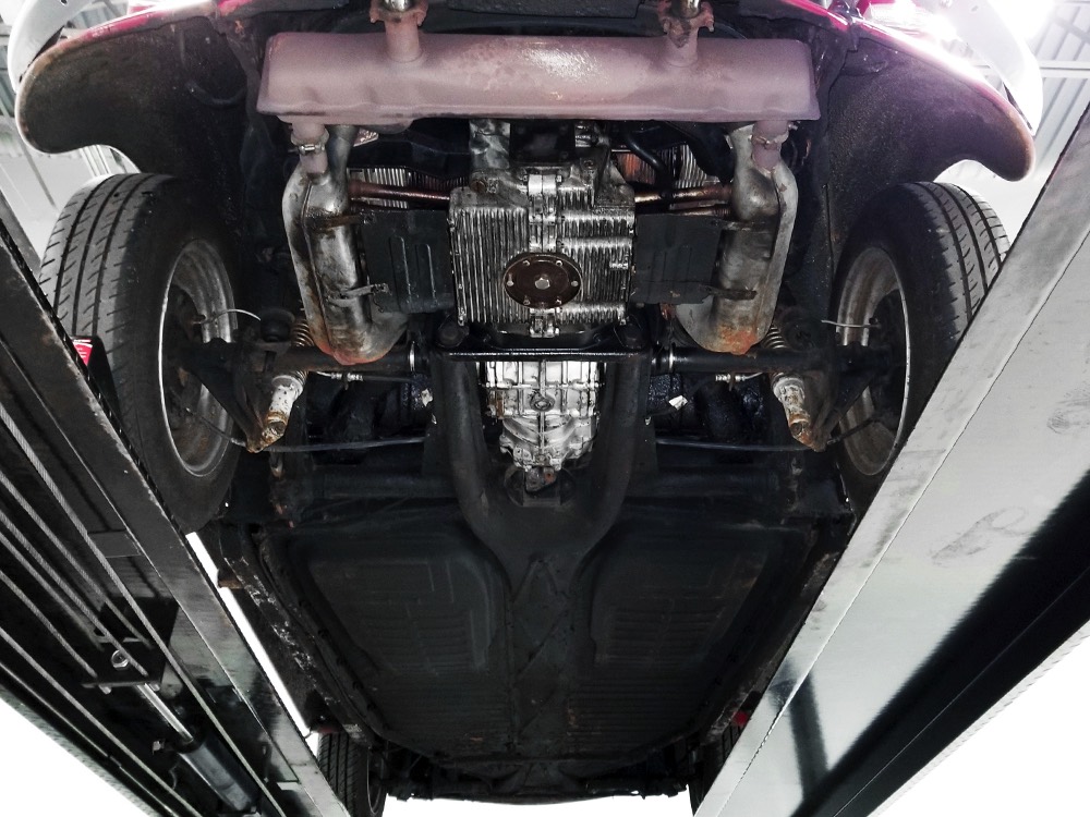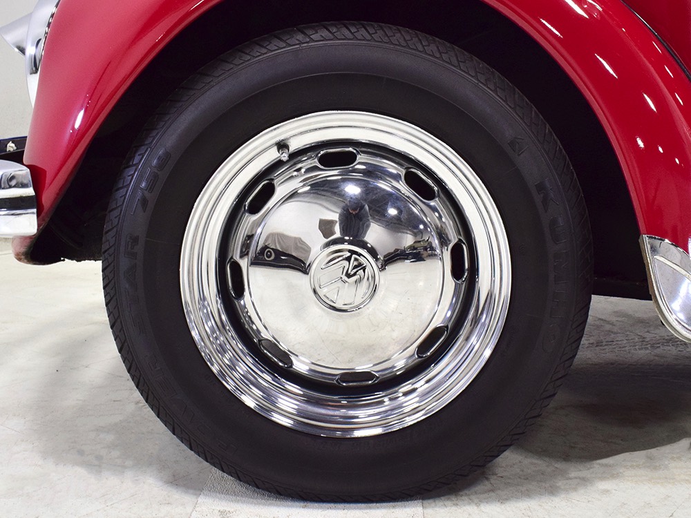 Underneath it’s a little grimy, but that only means that it has been driven and used as intended. When the car was painted a few years ago, the floor pans were also replaced, so it’s quite solid underneath (floor replacement on a Beetle is not a big deal). Brakes and steering are standard Beetle equipment and the 4-speed manual transmission shifts as well as any we’ve driven, although it’s still a bit vague (no avoiding that). A newer exhaust system sounds right and handling is agile enough without being brittle. Chrome steel wheels add some flash and it carries fresh 165/80/15 radials that ride and handle great.