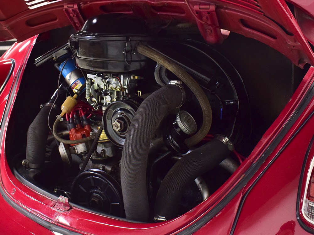 Beetles are easy to love, so it shouldn’t be a surprise that this one has been with the same owner for more than 30 years. Over that time, he has pretty much restored everything on the car, making for one of the nicest VWs we’ve ever featured. The beautiful cranberry red bodywork was refinished a few years ago, and included repairing any rust they found, so it’s in first-rate condition today. Yes, there are a few signs of use, because part of loving a car like this is using it as intended, but it shines up beautifully and the color seems to draw more than its fair share of admirers. This ’68 Beetle retains all the traditional styling cues, including the smaller marker lights and red taillights, the flat windshield, and simple steel bumpers, which add to the charm. Fit and finish are typical Volkswagen, which is to say, excellent—these were inexpensive cars but they weren’t cheaply made. There’s some oxidation on the chrome bumpers, but it doesn’t affect the overall look and if you insist on perfection, replacements are inexpensive and easy to find. Fresh weather seals and fender welting make it feel substantial and it certainly has a cheerful look.