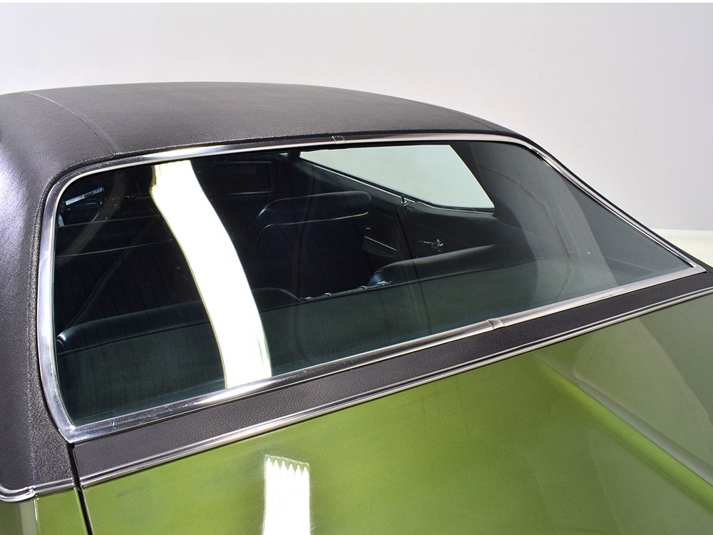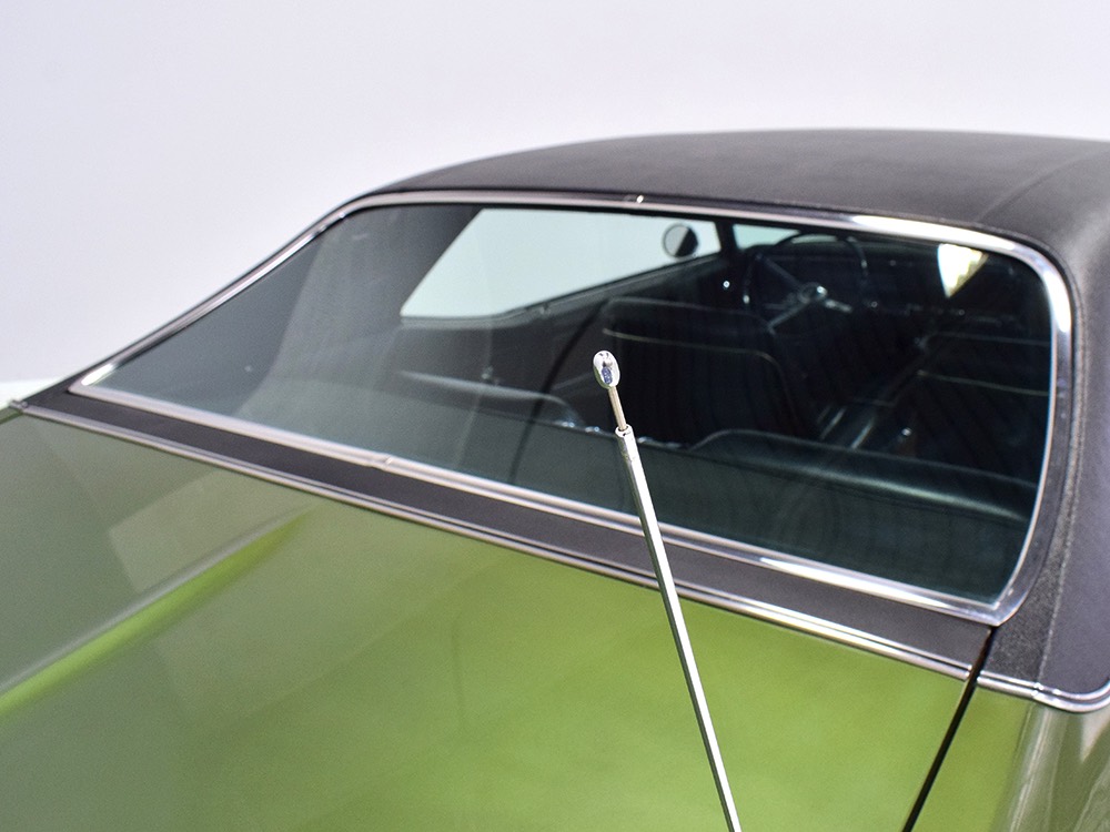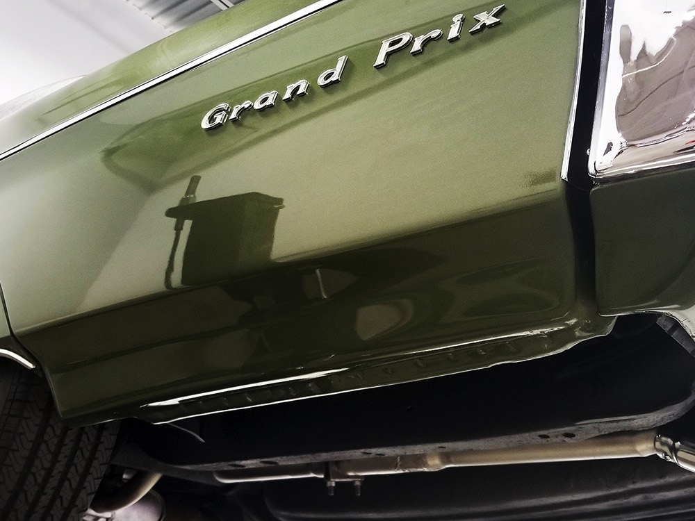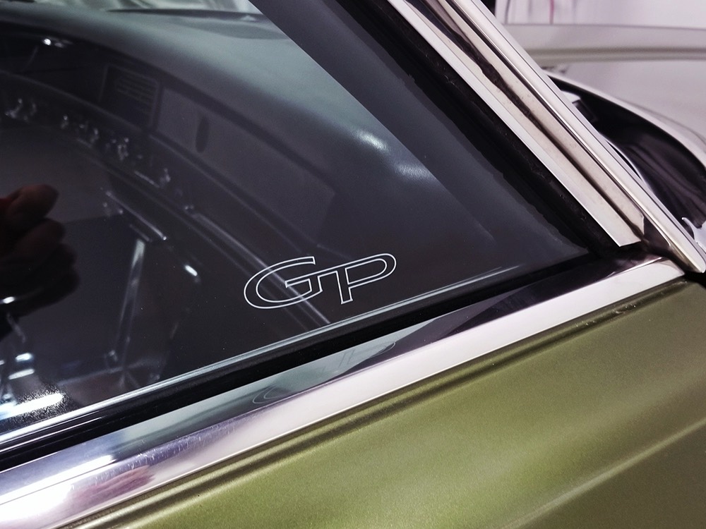 Seriously, just look at this thing. It's gorgeous. The paint is code Q Vedoro Green, which was the most popular color in 1968 and it's quite handsome on the big coupe. That's factory Magic Mirror lacquer and aside from one or two little chips that have been brush touched, it's in exemplary condition. Dig how straight it is and that shine is for real. Don't let anyone tell you that old paint wasn't as shiny as the stuff we have today. The black vinyl top is like new with no bubbles or other issues, and all the chrome sparkles. Hell, the front windows even still have 'GP' etched on them, a 1968-only detail! The windshield was replaced in 1997 due to a rock chip, but the rest of the glass and seals are original and in excellent condition. The doors don’t rattle when you slam them, the hood latches without a heavy slam, and all the brightwork shines up as well as it did in 1968. Demerits are limited to a few scratches on one piece of trim at the base of the windshield and a replacement nose emblem which came from a different model and had the mounting tabs relocated to fit the Grand Prix. And yes, the headlights work!