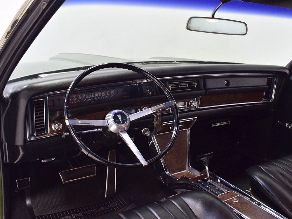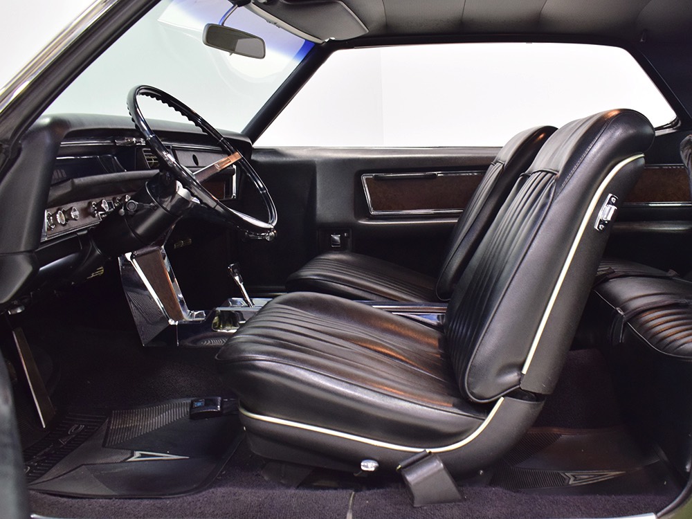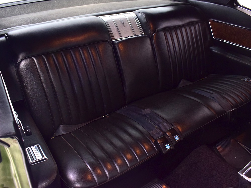 The engine is the original, numbers-matching 400 cubic inch V8, same one found in the GTO, and it makes 350 effortless horsepower. In the big coupe, it's plenty potent—this car is too fast to be a luxury cruiser but too comfortable to be a muscle car. The engine bay is beautifully detailed and largely original save for maintenance items. The block is wearing factory Pontiac Turquoise enamel, although it has been touched up on the heads and intake where the exhaust heat had burned off the original stuff over the past 53,125 miles. But the air cleaner, inner fenders, all the decals, and hardware were all placed there in 1968 and never touched again. The chrome valve covers were added by the same original owner who installed the wheels, and they look right for a piece of Pontiac muscle. It starts easily and idles so smoothly you are tempted to hit the starter again. Recent service work includes a rebuild on the original 7028262 4-barrel carburetor, a re-cored radiator, rebuilt water pump and fan clutch, plugs, points, condenser, cap, rotor, and plug wires (the original date-coded wires are included with the car), rebuilt alternator, rebuilt master cylinder, new hoses and belts, and a fresh Delco battery with the original spring-clip battery cables still intact. It runs superbly, pulling the big coupe around with real authority, yet never seeming to work very hard and just making a whisper while it does it. A few details like proper tower hose clamps would make it ready for show, but we’ve seldom seen a 50-year-old machine that looks this good in person.