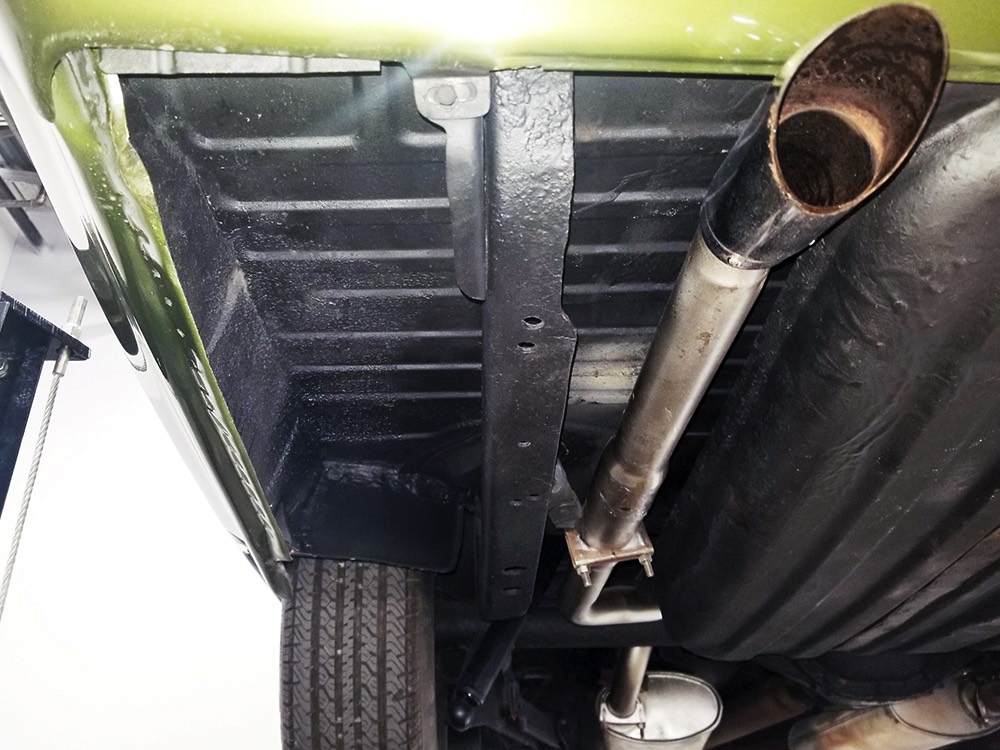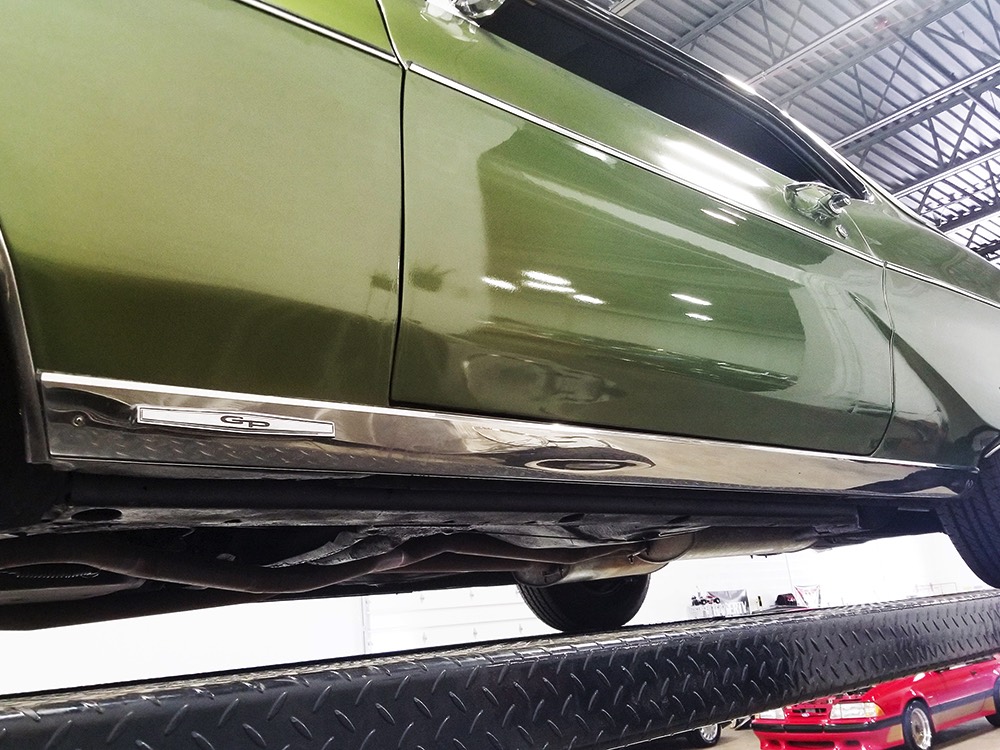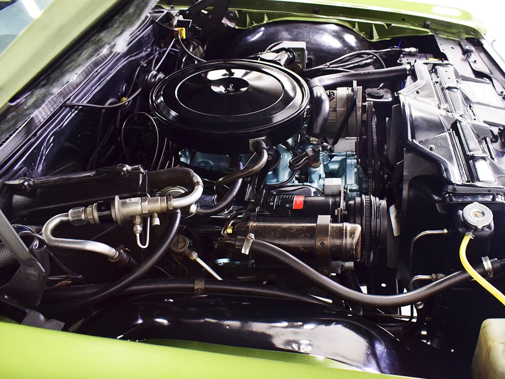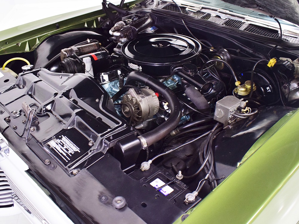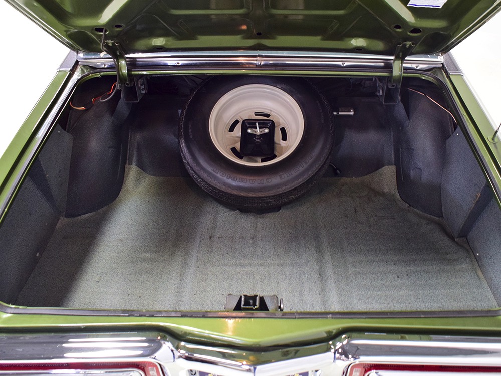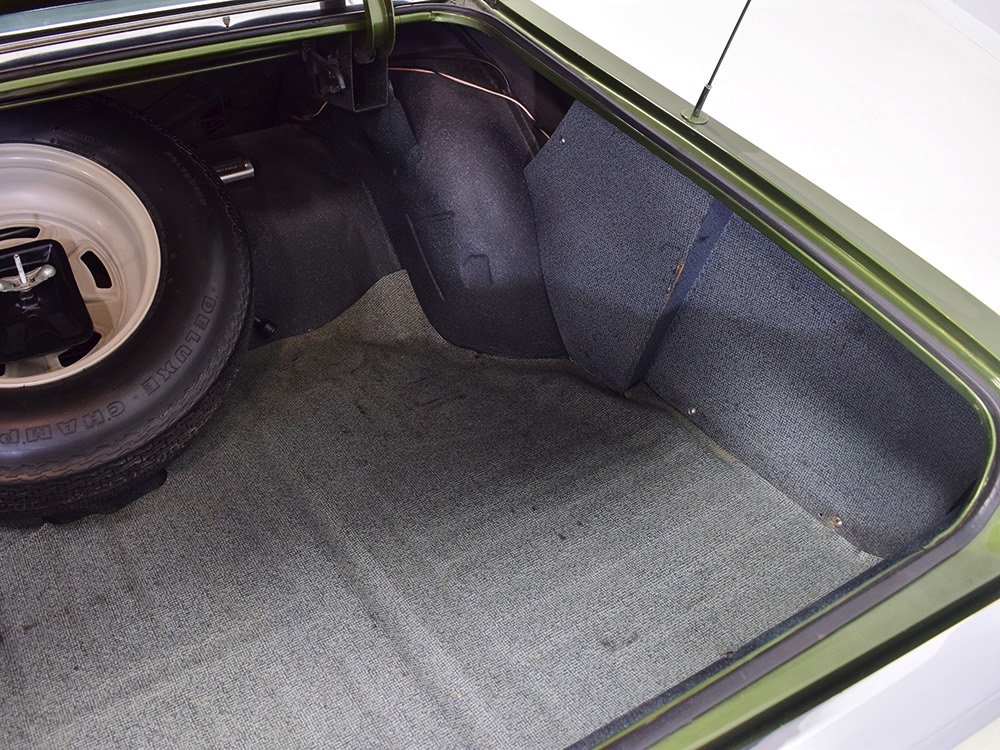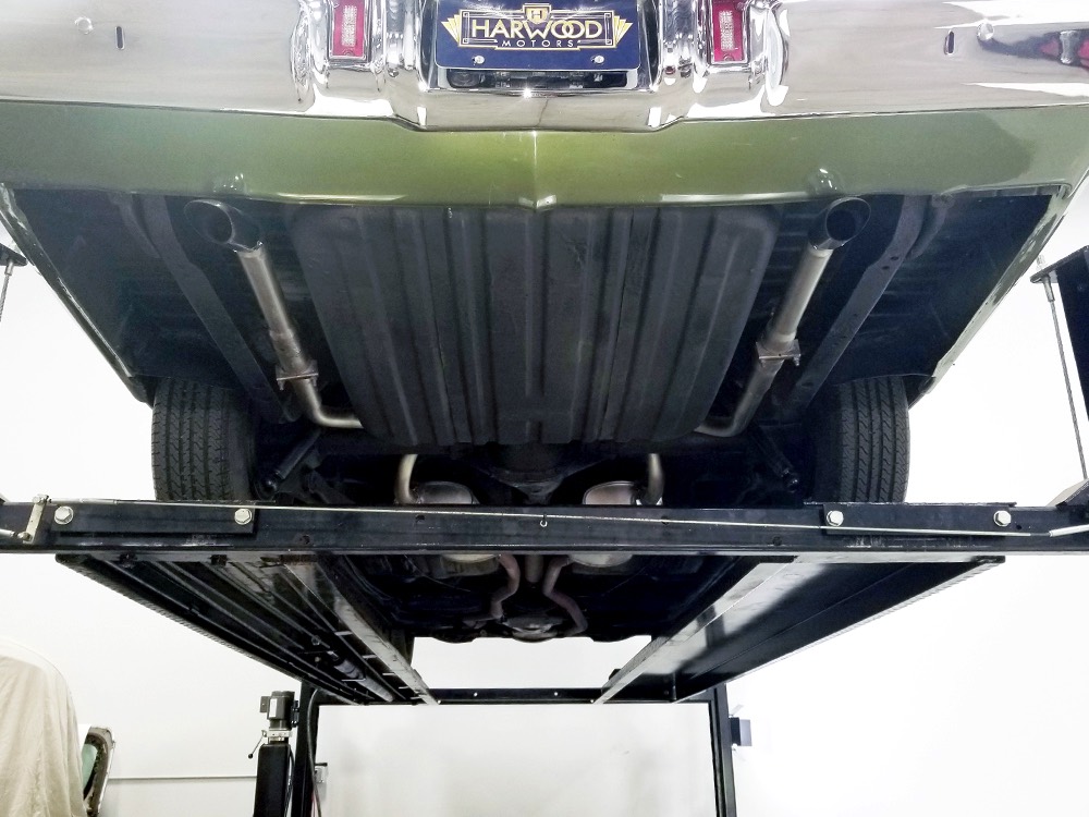 The TH400 3-speed automatic transmission shifts buttery-smooth but serves up a quick downshift with just a quick prod of the throttle. The suspension rides like only an original car can and power steering and brakes are obviously standard equipment. There are four new Sensa-Trac shocks at the corners and the entire braking system was rebuilt with new flex lines, wheel cylinders, and shoes. All the fluids were changed, including the transmission and rear end, and there’s zinc additive in the oil so you don’t need to worry about that. At some point the exhaust must have been replaced because it looks almost new, but maybe not, and it certainly sounds just right for a muscular luxury coupe. Out back, the original gas tank was cleaned and sealed so you won’t have any issues there. There's a light dusting of factory undercoating on the floors, but you can see this car has never seen snow or salt and there are obviously no buggered-up repairs hiding under the surface. There are towering 2.73 gears in the rear end, so it’s a fantastic high-speed cruiser that just loafs along at highway speeds in superlative comfort and quiet. The 225/75/15 Uniroyal Radials are relatively recent and are probably only the third set of tires this car has ever worn.