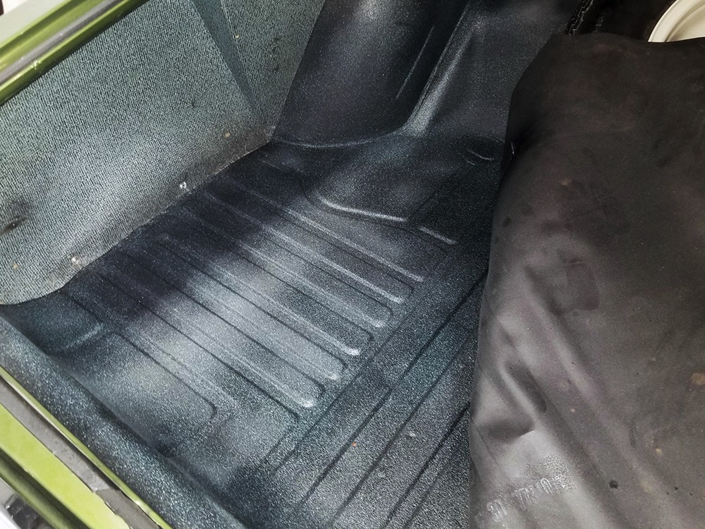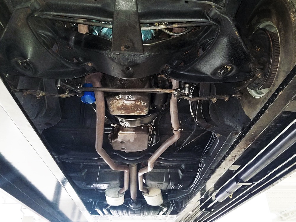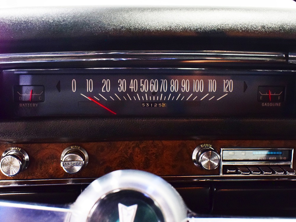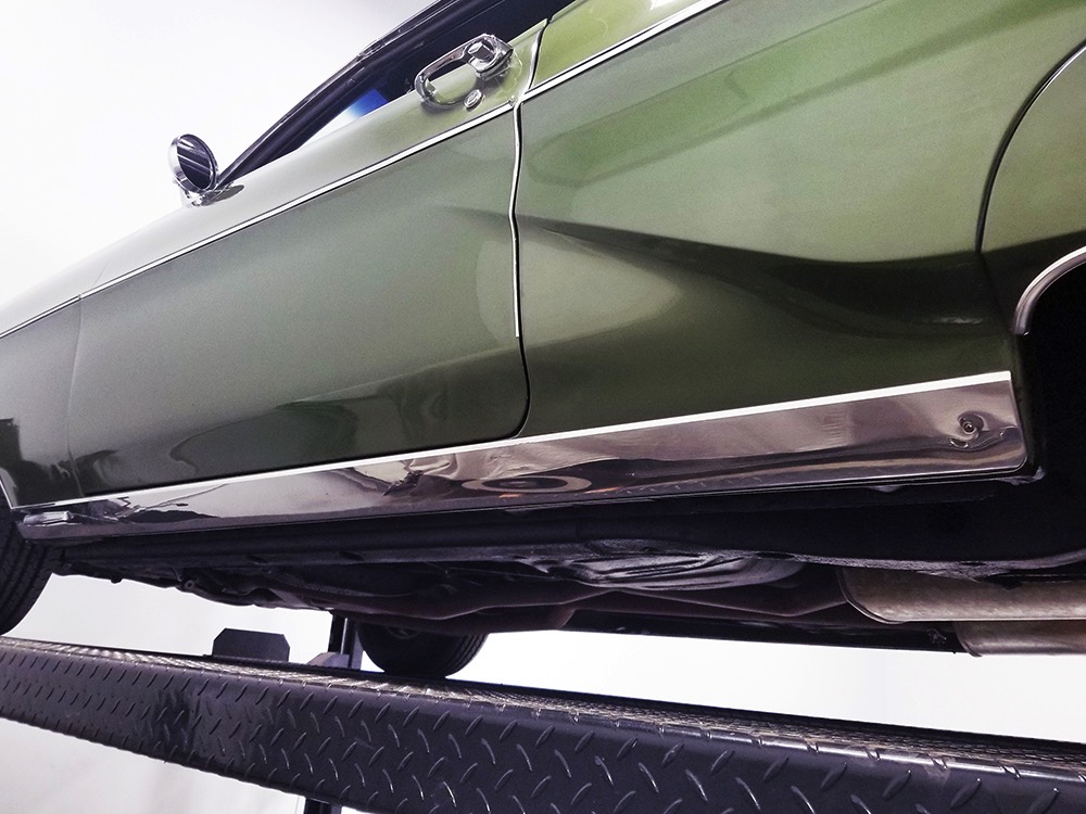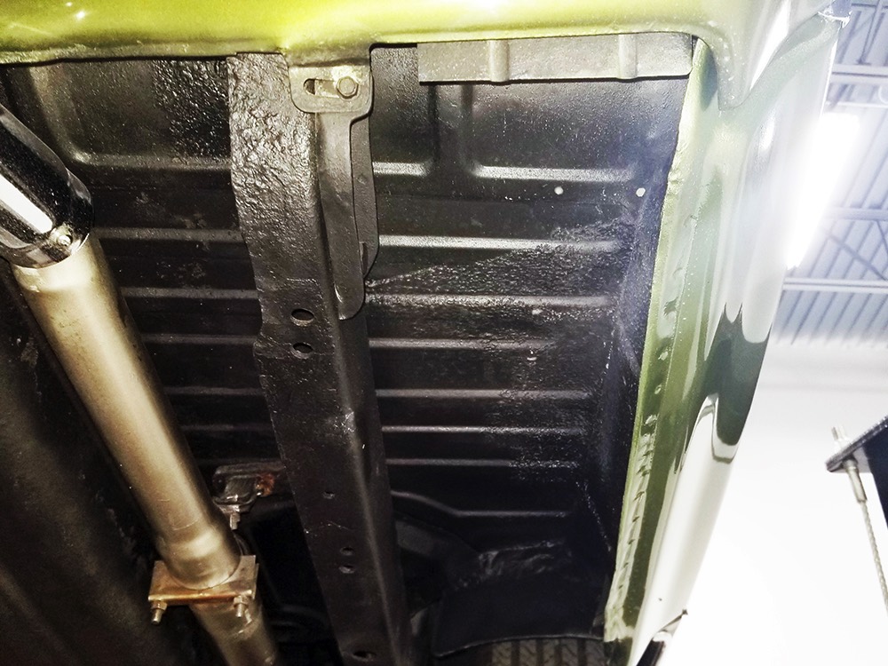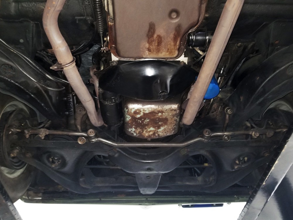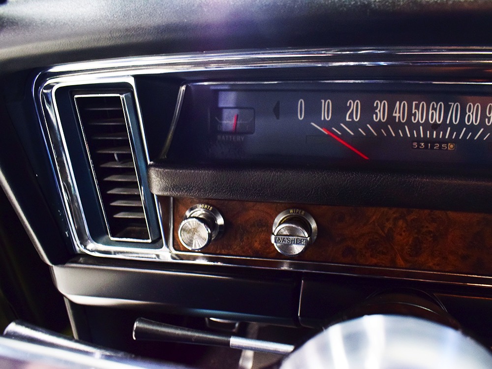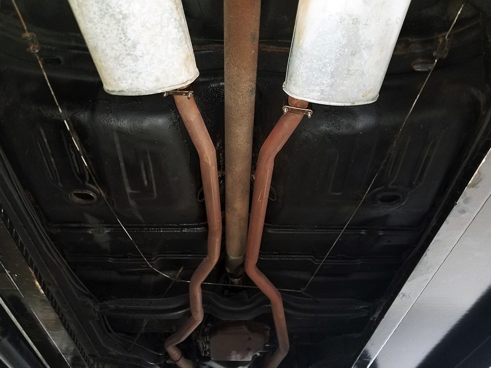 The TH400 3-speed automatic transmission shifts buttery-smooth but serves up a quick downshift with just a quick prod of the throttle. The suspension rides like only an original car can and power steering and brakes are obviously standard equipment. There are four new Sensa-Trac shocks at the corners and the entire braking system was rebuilt with new flex lines, wheel cylinders, and shoes. All the fluids were changed, including the transmission and rear end, and there’s zinc additive in the oil so you don’t need to worry about that. At some point the exhaust must have been replaced because it looks almost new, but maybe not, and it certainly sounds just right for a muscular luxury coupe. Out back, the original gas tank was cleaned and sealed so you won’t have any issues there. There's a light dusting of factory undercoating on the floors, but you can see this car has never seen snow or salt and there are obviously no buggered-up repairs hiding under the surface. There are towering 2.73 gears in the rear end, so it’s a fantastic high-speed cruiser that just loafs along at highway speeds in superlative comfort and quiet. The 225/75/15 Uniroyal Radials are relatively recent and are probably only the third set of tires this car has ever worn.