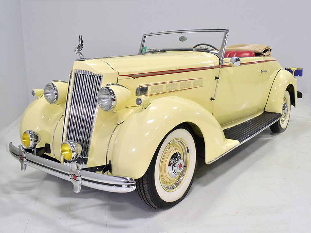 This lovely Packard combines the most desirable body style (the rumble seat would disappear after 1937) with what are arguably the best road manners of any '30s car you can own. With spectacular colors, excellent care and maintenance, a few clever upgrades, and no issues, it is ready to tour. Take this 120 home and we're quite certain you will love the way it drives. Call today!