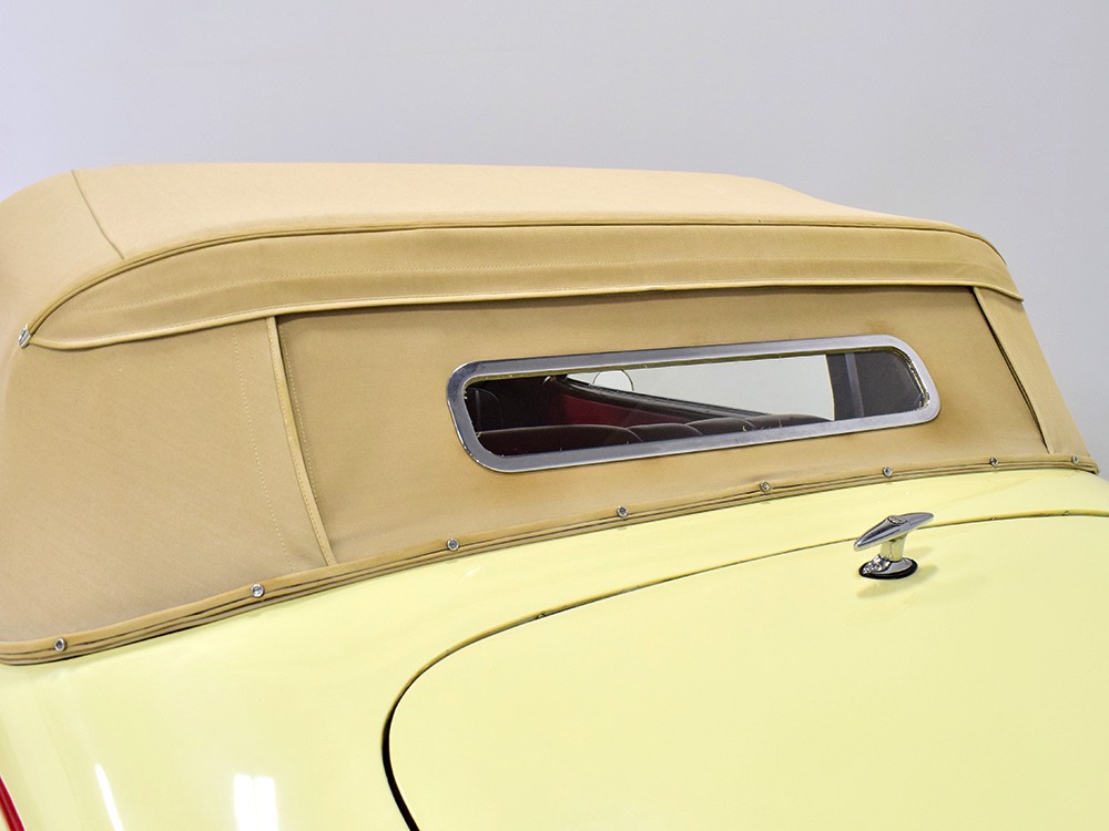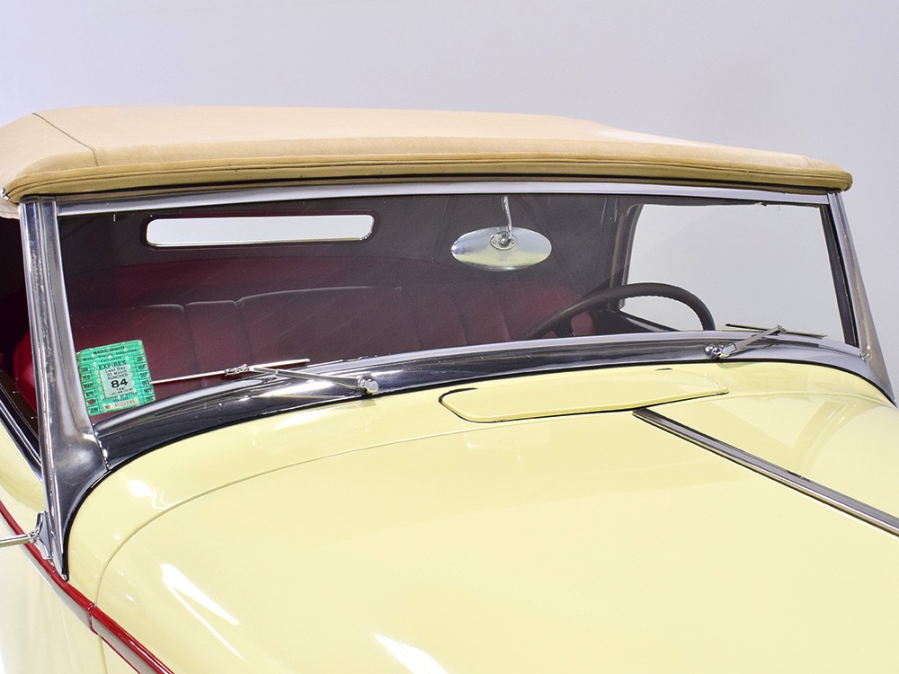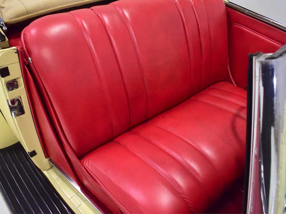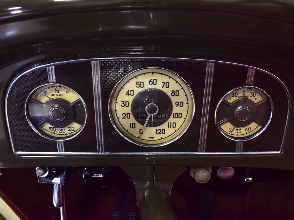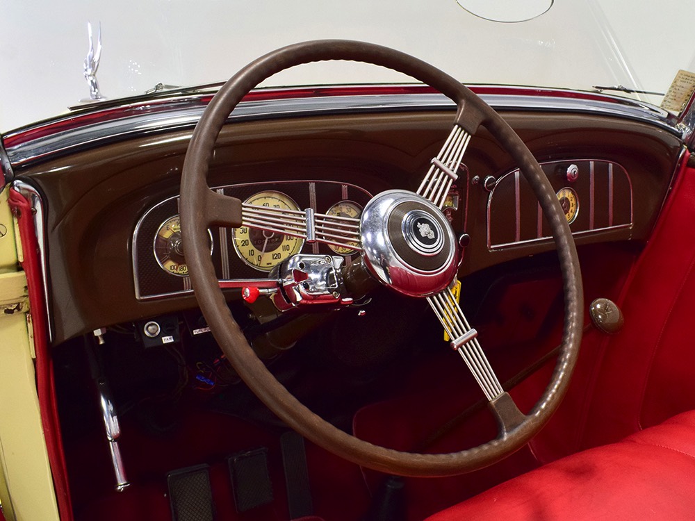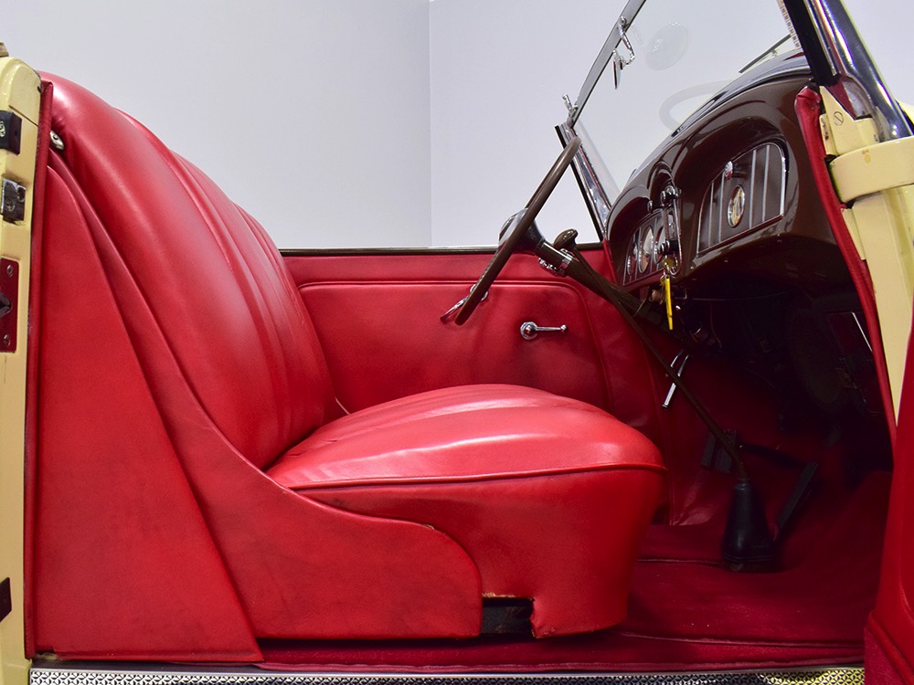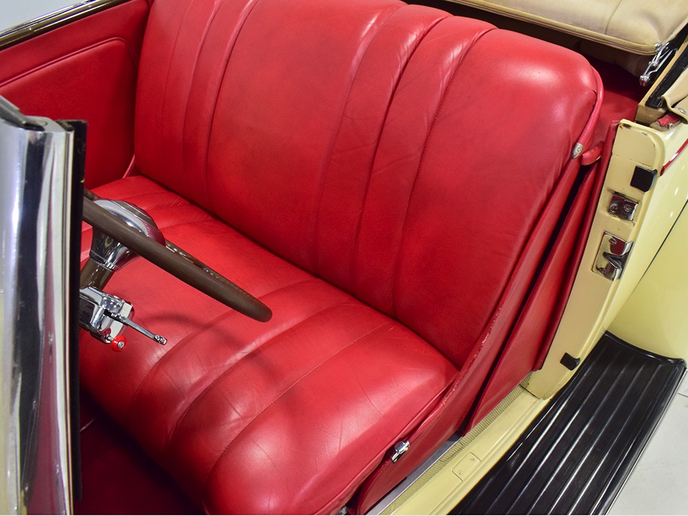 Most of the chrome was restored with the rest of the car and shows extremely well, including the bumpers and tall vertical grille slats. The windshield does not fold but is raked back at a dramatic angle and this is the rare convertible that looks equally good, top up or top down. Fog lights are mounted up front, and they closely match the shape of the headlights so they appear to belong there, while out back you'll find three steps leading to the rumble seat instead of the usual two, making it a bit more graceful for adults to climb inside. The rubber running boards were restored using correct patterns and they, too, are still in great shape.