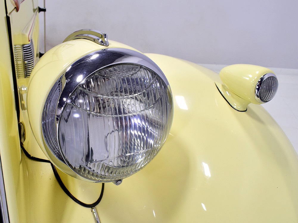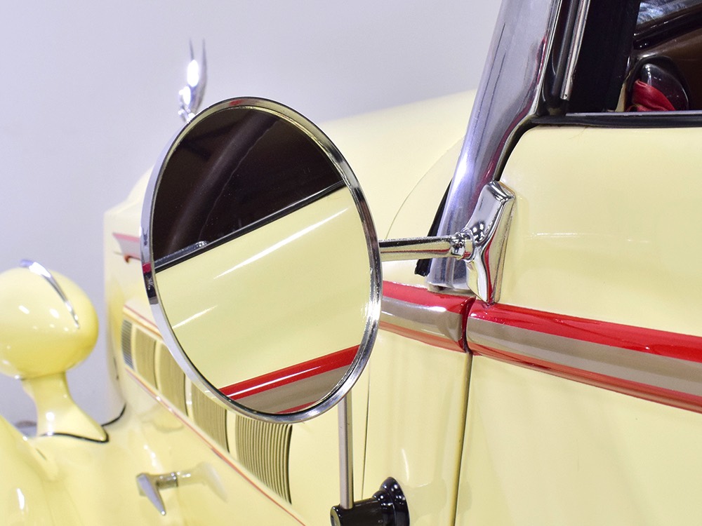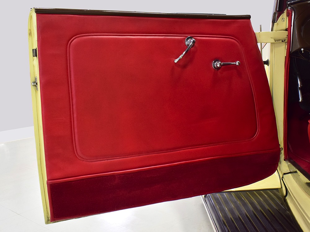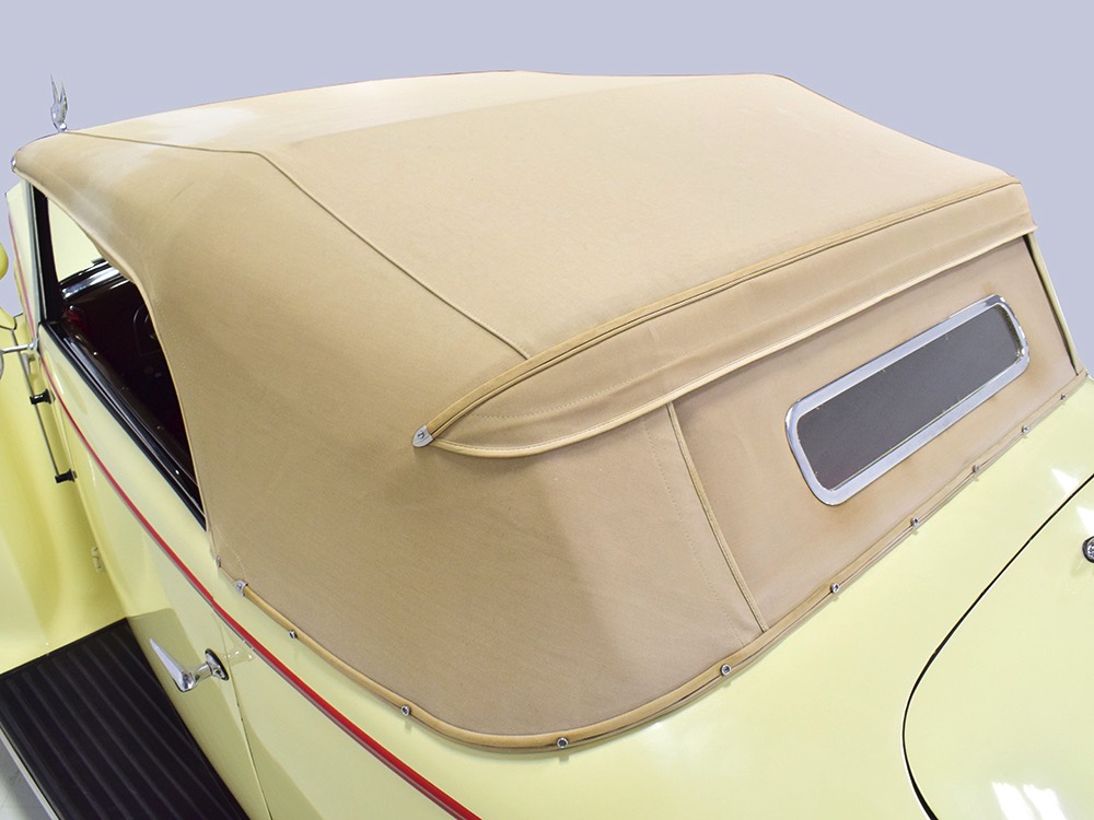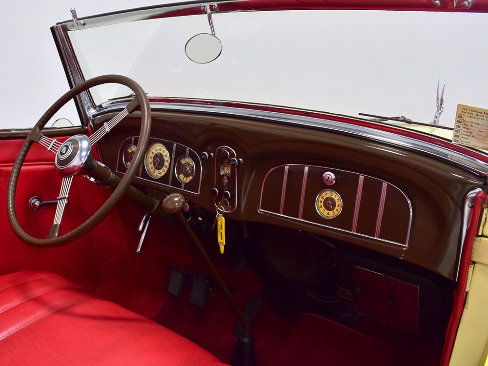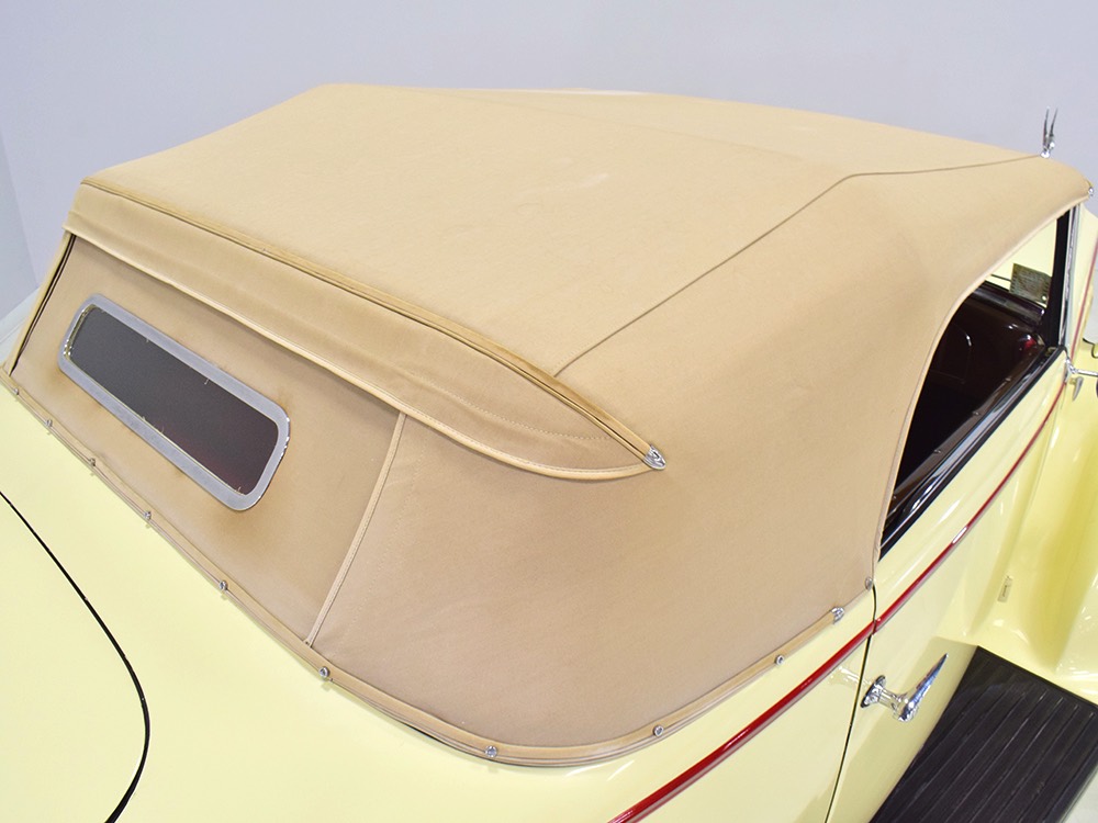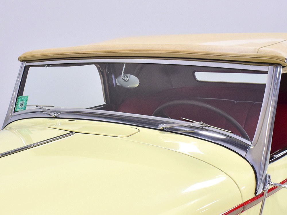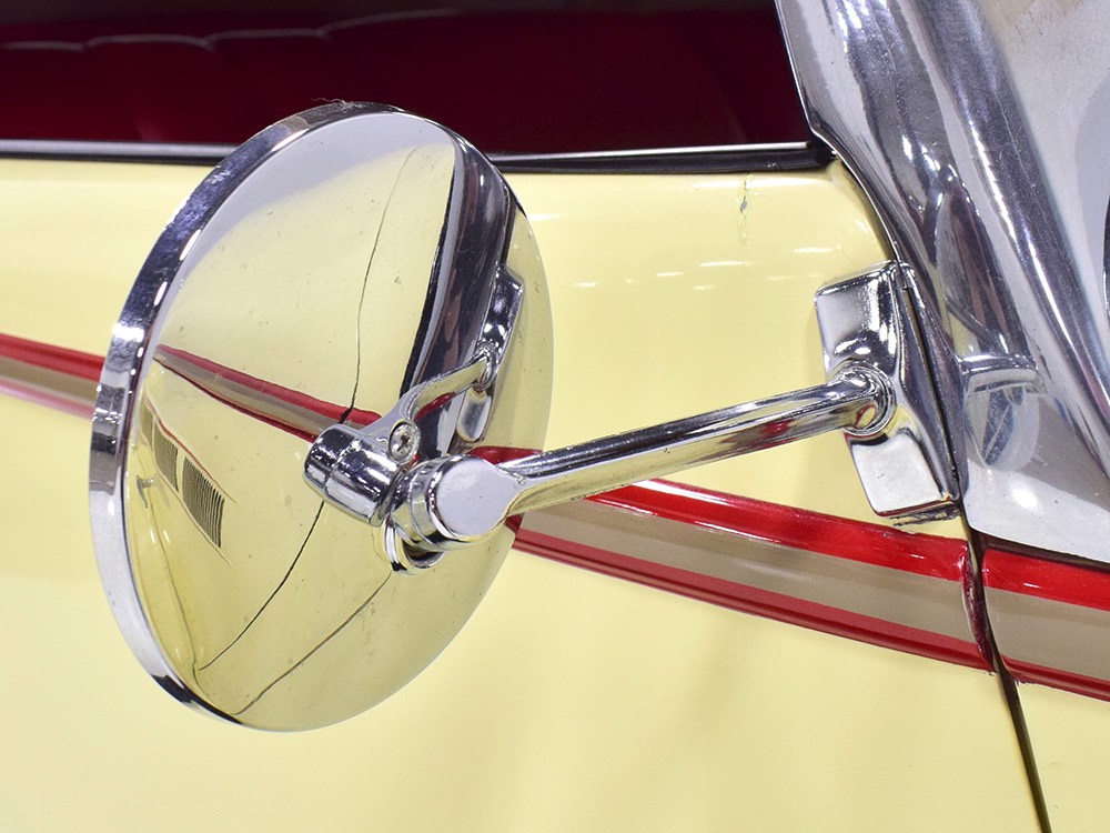 Most of the chrome was restored with the rest of the car and shows extremely well, including the bumpers and tall vertical grille slats. The windshield does not fold but is raked back at a dramatic angle and this is the rare convertible that looks equally good, top up or top down. Fog lights are mounted up front, and they closely match the shape of the headlights so they appear to belong there, while out back you'll find three steps leading to the rumble seat instead of the usual two, making it a bit more graceful for adults to climb inside. The rubber running boards were restored using correct patterns and they, too, are still in great shape.