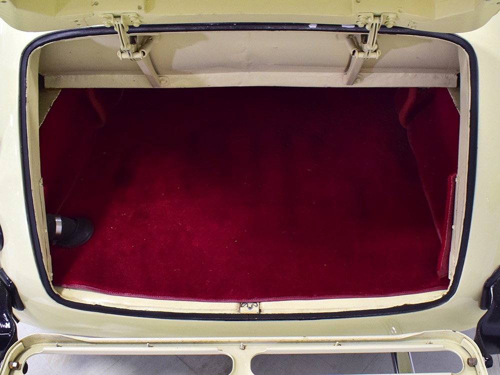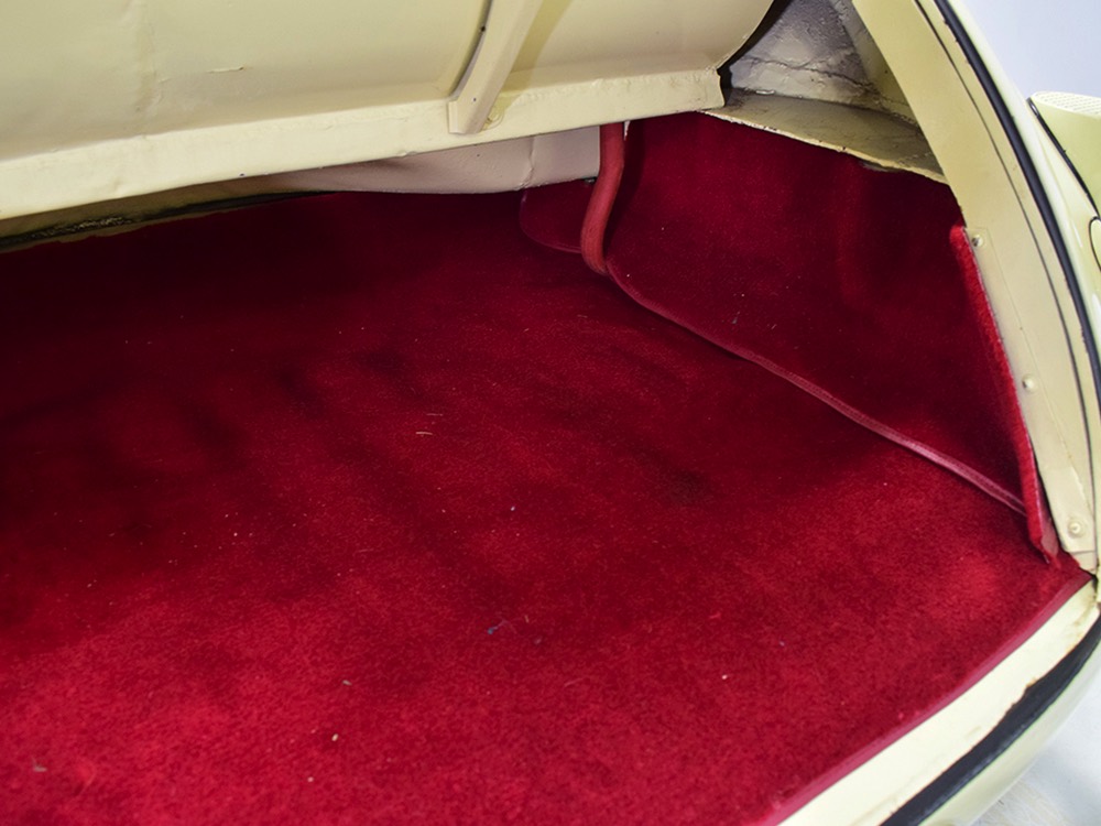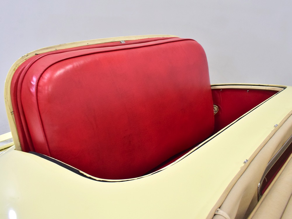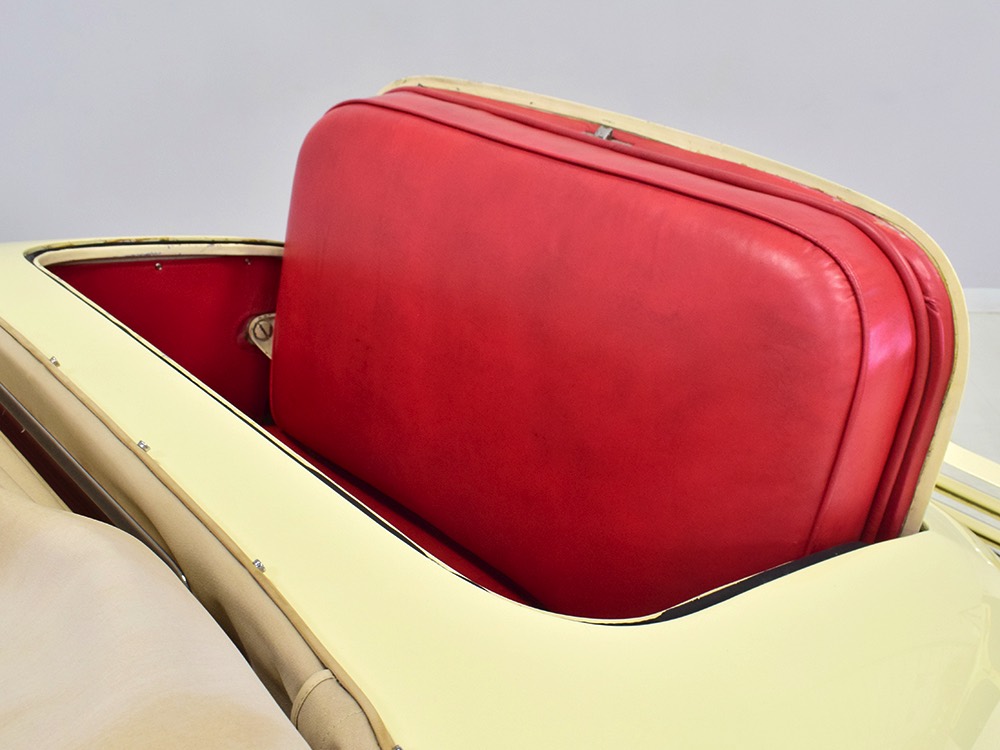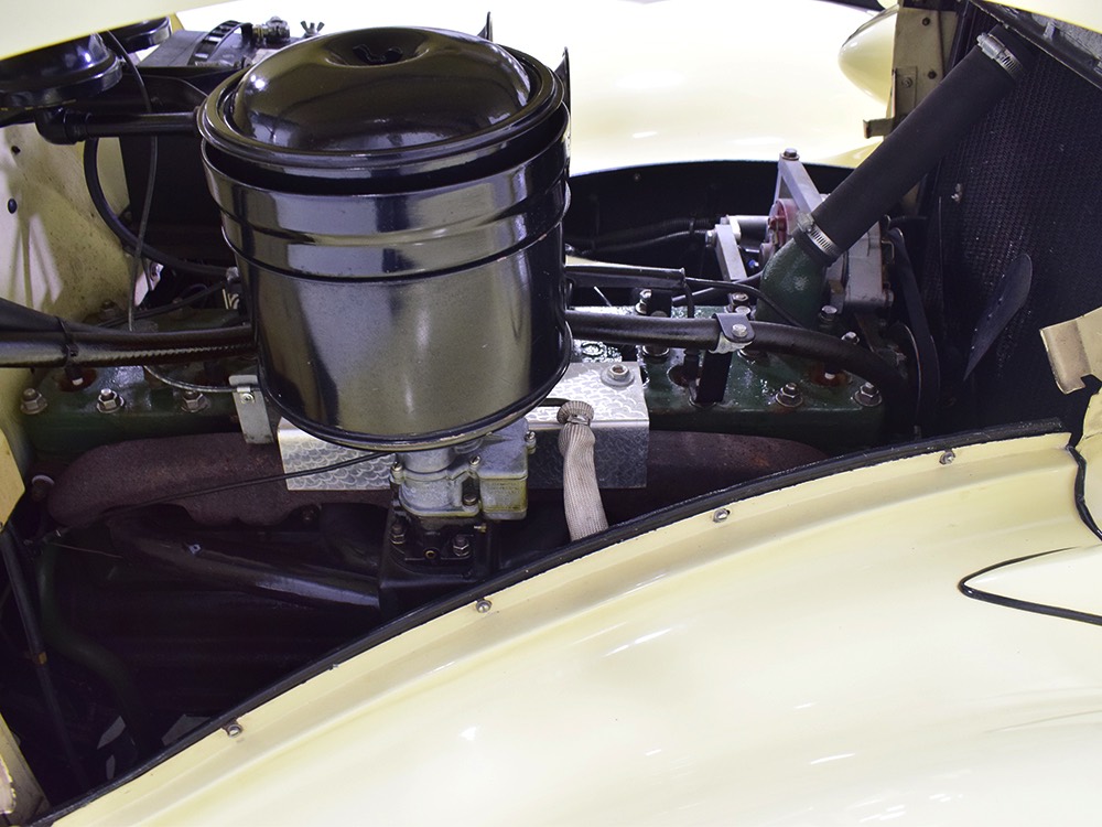 Two years ago, the interior was restored using beautiful bright red leather and it shows extremely well. From the properly stitched and stuffed seats to the simple door panels and appropriately plush carpets, this car feels luxurious from within. The big banjo-style wheel makes this car surprisingly easy to handle (it was driven regularly by the owner's widow and daughter) and you'll quickly feel at home once you hit the road. The cream-colored gauges are all operational even with the car's unorthodox electrical system (more on this in a moment) and the optional AM radio does power up but does not make sound. There's also a fully operational heater under the dash as well as a hand choke for starting. Other controls designed to make this car an ideal traveling partner are the column-mounted turn signals (which are somehow self-cancelling—how'd they do that?) along with switches for an electric fuel pump and pusher fan on the front of the radiator. We believe the 10,236 miles showing on the odometer are since the 1990s restoration was completed. There's a fair amount of adjustment built into the front seat to make it comfortable for drivers of just about any size and the rumble seat, once you're in there, is equally spacious. The tan convertible top folds easily once you know the tricks and in the down position, it sits so neatly that a boot probably isn't necessary. There's also a fully finished trunk ostensibly designed to hold a spare tire (which is included) but the brand new Diamondback Radials are slightly taller than the stock tires so the spare doesn't quite fit.