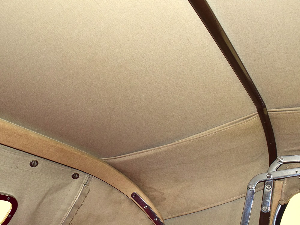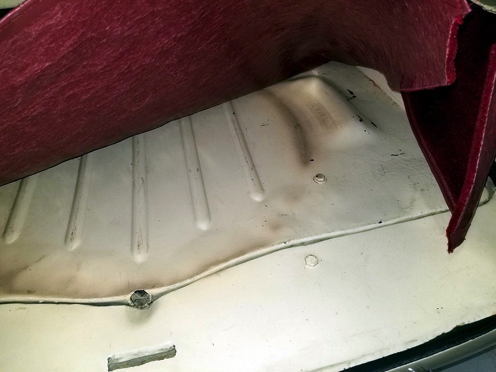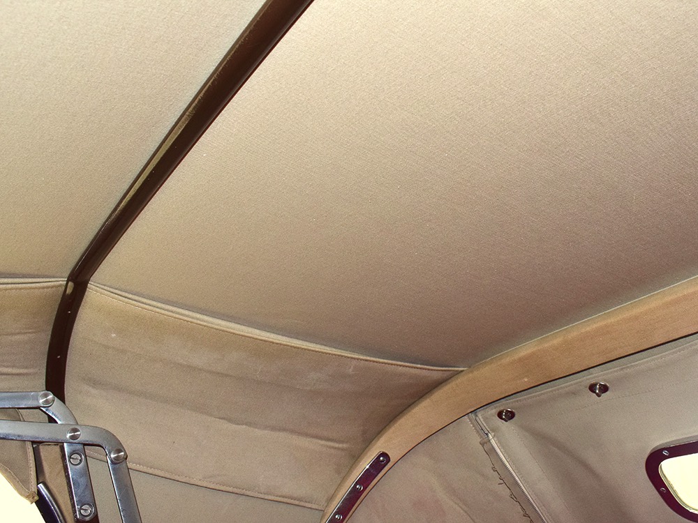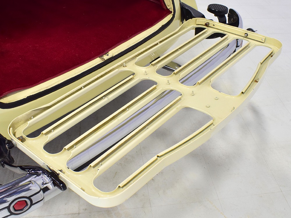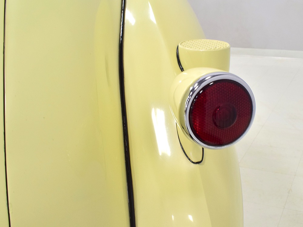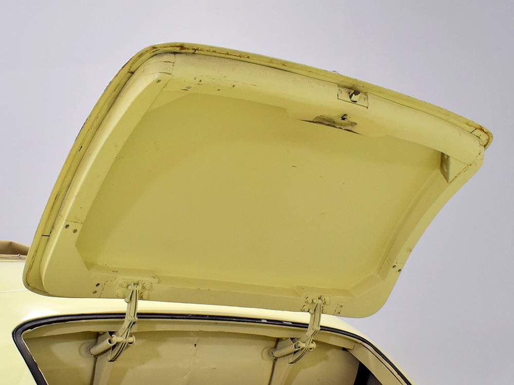Two years ago, the interior was restored using beautiful bright red leather and it shows extremely well. From the properly stitched and stuffed seats to the simple door panels and appropriately plush carpets, this car feels luxurious from within. The big banjo-style wheel makes this car surprisingly easy to handle (it was driven regularly by the owner's widow and daughter) and you'll quickly feel at home once you hit the road. The cream-colored gauges are all operational even with the car's unorthodox electrical system (more on this in a moment) and the optional AM radio does power up but does not make sound. There's also a fully operational heater under the dash as well as a hand choke for starting. Other controls designed to make this car an ideal traveling partner are the column-mounted turn signals (which are somehow self-cancelling—how'd they do that?) along with switches for an electric fuel pump and pusher fan on the front of the radiator. We believe the 10,236 miles showing on the odometer are since the 1990s restoration was completed. There's a fair amount of adjustment built into the front seat to make it comfortable for drivers of just about any size and the rumble seat, once you're in there, is equally spacious. The tan convertible top folds easily once you know the tricks and in the down position, it sits so neatly that a boot probably isn't necessary. There's also a fully finished trunk ostensibly designed to hold a spare tire (which is included) but the brand new Diamondback Radials are slightly taller than the stock tires so the spare doesn't quite fit.