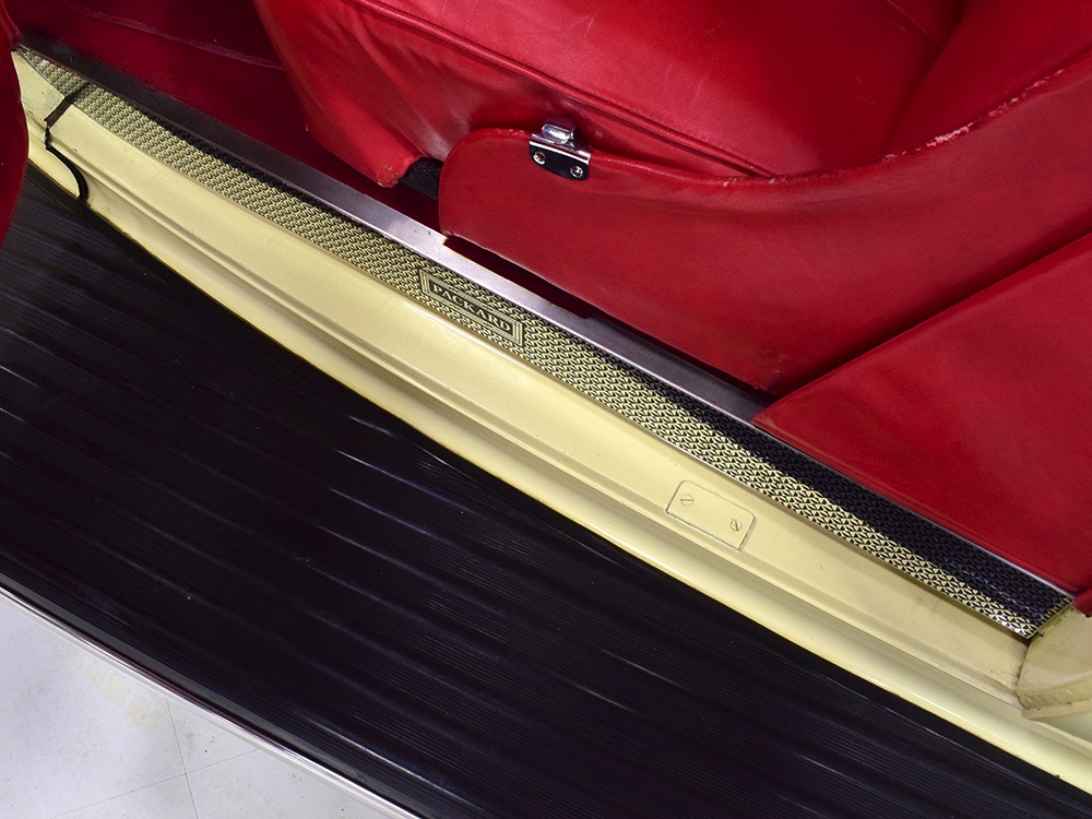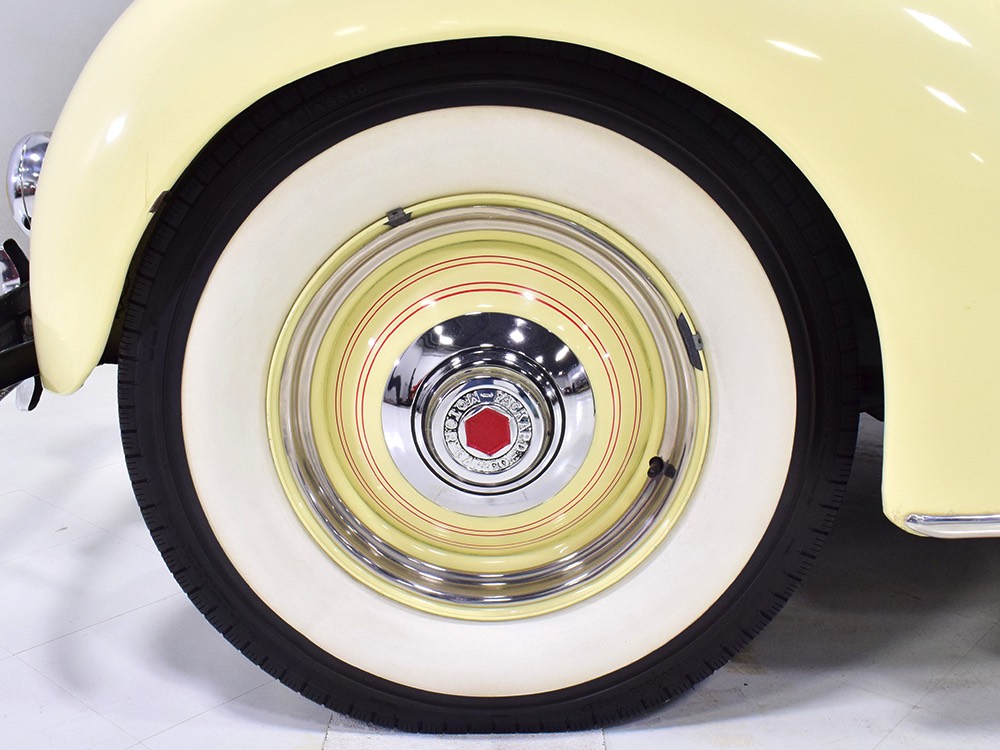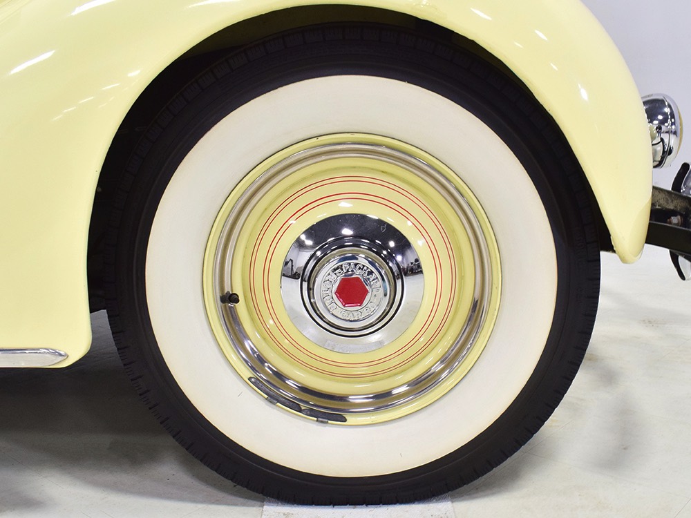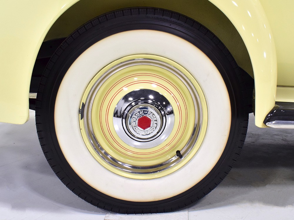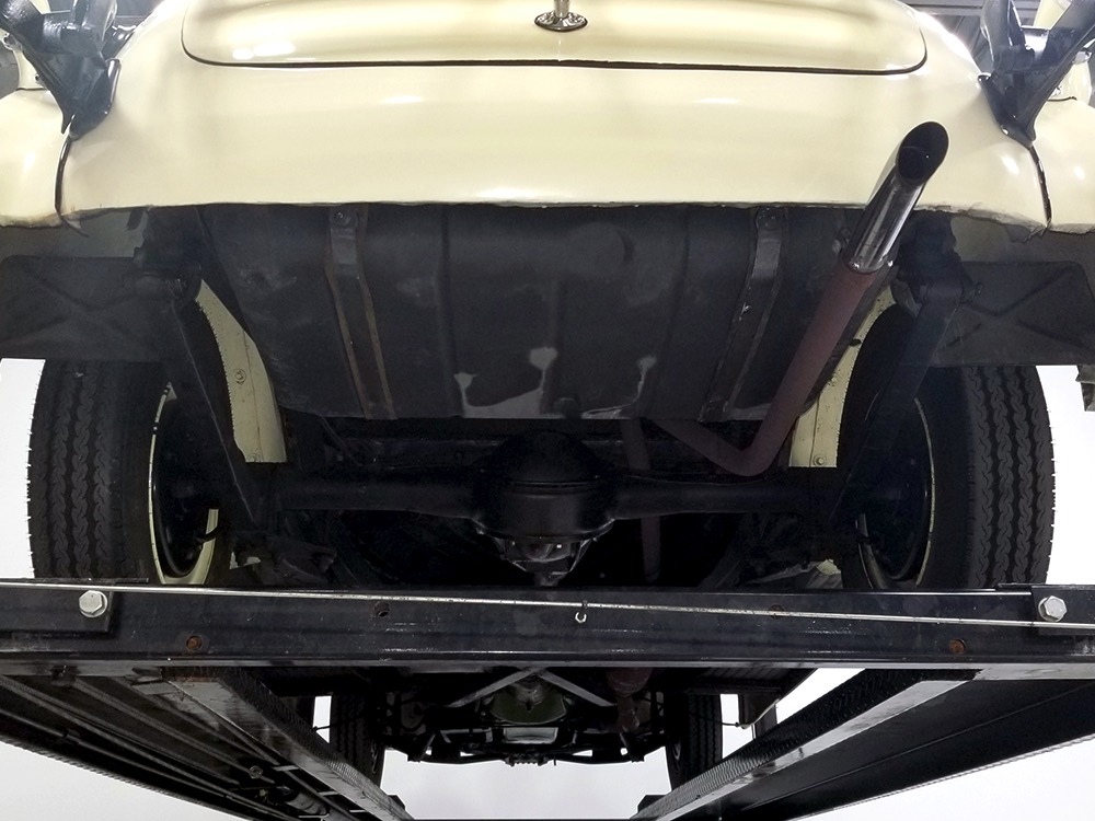The Saf-T-Flex independent front suspension delivers the softy Packard ride that you would expect and the 3-speed manual transmission shifts easily with synchromesh on 2nd and 3rd. The chassis was nicely detailed at the time of restoration but shows the effects of 10,000 tour miles—some grunge but no rust, damage, or issues that need to be addressed. Of note, the engine splash pans are still in place (the often get tossed by lazy mechanics who don't understand their purpose), the springs are still wrapped in factory gaiters, and the familiar Packard hypoid rear axle is canted to allow a lower body line. There are 4.09 gears inside, which give this Packard comfortable cruising speeds with today's traffic. The brakes are firm and plenty adequate for the car's performance and it sits on brand new 700R16 Diamondback wide whitewall radials that completely transform the ride and handling. This is a car that begs you to get out and drive!