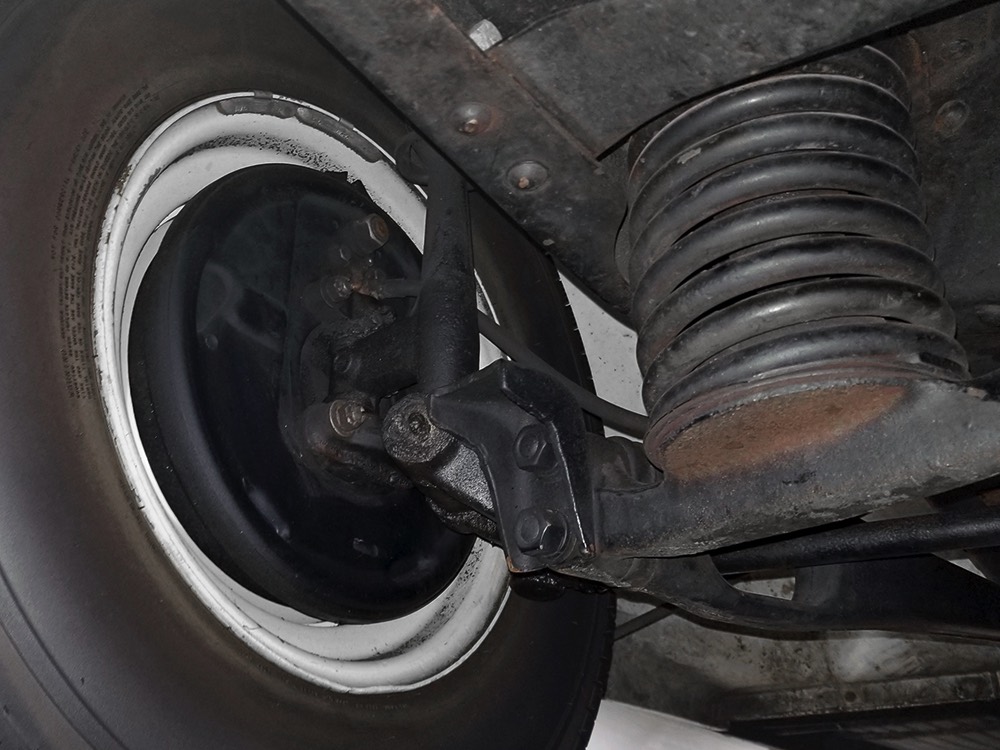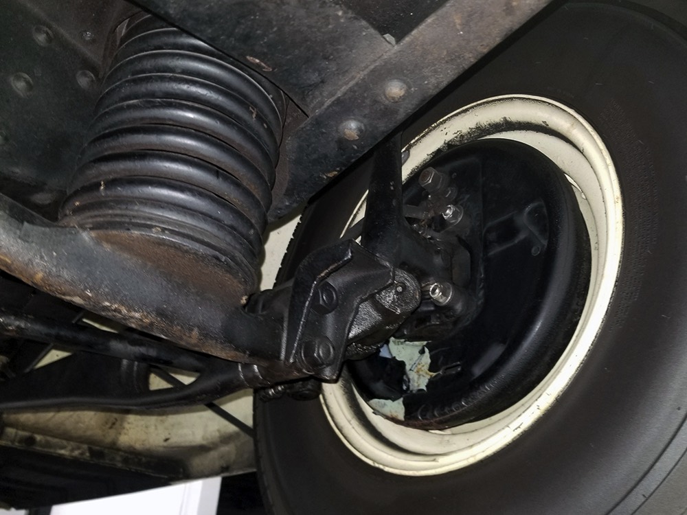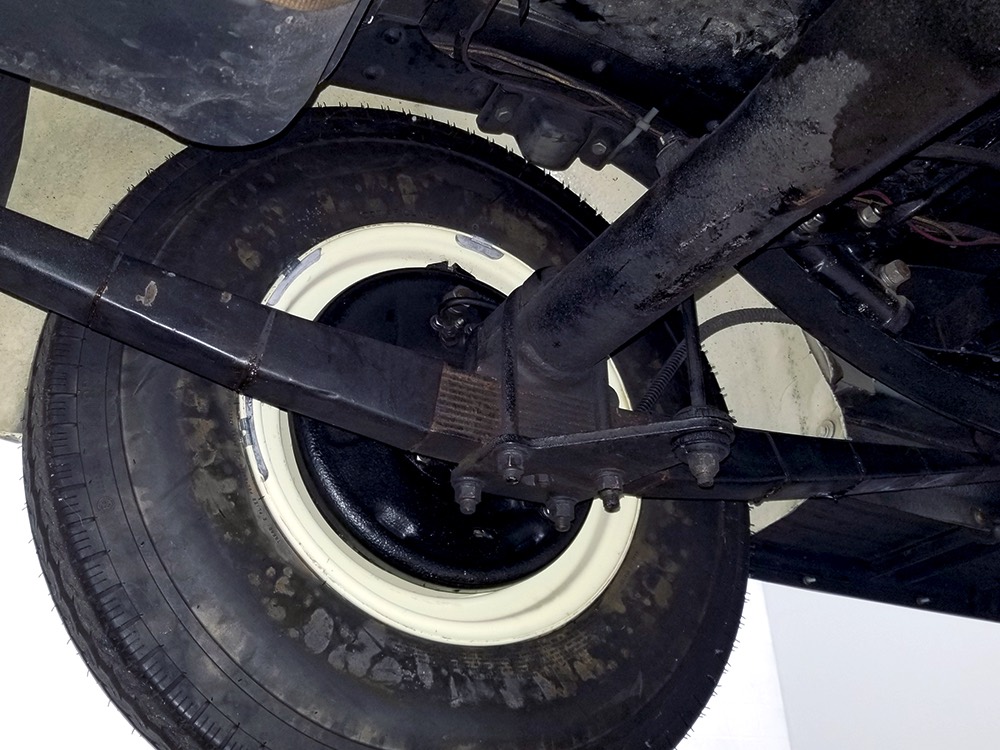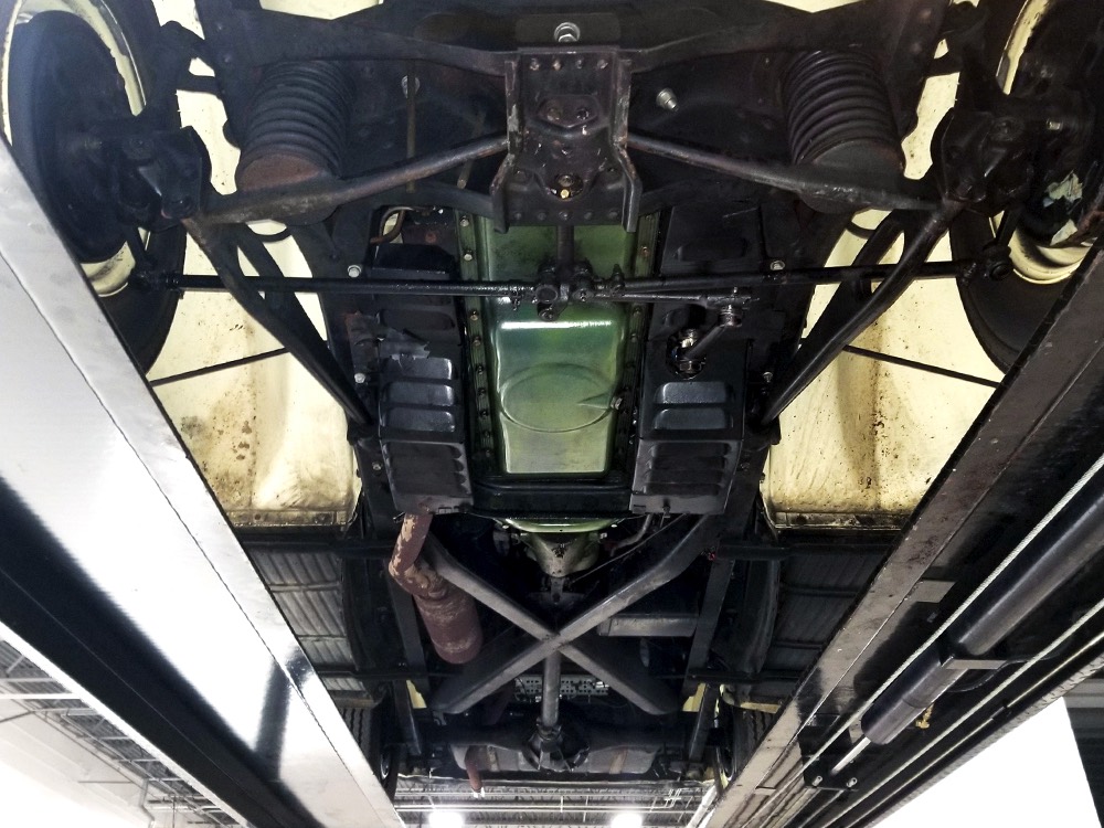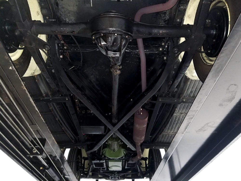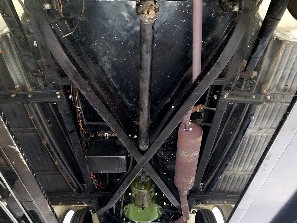 The Saf-T-Flex independent front suspension delivers the softy Packard ride that you would expect and the 3-speed manual transmission shifts easily with synchromesh on 2nd and 3rd. The chassis was nicely detailed at the time of restoration but shows the effects of 10,000 tour miles—some grunge but no rust, damage, or issues that need to be addressed. Of note, the engine splash pans are still in place (the often get tossed by lazy mechanics who don't understand their purpose), the springs are still wrapped in factory gaiters, and the familiar Packard hypoid rear axle is canted to allow a lower body line. There are 4.09 gears inside, which give this Packard comfortable cruising speeds with today's traffic. The brakes are firm and plenty adequate for the car's performance and it sits on brand new 700R16 Diamondback wide whitewall radials that completely transform the ride and handling. This is a car that begs you to get out and drive!