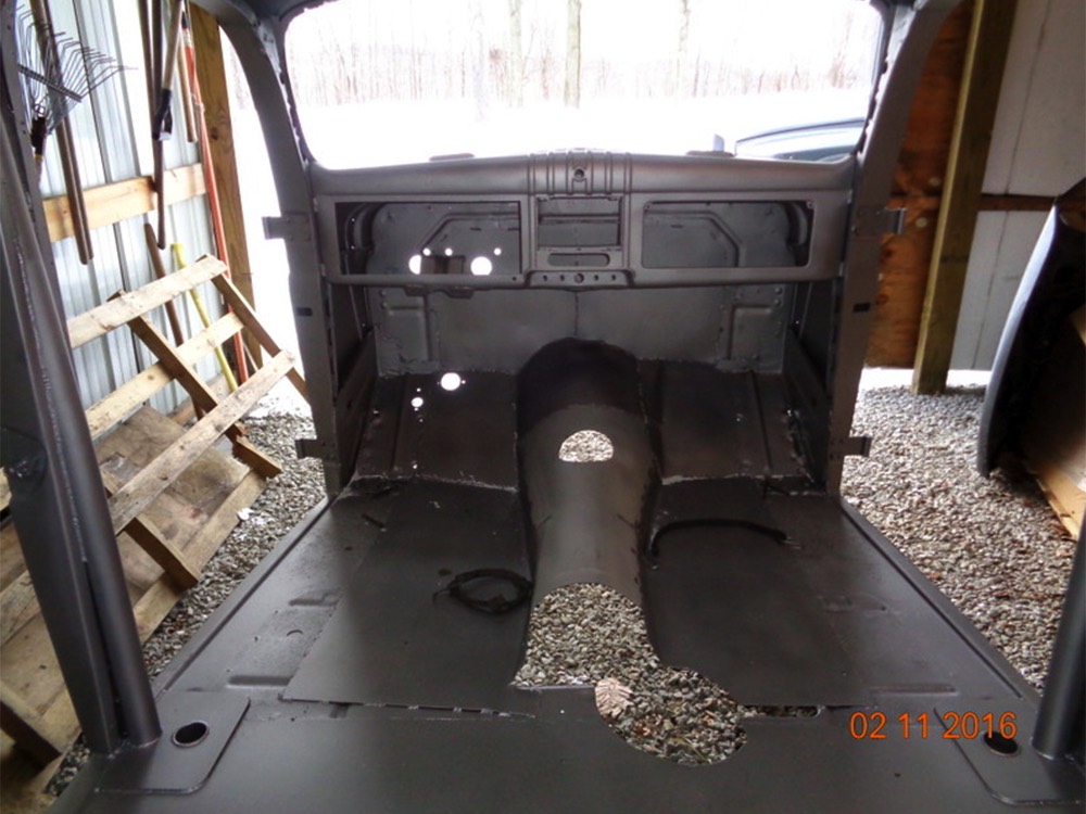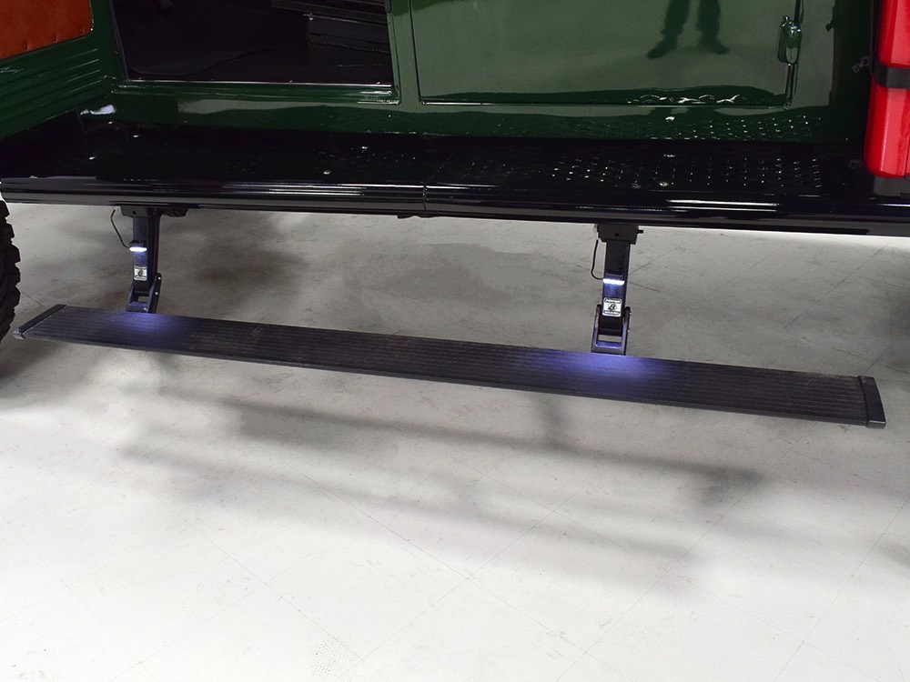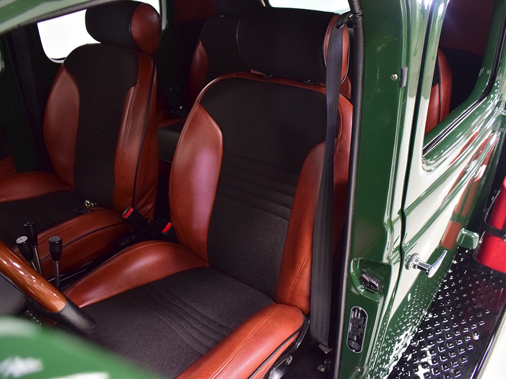 This particular WDX Quad Cab is a Gen III model finished in 2016 and shows about 5000 miles on the clock—enough that you know it’s sorted, but it’s still in virtually new condition throughout. Comparing it to the first quad cab they ever built, a truck we sold in 2014, this one is more polished in every way, with notable improvements in ride, handling, NVH, and comfort. Precision’s 4-door quad cab is built using two standard Power Wagon cabs and SIX doors so it has a correct look that looks exactly how the factory might have done it if they had ever built such a thing (they did not). The chassis was extended by 15 inches to give it a fully functional bed in back and to keep the butch Power Wagon proportions. Finish quality is exemplary, with doors that close easily, shiny paint with distortion-free reflections, and traditional colors: Submarine Seawolf Green with black fenders. It’s all steel, of course, and the several hundred build photos show it in bare metal so there are obviously no surprises underneath. The running boards were expertly lengthened (plus there are lighted automatic drop-down running boards underneath), the headlights are high-intensity units that light the road up like a lightning strike, and the heavy-duty brush guard up front is a big part of why the Power Wagon is the manliest vehicle on earth. In back, the bed was refinished and fitted with 4000-pound aircraft cargo tracks and a 12V power outlet, and it’s not so perfect that you’ll be afraid to treat it like a pickup truck.