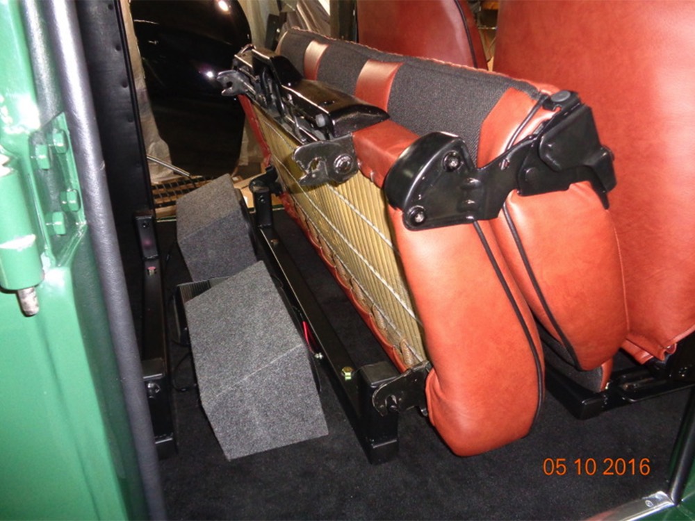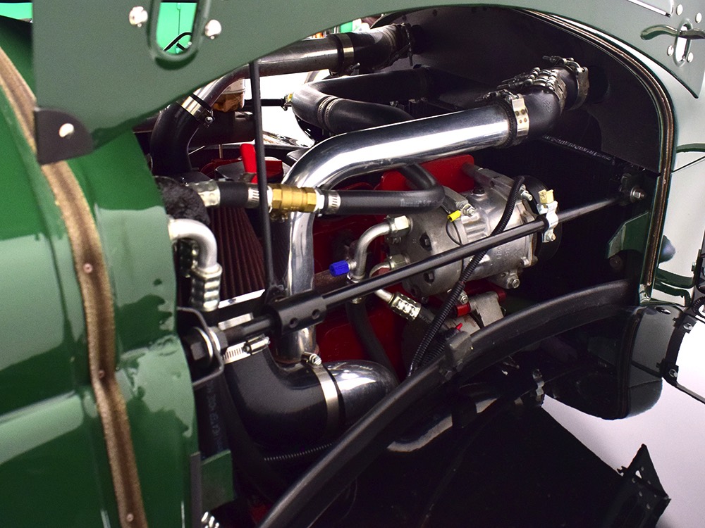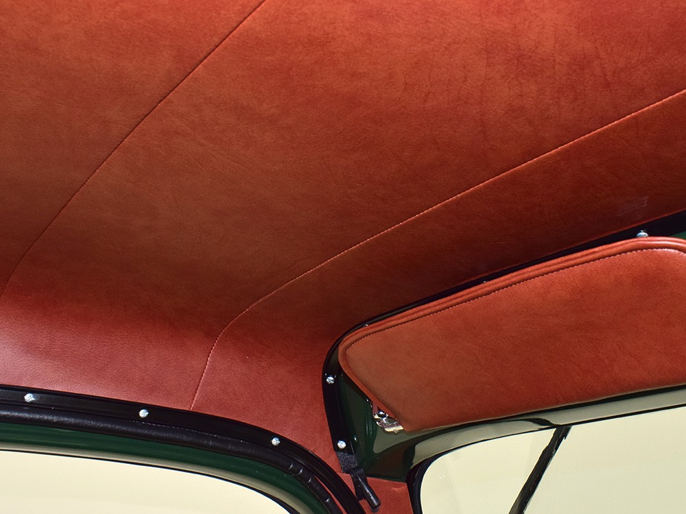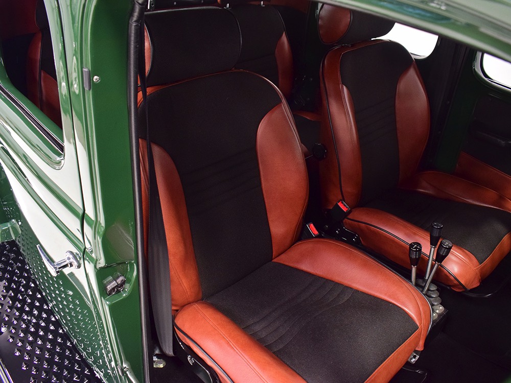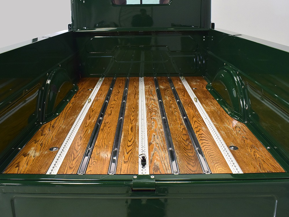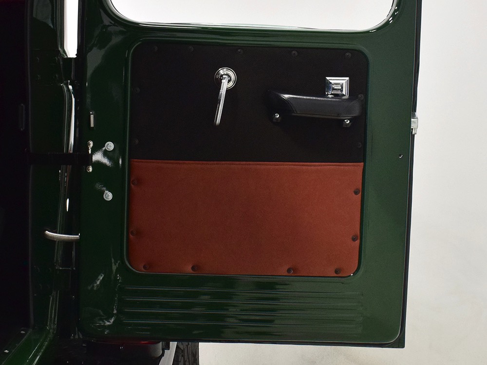 Open any of the four doors and the running boards drop down to make it easier for you to climb aboard. Inside, you’ll find a luxuriously appointed interior that doesn’t erase the Power Wagon’s identity but embraces. Yes, the seats are far more comfortable than the original vinyl bench and there’s considerably more space, but the driving position and feel are still very much like they should be. A steel dash, complete with crank-out windshield and overhead controls for the windshield wipers, all make you feel like it’s 1947. The tilt steering column holds a small wood and leather wheel that would be utterly impossible on a stock Power Wagon, and in the build photos, you can see that they went to great lengths to make the center horn button match the rest of the leather used inside. Precision Power Wagons installs their own set of bespoke GPS-referenced instruments, too, including turbo boost and exhaust gas temperature gauges in addition to the usual stuff. You’ll also note a killer AM/FM/CD/satellite stereo system with touch screen in the center of the dash, and it’s connected to a rear-view camera that automatically comes online when you put it in reverse. Controls for the powerful A/C system are underneath and there are three sticks in the center that control the split transfer case, so you can send power forward, rearward, or both depending on conditions. The seats are extremely comfortable, there are switches for the ARB locking differentials and on-board air compressor, and it offers push-button starting with a remote key fob that only needs to stay in your pocket to work correctly. Heck, even the headlights turn themselves on automatically! Accommodations are quite adequate for four passengers and there are seat belts at all four positions for safety.