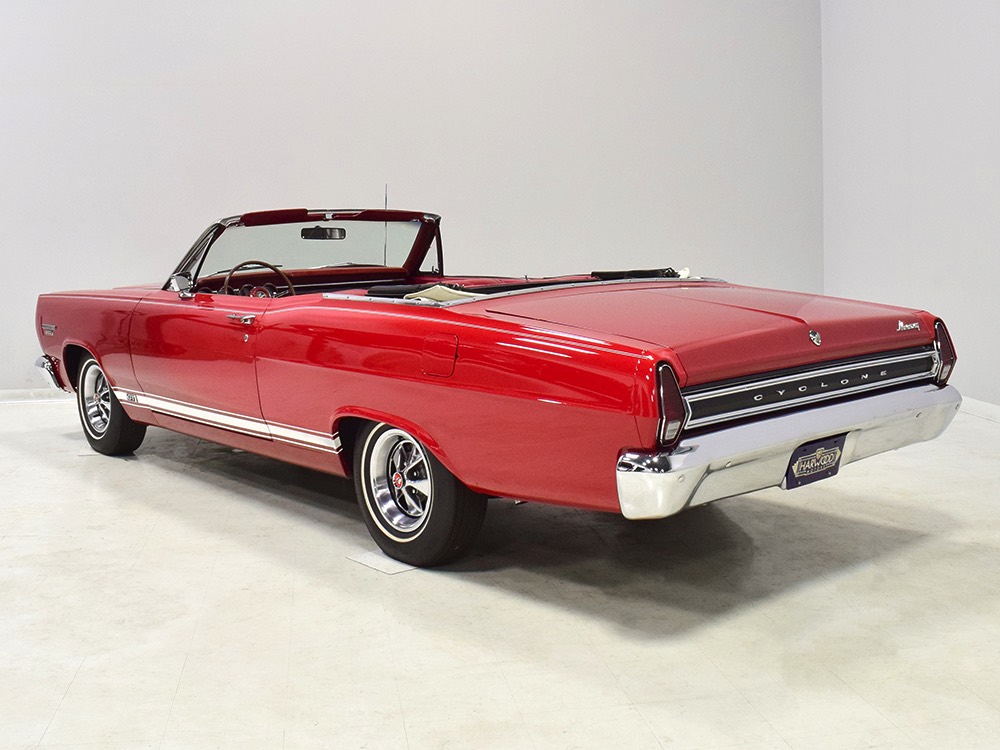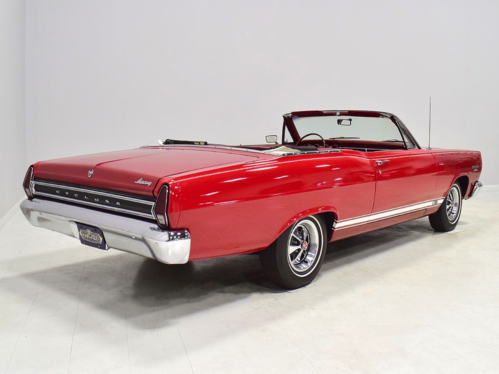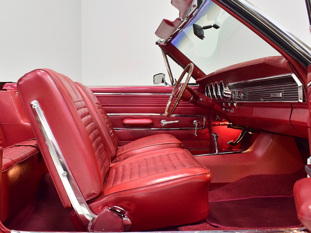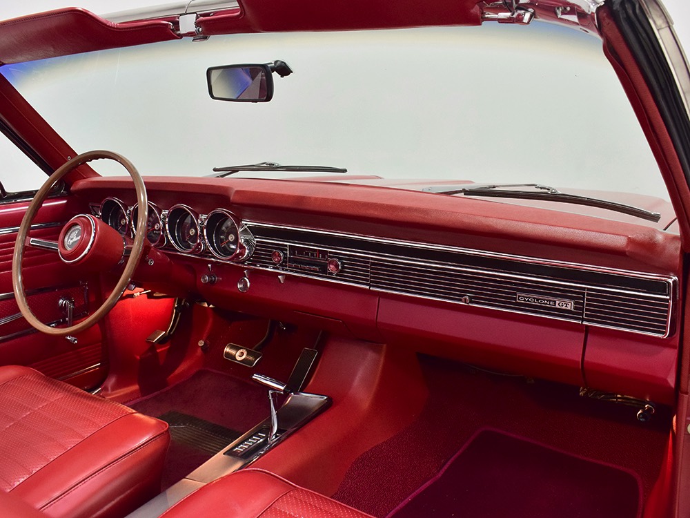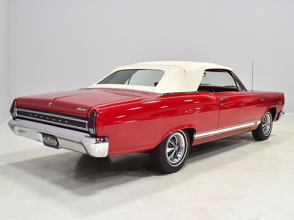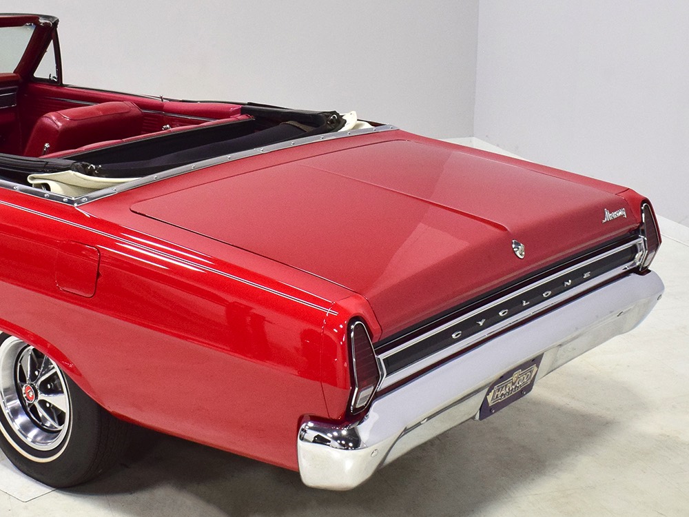 This phenomenally well-preserved 1967 Mercury Comet Cyclone GT convertible has had just two owners from new and spent the first 45 years of its life in sunny California. The original owner was a judge in California who apparently won it from a Mercury dealer in a poker game—the car was the centerpiece of the dealer’s showroom, sitting in a roped-off display area for most of the 1967 model year, waiting for just the right buyer to come along. But as things go, the dealer came up a little short so the Cyclone plus a little cash settled the debt a few days before Christmas 1967. The judge kept the car for decades, maintaining it in excellent condition and using that original dealer for service for most of its life. That kind of care has rendered this car one of the finest survivors we’ve ever seen. There are a few areas of touch-up on the body, most notably the trunk lid which isn’t quite the same color, but most of the paint is original, including the wonderfully preserved fiberglass hood. Even the white pinstripes and GT stripes along the rockers are original paint, not decals. As a California car, there’s no sign of rust or rot anywhere on the car (check out that undercarriage!) and the laser-straight bodywork stands up to scrutiny form any angle. As we said, this is one of the most impressive unrestored cars we’ve ever seen.