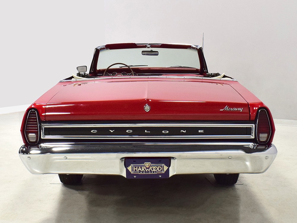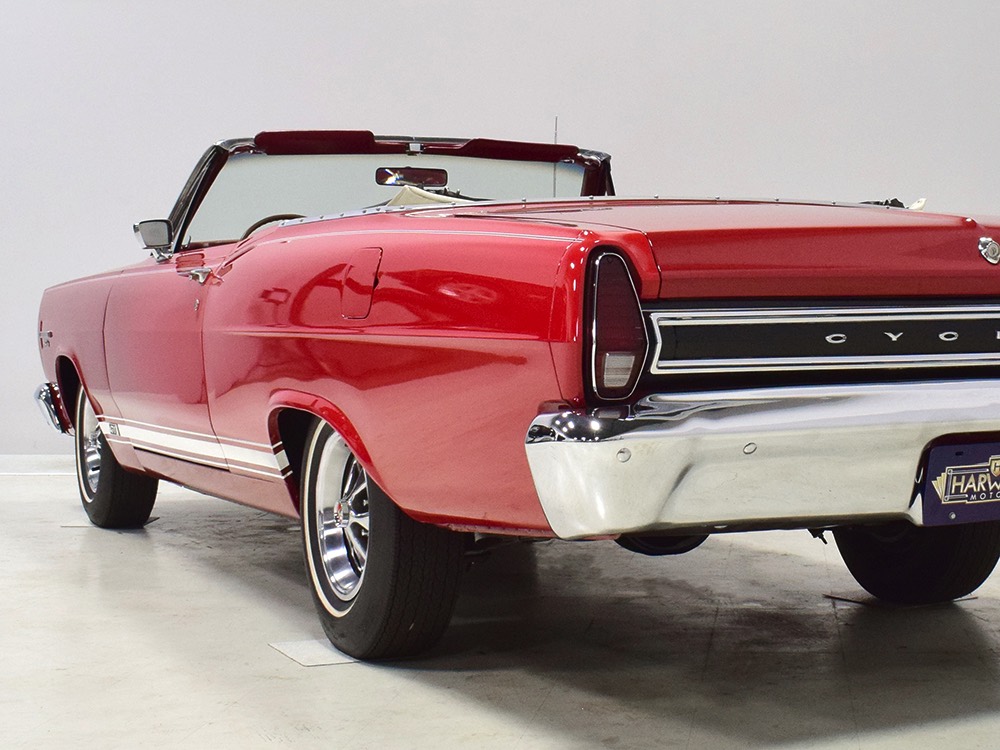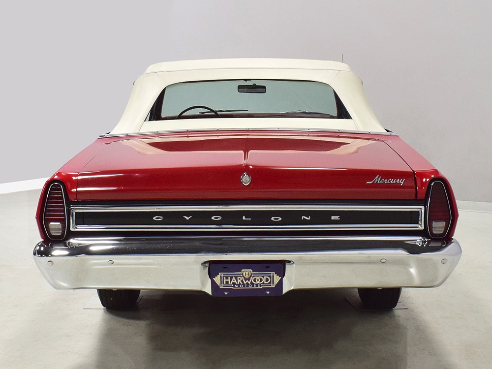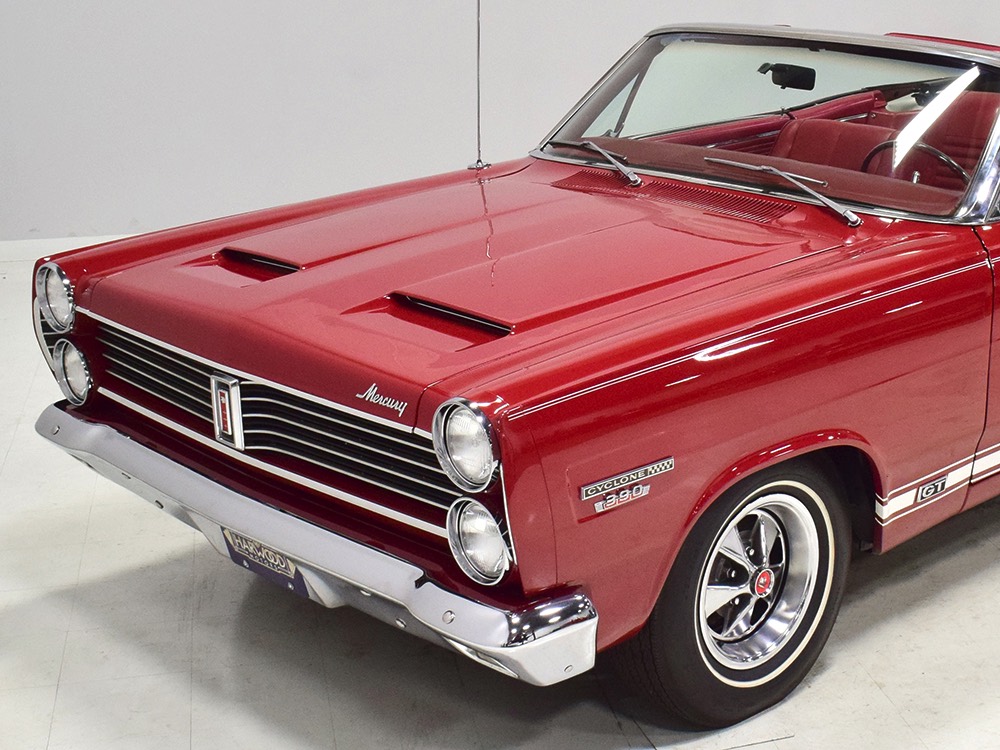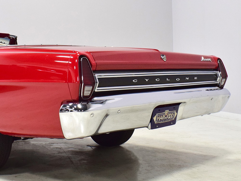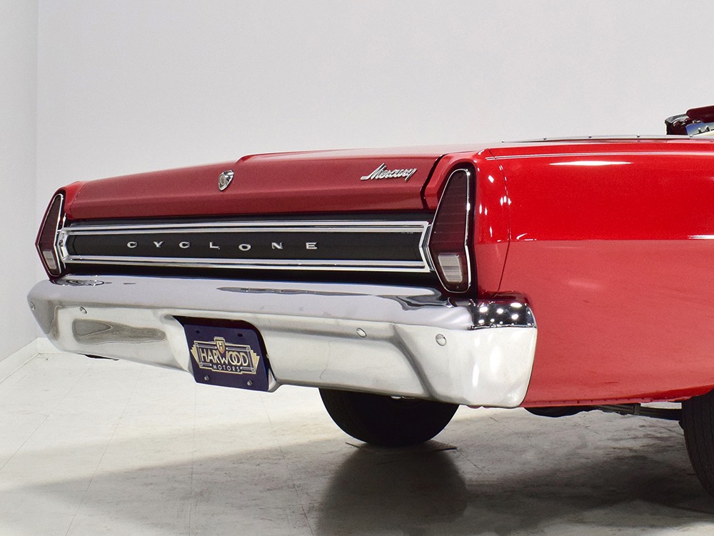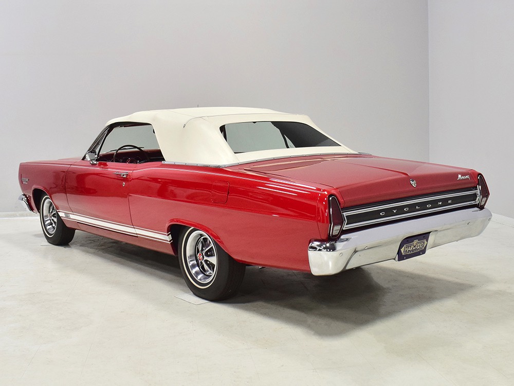 This phenomenally well-preserved 1967 Mercury Comet Cyclone GT convertible has had just two owners from new and spent the first 45 years of its life in sunny California. The original owner was a judge in California who apparently won it from a Mercury dealer in a poker game—the car was the centerpiece of the dealer’s showroom, sitting in a roped-off display area for most of the 1967 model year, waiting for just the right buyer to come along. But as things go, the dealer came up a little short so the Cyclone plus a little cash settled the debt a few days before Christmas 1967. The judge kept the car for decades, maintaining it in excellent condition and using that original dealer for service for most of its life. That kind of care has rendered this car one of the finest survivors we’ve ever seen. There are a few areas of touch-up on the body, most notably the trunk lid which isn’t quite the same color, but most of the paint is original, including the wonderfully preserved fiberglass hood. Even the white pinstripes and GT stripes along the rockers are original paint, not decals. As a California car, there’s no sign of rust or rot anywhere on the car (check out that undercarriage!) and the laser-straight bodywork stands up to scrutiny form any angle. As we said, this is one of the most impressive unrestored cars we’ve ever seen.