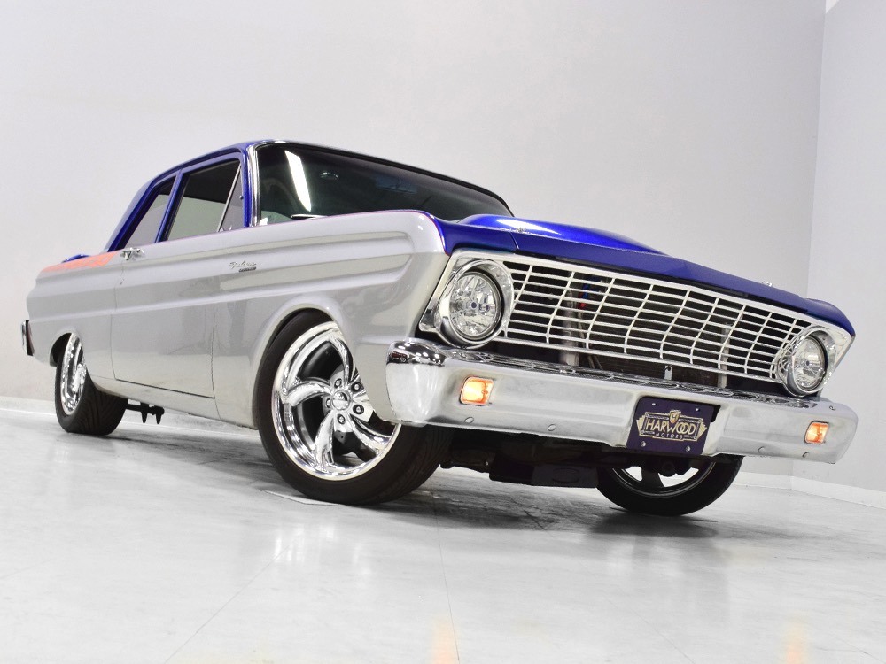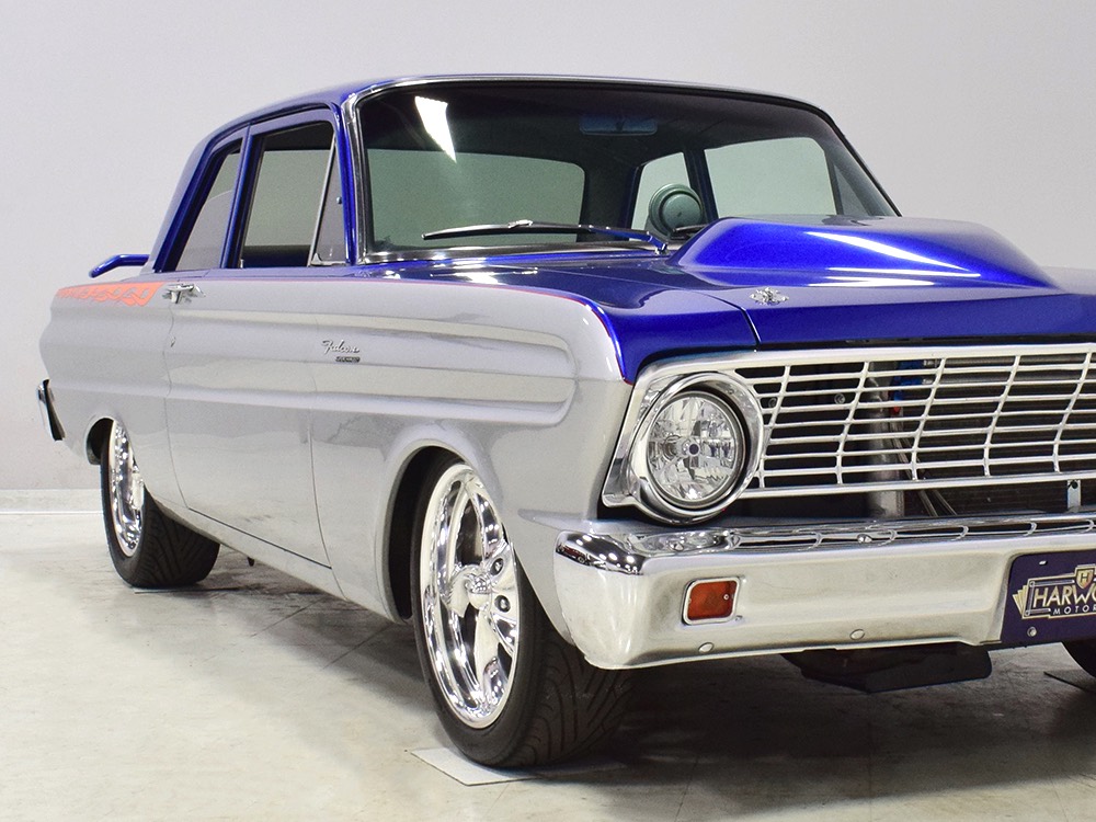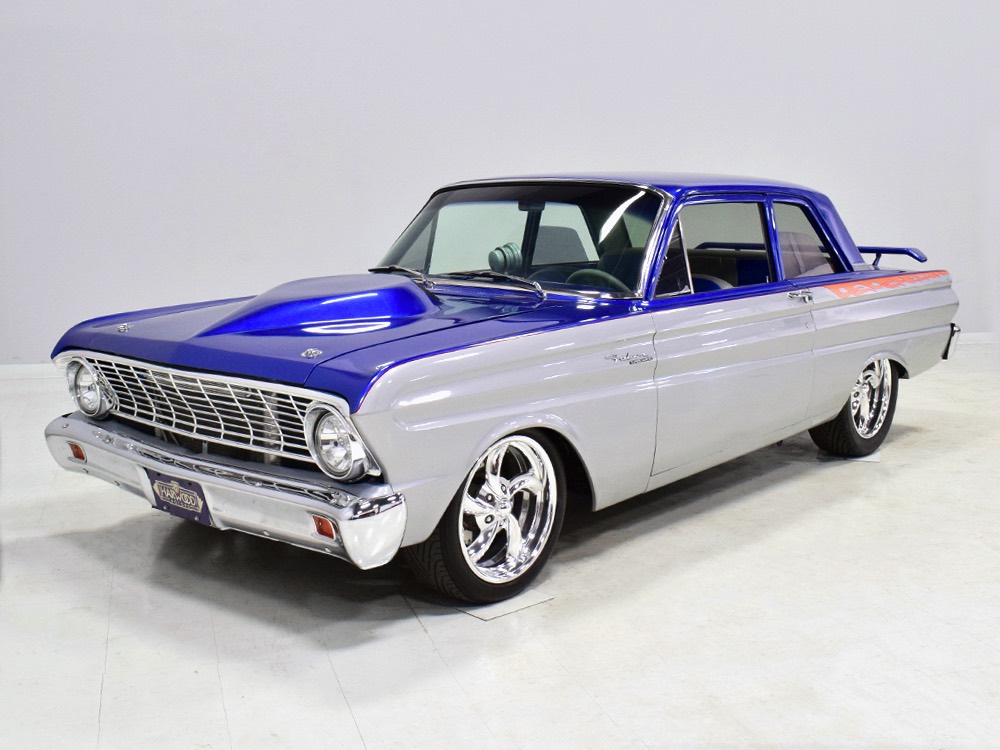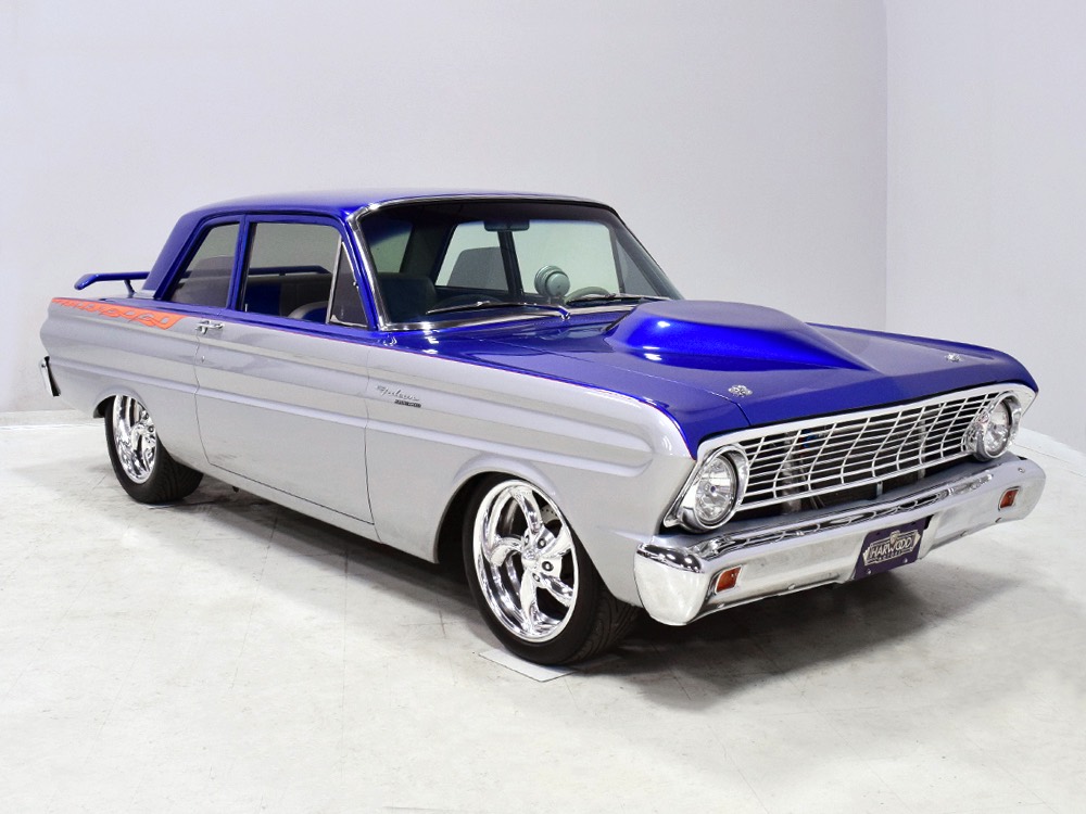 The best way to buy a custom-built car is to let someone else do the heavy financial lifting for you. This nasty little 1964 Ford Falcon, for example, has a fairly large pile of money behind it but today it’s extremely affordable. Better still, with 2200 miles on the odometer, it’s already sorted out and ready to rock. Can’t say that about many freshly finished show cars. There’s beautifully finished bodywork with flashy two-tone paint and minimalist flame graphics, so it’ll look good practically forever. Inside, the custom interior is comfortable and stylish, again so it’ll always be in style. And under the hood, well, you’ll find a snarky supercharged 302 cubic inch V8 that turns it into the purest kind of entertainment—the kind that bounces your eyeballs off the inside of your skull. Interested? You should be, because this Falcon looks like a show car but runs like a racer.