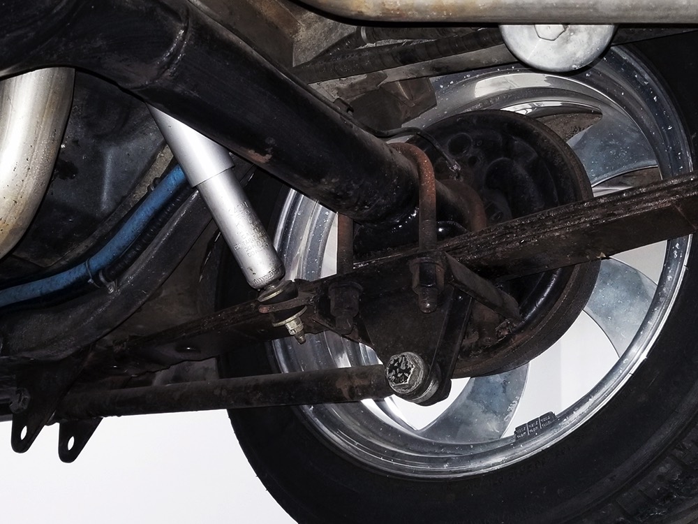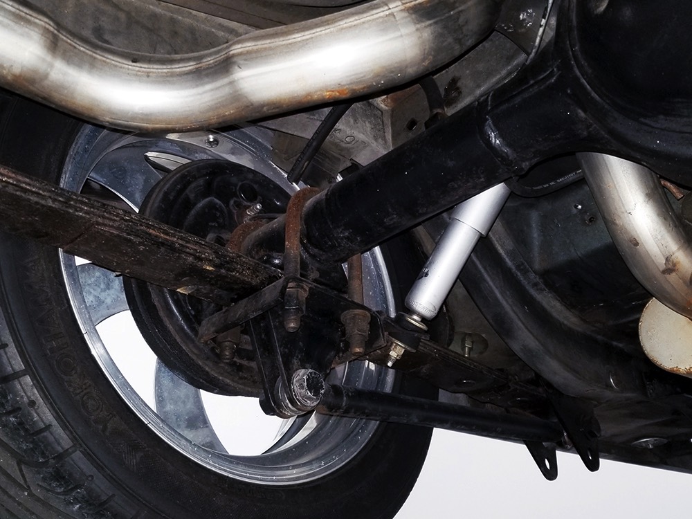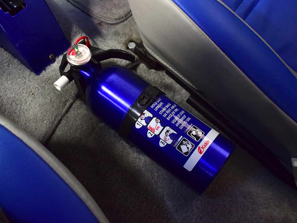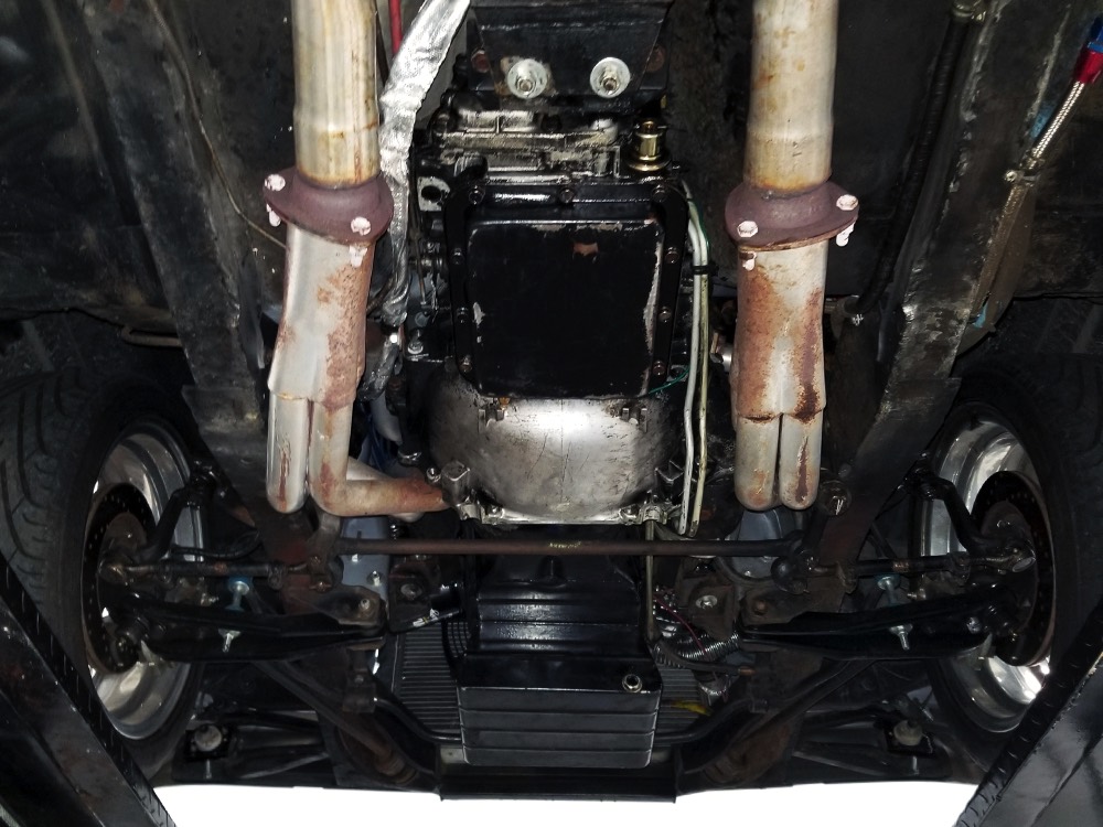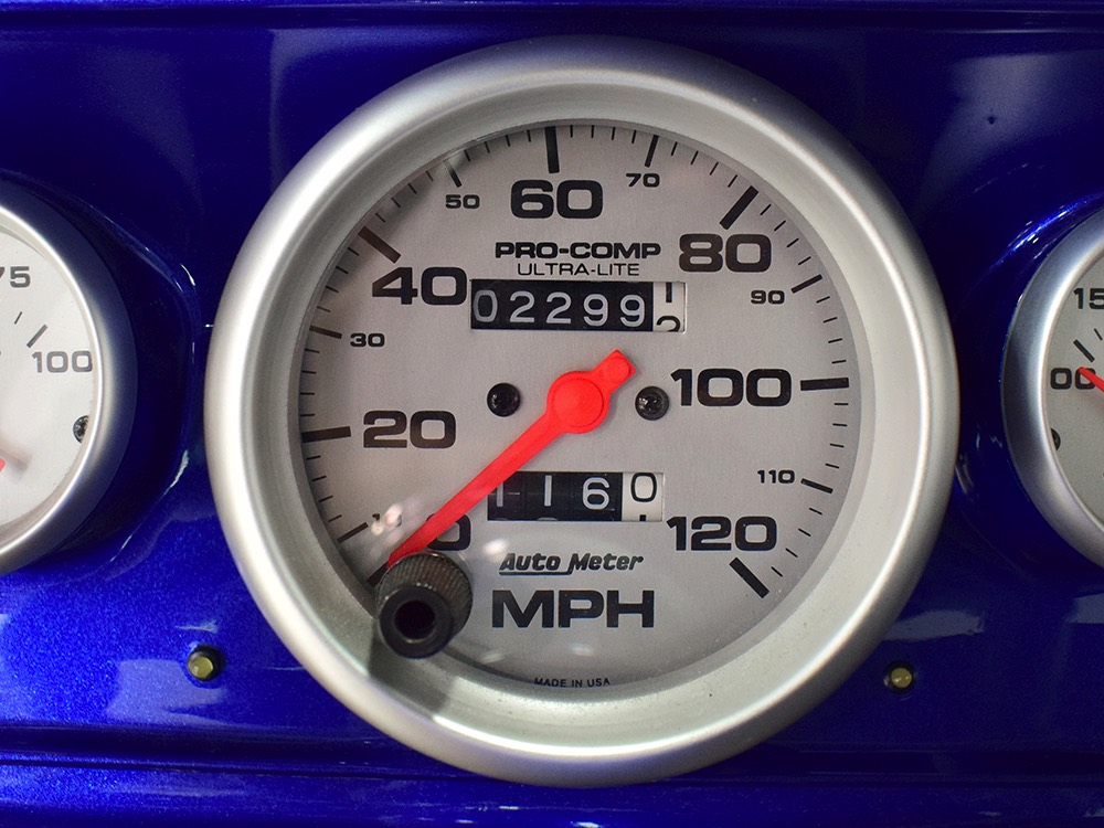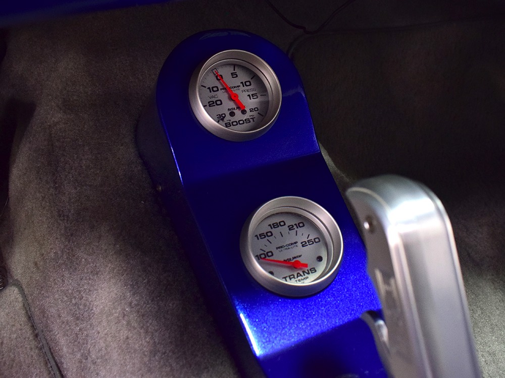 Underneath you can tell it has been driven and enjoyed properly, but there’s also a lot more high-quality workmanship. Subframe connectors reinforce the tub in a way that you can actually feel and it has been fitted with vented and cross-drilled disc brakes that are a big step up from the puny 9-inch drums it carried originally. The C4 3-speed automatic transmission has a 2200 RPM stall torque converter and a reverse manual valve body, so you’ll need to yank that shifter through the gears yourself—don’t worry, it’s fun. 4.11 gears in the 8-inch rear end make it punchy as hell, and traction bars on the rear springs help plant the tires to get the power where it needs to go. The entire fuel system was plumbed in -10 AN braided stainless to feed the blown V8. You’ll also note the original gas tank was fitted with a custom sump and an electric fuel pump to supply the go-juice. Nothing exotic, just proven hardware that’s sorted out and works like it should. The stance is exactly right, too, complements of Colorado Custom wheels measuring 17x7 in front and 18x8 in back and wearing staggered 205/50/17 and 235/50/18 Yokohama radials.