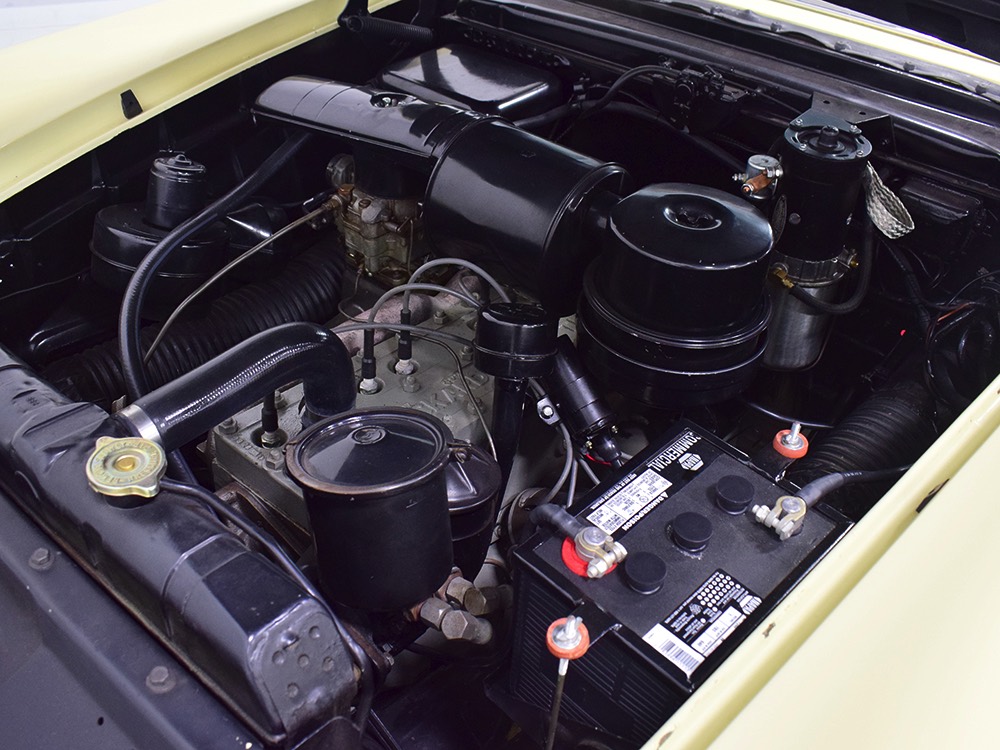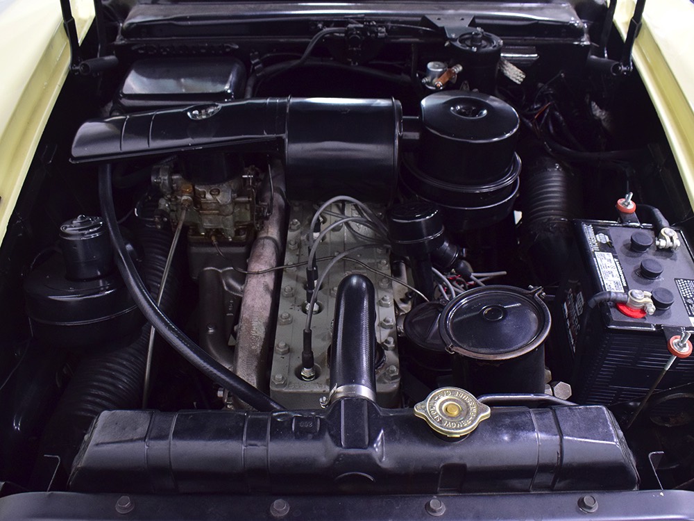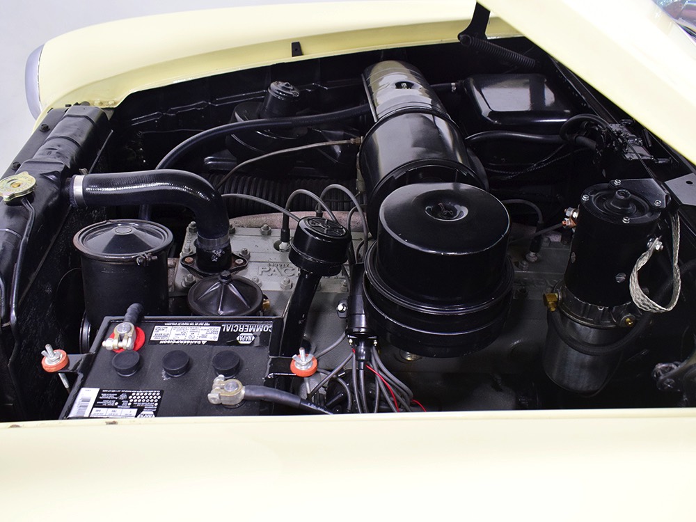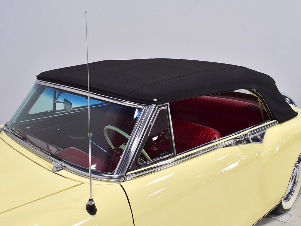 There are a lot of folks who believe that a Packard isn’t a Packard without a straight-8 engine under the hood, and the ultra-smooth and surprisingly powerful 327 cubic inch straight-8 used in 1953 is a great runner. With a 4-barrel carburetor and a rather 8.0:1 compression ratio, it makes 180 of the most creamy-smooth horsepower you’ve ever experienced. Perhaps even more significantly, there’s 300 pounds of torque on tap at just 2000 RPM. There’s nary a vibration or shudder and effortless torque at any speed. That’s what owning a Packard is all about. The engine was rebuilt to stock specifications in 2012 and has not been driven much since then so it’s still fresh. It starts quickly and easily with the accelerator pedal-mounted starter switch and idles smoothly and almost silently after a few moments on the choke. Corporate gray engine enamel is a little industrial for the high-end Caribbean, but that’s how it was in 1953. There are new ignition components, fresh belts and hoses, and the hydraulic pump for the windows and top was rebuilt. The heavy-duty oil bath air cleaner looks right and you’ll note power steering is part of the deal, making this Packard extremely easy to handle.