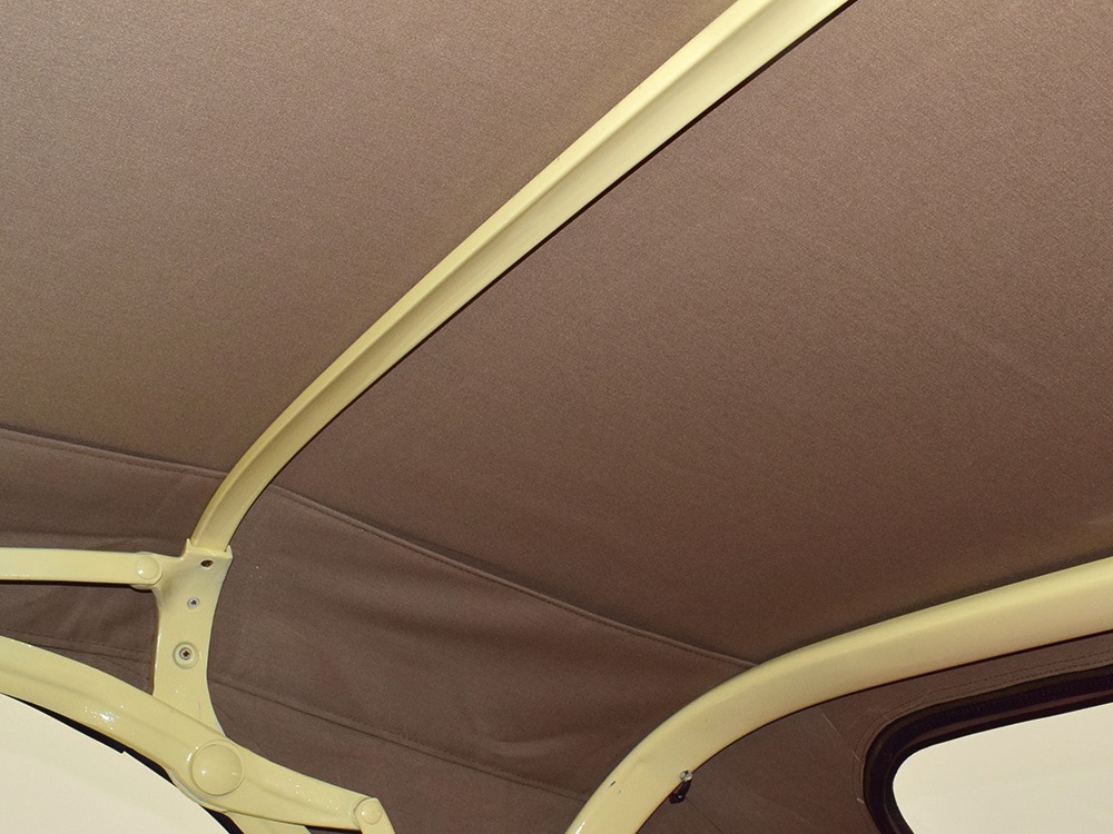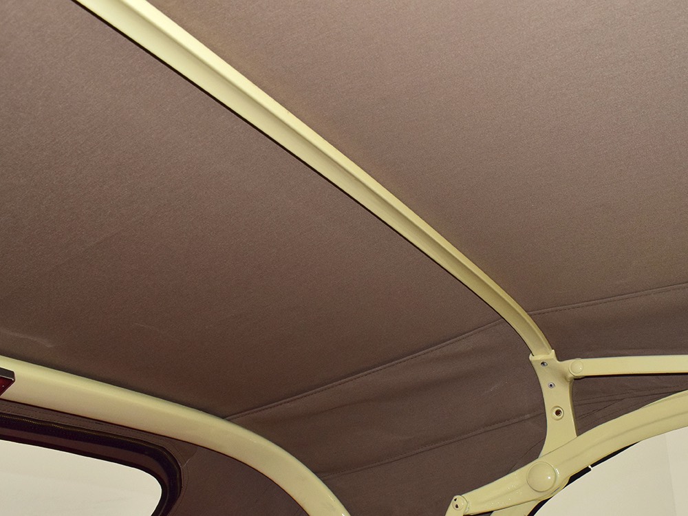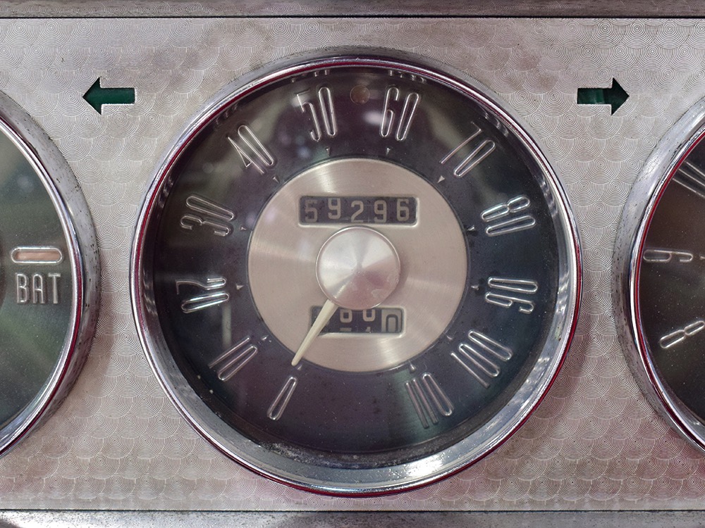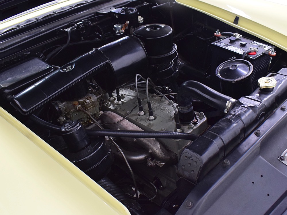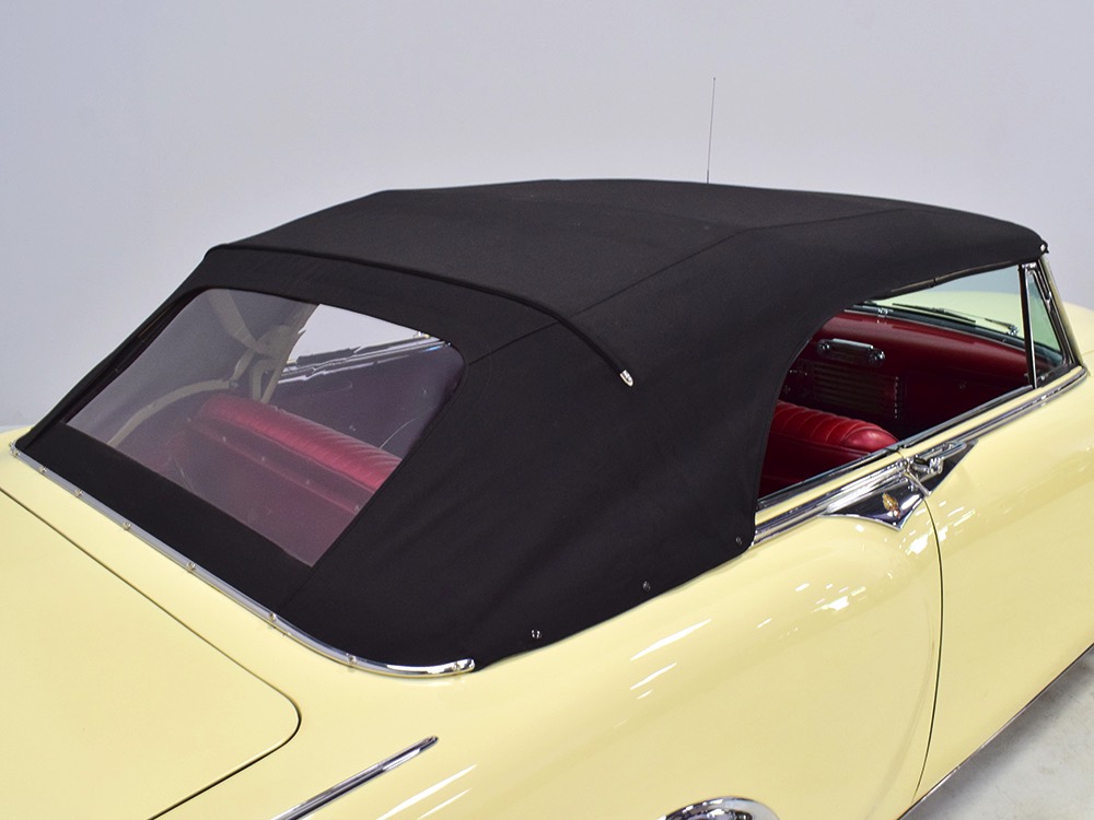 There are a lot of folks who believe that a Packard isn’t a Packard without a straight-8 engine under the hood, and the ultra-smooth and surprisingly powerful 327 cubic inch straight-8 used in 1953 is a great runner. With a 4-barrel carburetor and a rather 8.0:1 compression ratio, it makes 180 of the most creamy-smooth horsepower you’ve ever experienced. Perhaps even more significantly, there’s 300 pounds of torque on tap at just 2000 RPM. There’s nary a vibration or shudder and effortless torque at any speed. That’s what owning a Packard is all about. The engine was rebuilt to stock specifications in 2012 and has not been driven much since then so it’s still fresh. It starts quickly and easily with the accelerator pedal-mounted starter switch and idles smoothly and almost silently after a few moments on the choke. Corporate gray engine enamel is a little industrial for the high-end Caribbean, but that’s how it was in 1953. There are new ignition components, fresh belts and hoses, and the hydraulic pump for the windows and top was rebuilt. The heavy-duty oil bath air cleaner looks right and you’ll note power steering is part of the deal, making this Packard extremely easy to handle.