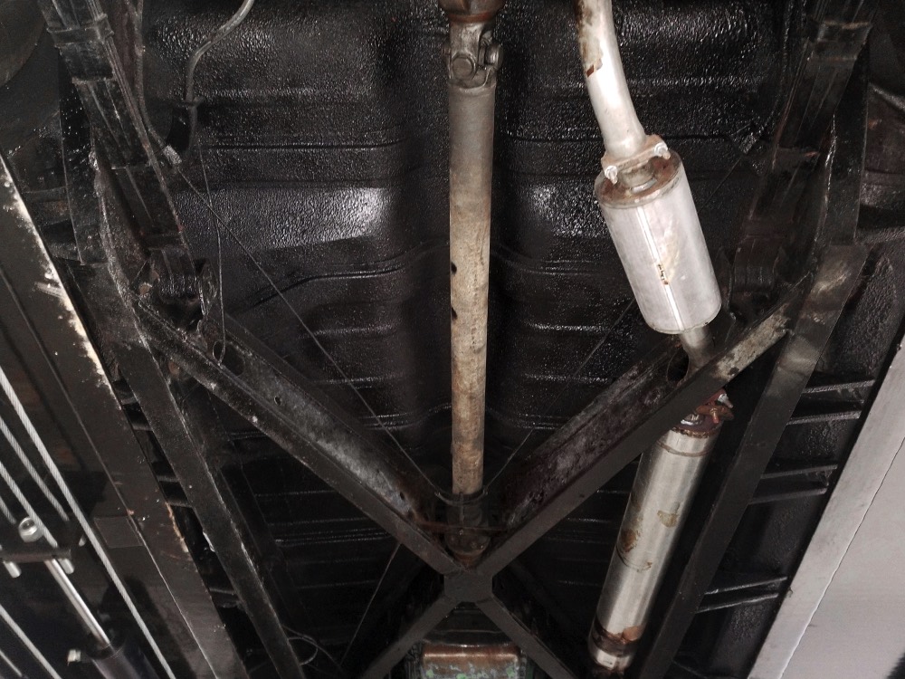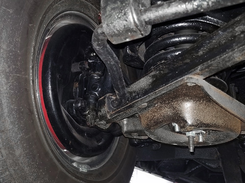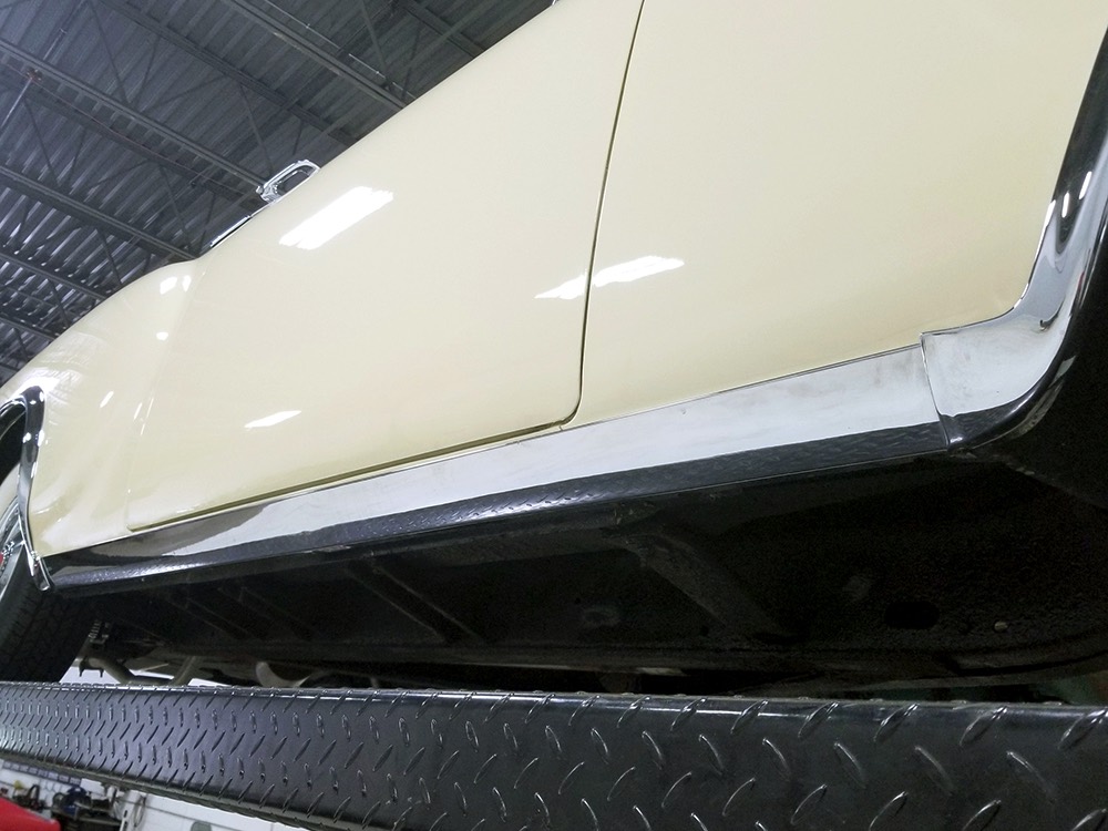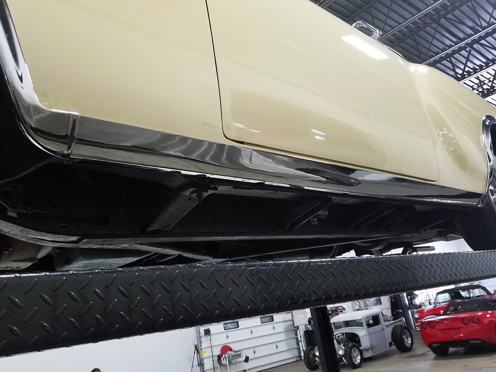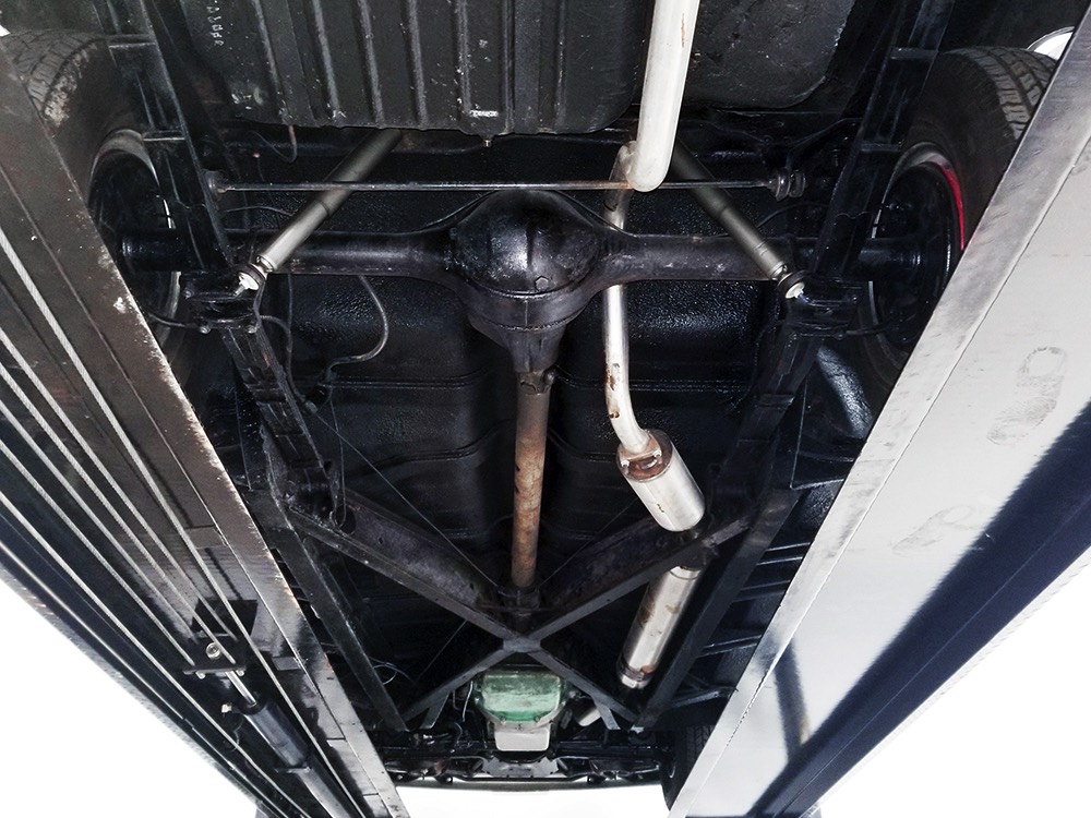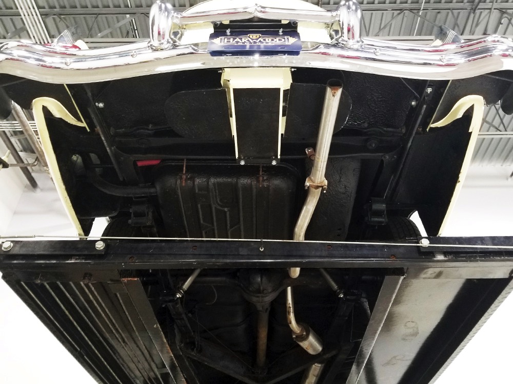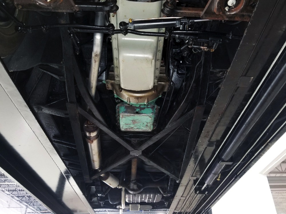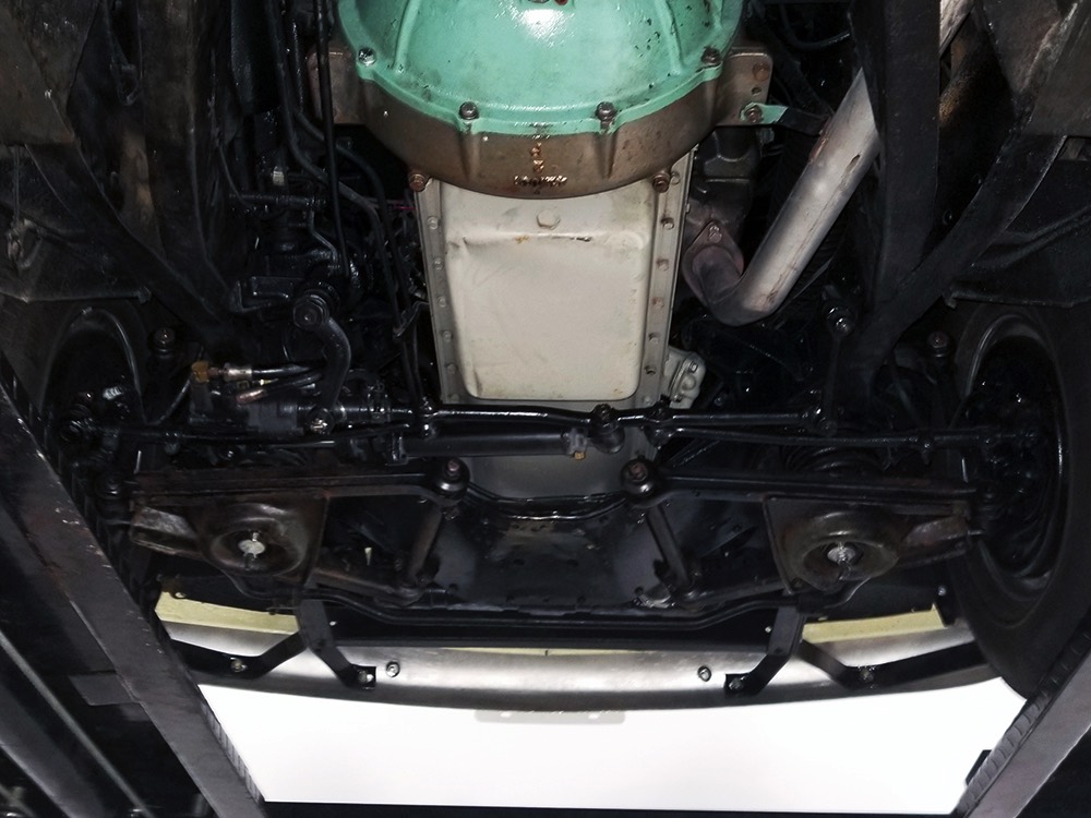 We don’t believe the body has ever been off the frame, but on a clean car it’s not really necessary. The chassis is coated in a layer of black undercoating, presumably to seal and protect rather than hide, and we can’t find any evidence of rot or previous damage. There are minor signs of use, but it’s quite clean overall and someone has obviously been sweating the details in the mechanics department—there are new components on the power steering system, fresh shocks at all four corners, the brakes show newer hoses and stop firmly, and a correct reproduction exhaust system (with two mufflers) was just installed. Packard’s “UltraMatic” 2-speed automatic transmission isn’t sophisticated but it’s durable and smooth, and the smooth straight-8 makes so much torque that it rarely needs a downshift. 3.54 gears in the rear axle make this car feel quick and lively around town despite its rather hefty 4100-pound curb weight and it’s a smooth, comfortable cruiser at 65 MPH. Gorgeous chrome wire wheels (not hubcaps) look properly upscale and carry recent 225/75/15 wide whitewall radials that really upgrade the ride and handling.