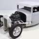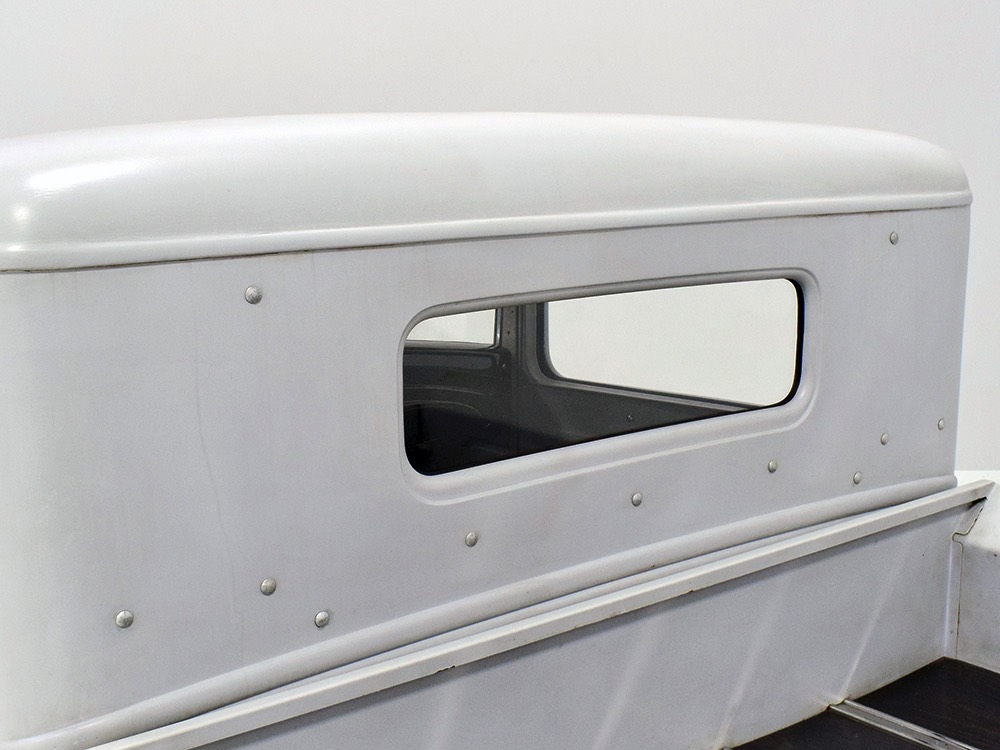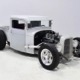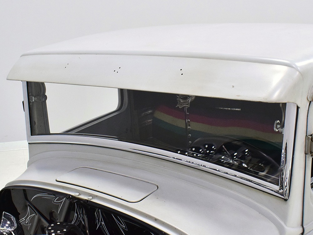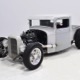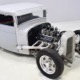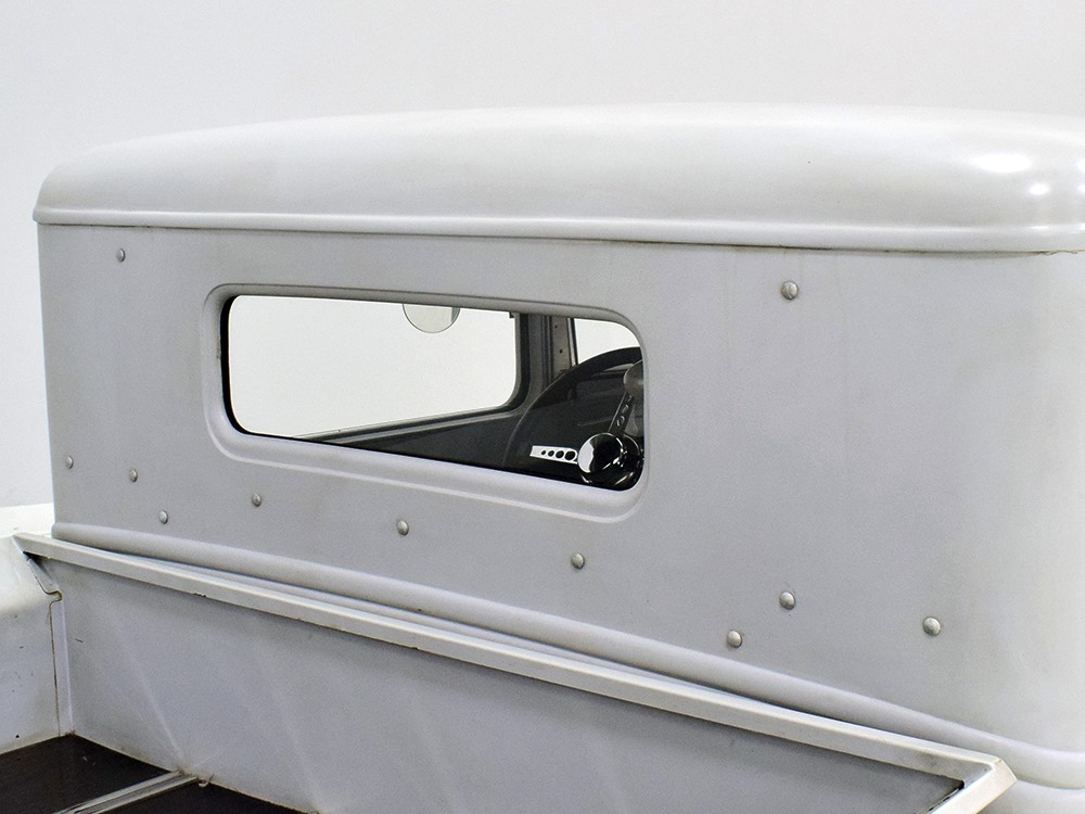 This truck was built in California by a guy name Ken Thurm, who has some notoriety in the hobby. It’s a genuine Henry Ford steel ’32 Ford pickup cab that was chopped four inches and channeled another six by Jeff Sherman, which is another name you might have read about recently. The work is so seamless that you almost can’t spot the modifications without a stock Ford next to it, and none of it affects your ability to get comfortable inside. He also fabricated the custom bed, tailgate, and chopped down an original deuce radiator shell to match. Once he’d made all the cuts and welds invisible, Jeff just shot it with some gray primer he had around the shop and told Ken to come pick it up. Ken wasn’t sure what color he was going to use, but at least he could start assembling the thing.