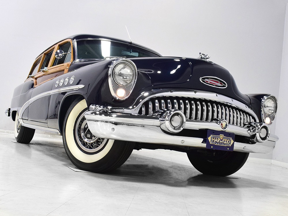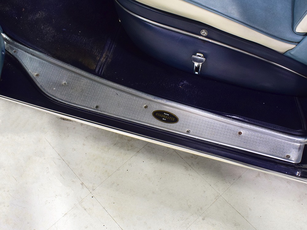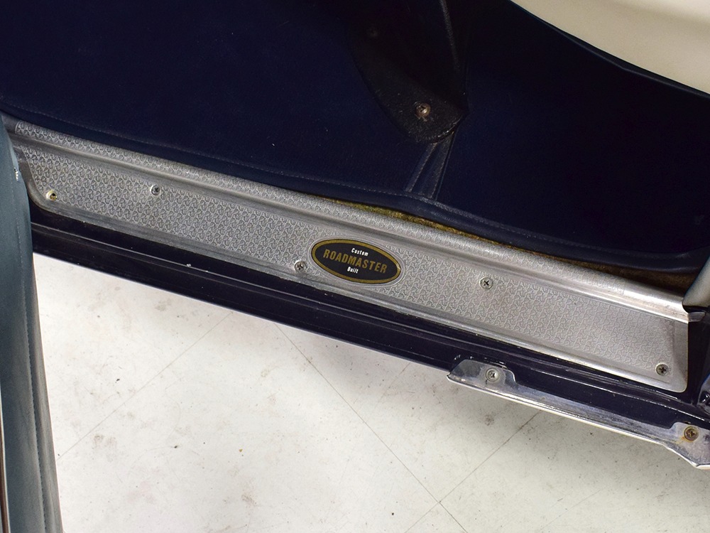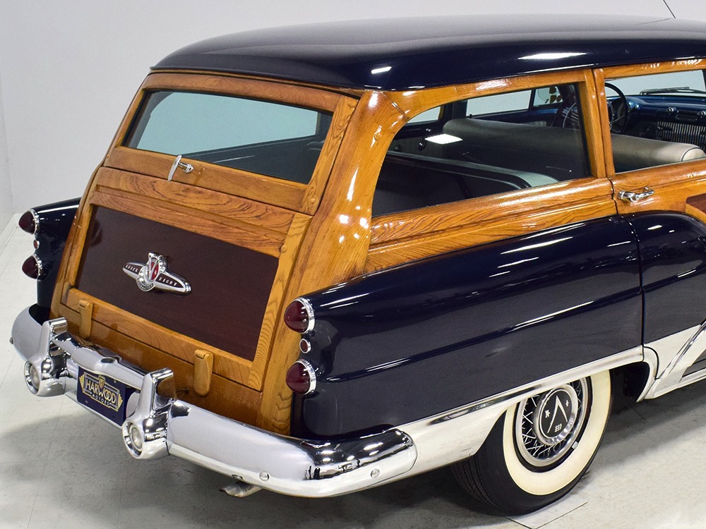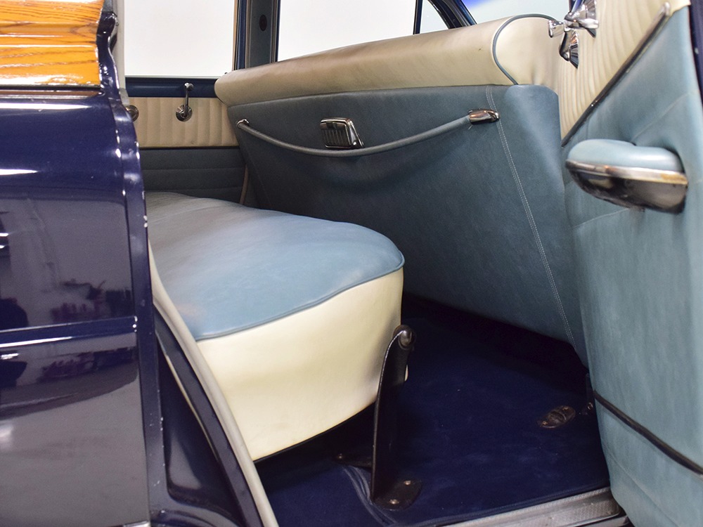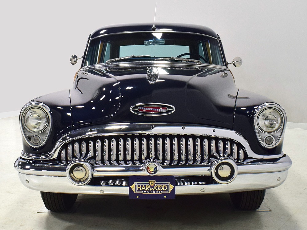 Experts suggest that perhaps 20 or 25 1953 Roadmaster woodies remain, but there’s no way to know for sure. What we do know is that this handsome Imperial Blue Roadmaster wagon is not only one of the prettiest wagons we’ve ever featured, but also one of the best. Going over it carefully, we can find no evidence that anything serious has ever been replaced—the wood appears entirely original, there are no patches in the floor, no replacement body panels, nothing. So they started with an extremely good car when it was comprehensively restored about 15 years ago. Judging by the stickers on the driver’s vent window, it appears to have lived at least part of its life in Boston, as there are Boston Yacht Club parking passes dating to 1967 as well as a pass for the Mystic River bridge. But if it lived all its life there, it certainly wasn’t a daily driver in the winter, because it’s extremely straight and very well preserved throughout. It is worth noting that the color was changed from the original code 52 Verde Green to what appears to be code 53 Imperial Blue. The dramatic contrast between the dark blue paint and the light wood is simply beautiful, and it surely looks better today than it did when it was green. And since they used another factory color, there’s no deduction in judging—nice! Another bonus is that you know the restoration was thorough, because there’s zero evidence of any green paint on the car. If you’re not checking the trim tag, you’d never know this car hasn’t been blue all its life. Someone did this one correctly.