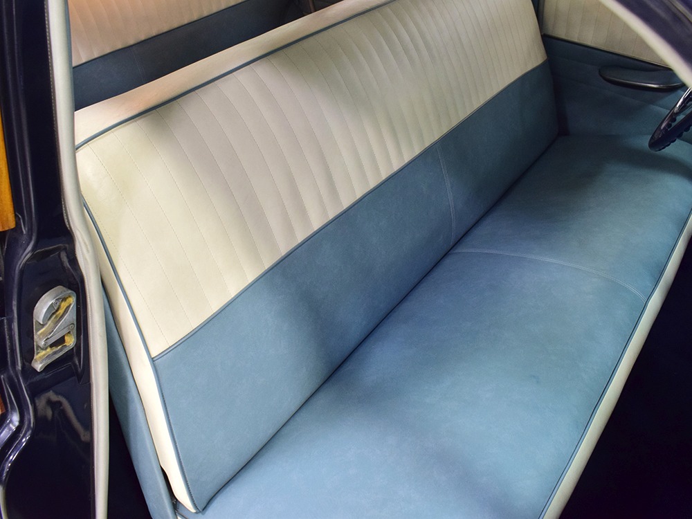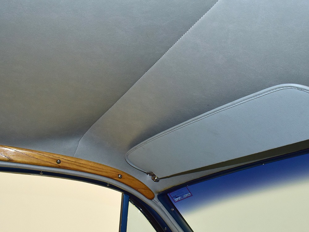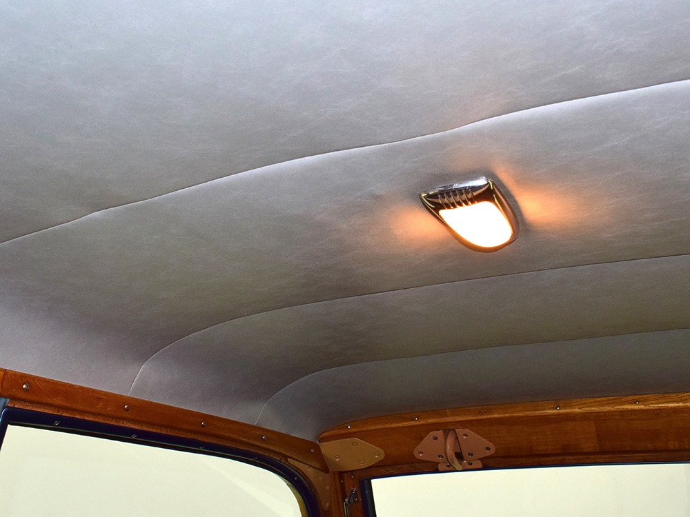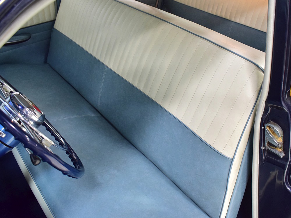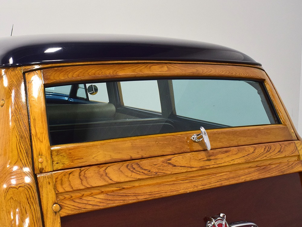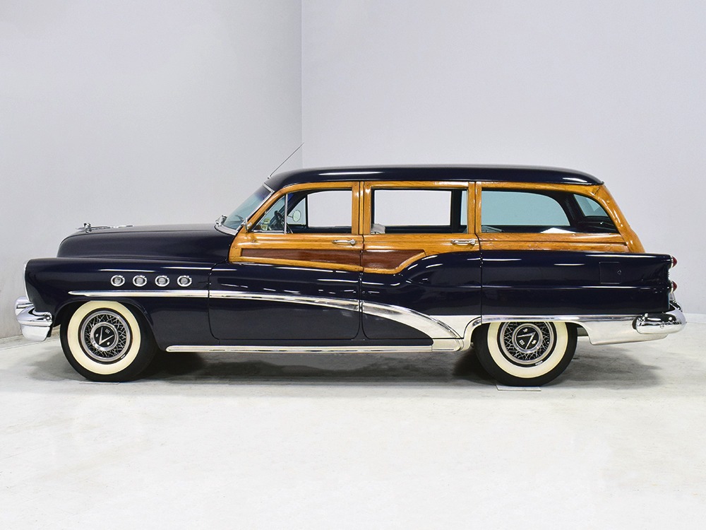 Experts suggest that perhaps 20 or 25 1953 Roadmaster woodies remain, but there’s no way to know for sure. What we do know is that this handsome Imperial Blue Roadmaster wagon is not only one of the prettiest wagons we’ve ever featured, but also one of the best. Going over it carefully, we can find no evidence that anything serious has ever been replaced—the wood appears entirely original, there are no patches in the floor, no replacement body panels, nothing. So they started with an extremely good car when it was comprehensively restored about 15 years ago. Judging by the stickers on the driver’s vent window, it appears to have lived at least part of its life in Boston, as there are Boston Yacht Club parking passes dating to 1967 as well as a pass for the Mystic River bridge. But if it lived all its life there, it certainly wasn’t a daily driver in the winter, because it’s extremely straight and very well preserved throughout. It is worth noting that the color was changed from the original code 52 Verde Green to what appears to be code 53 Imperial Blue. The dramatic contrast between the dark blue paint and the light wood is simply beautiful, and it surely looks better today than it did when it was green. And since they used another factory color, there’s no deduction in judging—nice! Another bonus is that you know the restoration was thorough, because there’s zero evidence of any green paint on the car. If you’re not checking the trim tag, you’d never know this car hasn’t been blue all its life. Someone did this one correctly.