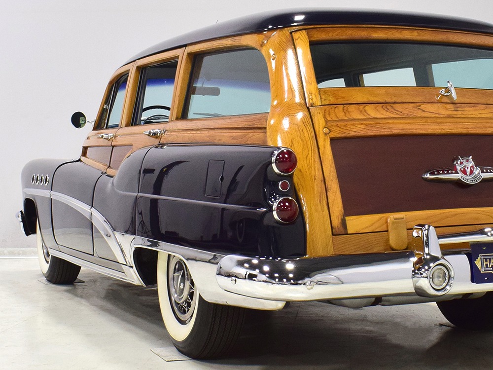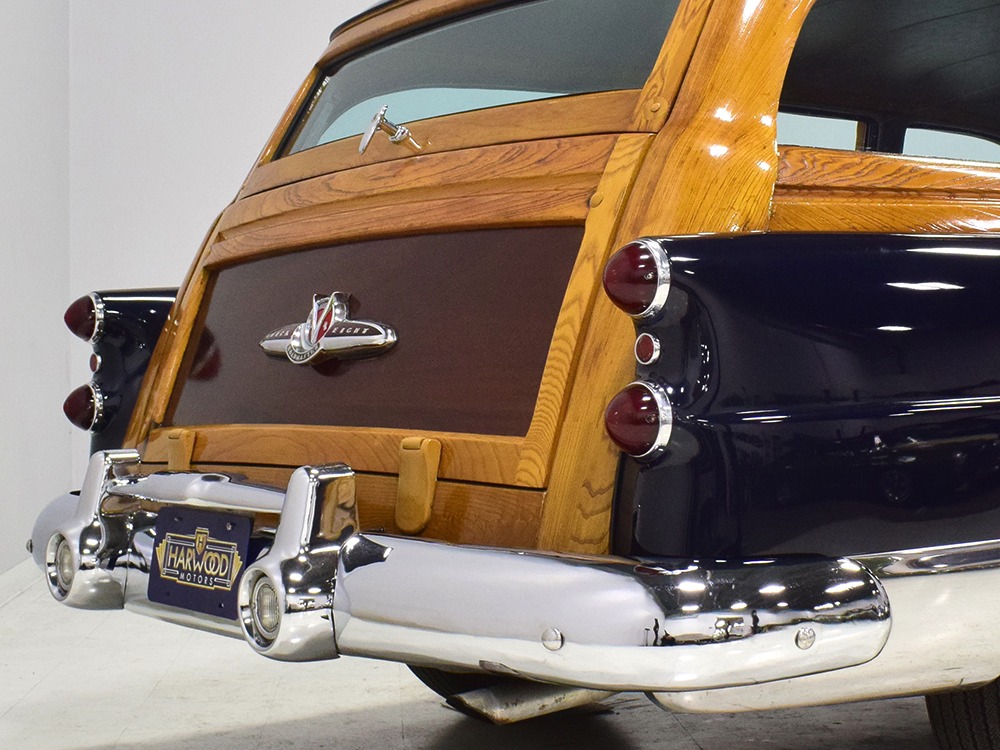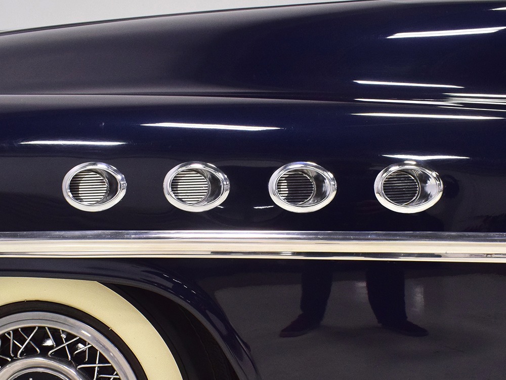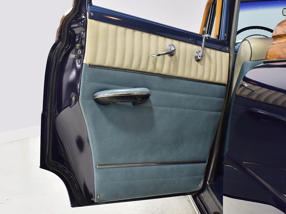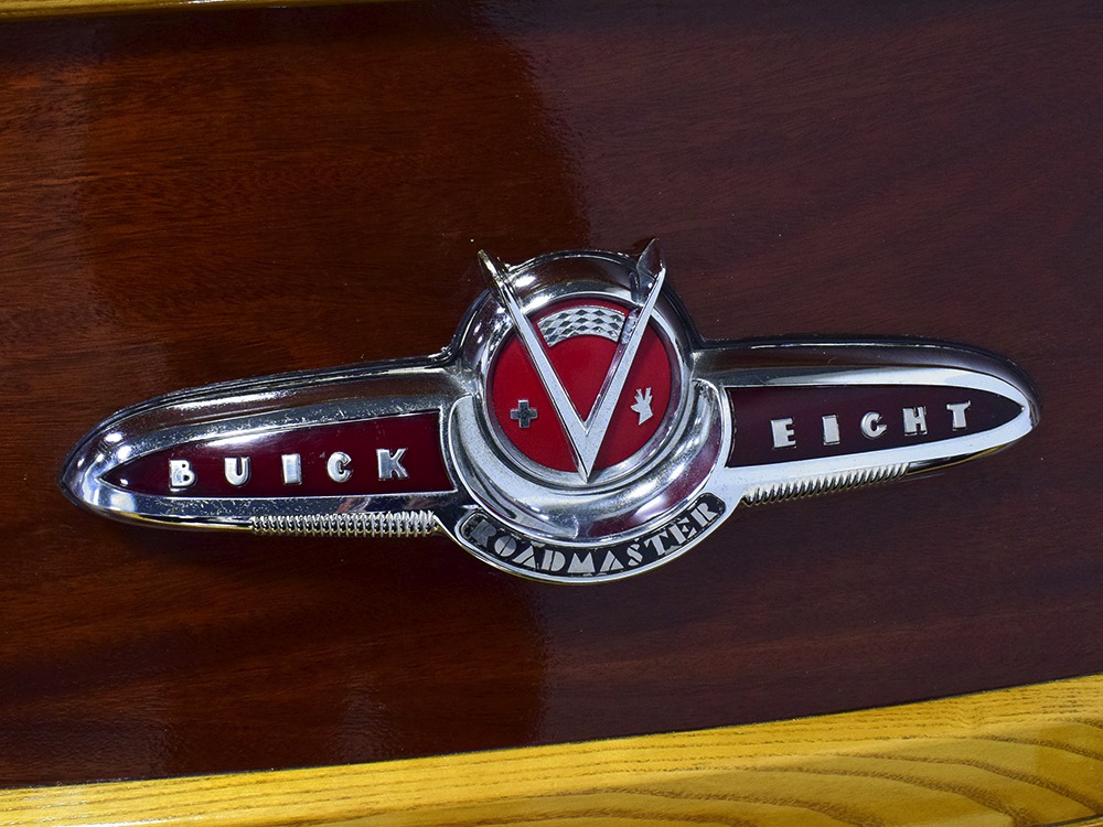 Of course, on any ‘50s car and in particular a Buick, chrome trim is critical. The ‘53s got an evolution of the ‘52’s toothy grille with slightly larger “teeth,” as well as a nicely integrated bumper and that sweeping side trim. Unique headlight doors with built-in parking lights, the “bombsight” hood ornament, and traditional Buick “Venti-Ports” in the front fenders all add to the wagon’s ornate look. This was, after all, Buick’s most expensive car and one that cost more than some Cadillacs. No worries, because someone invested a serious pile of cash restoring all that brightwork and today it presents beautifully with no demerits to mention beyond some light polishing marks that you could erase by hand if you’re really particular. Of note, this car has the optional back-up lights built into the rear bumper guards, and the emblem on the tailgate spells out ROADMASTER in big block letters so everyone knows this is a special car. You will not go unnoticed in this gorgeous wagon, I can promise you that.