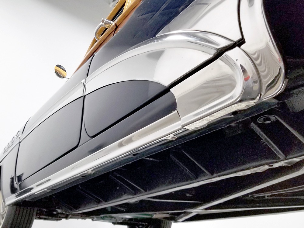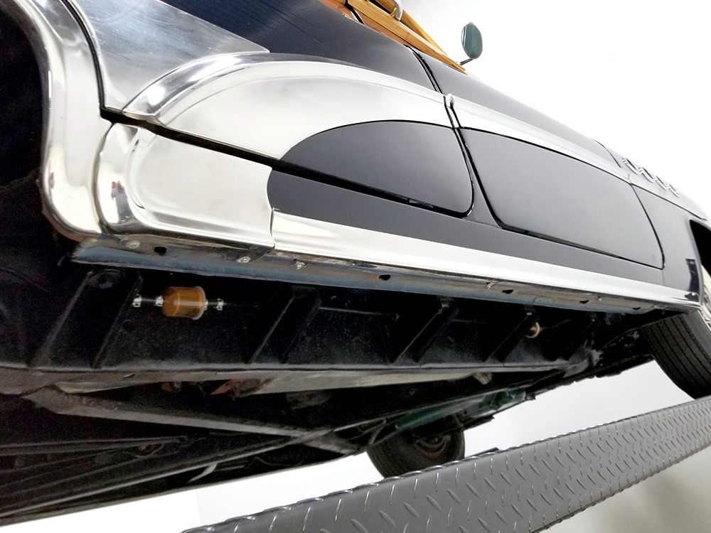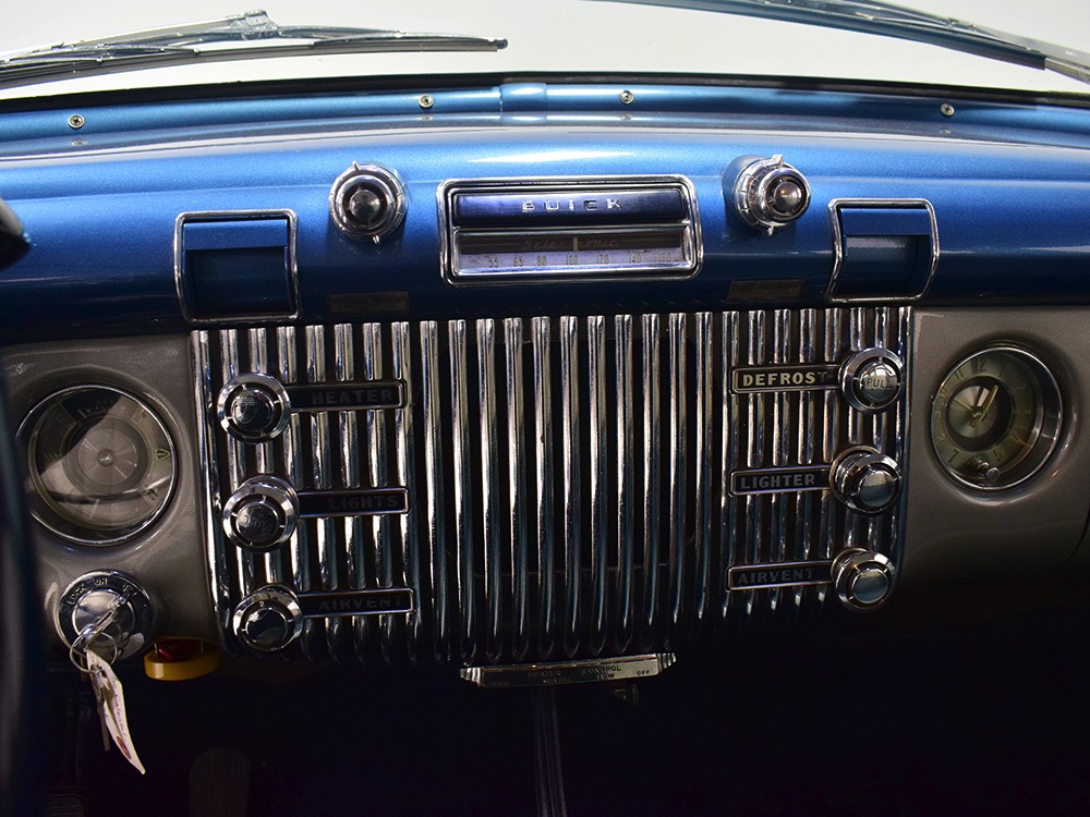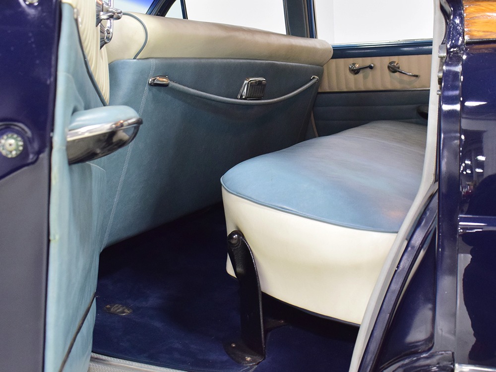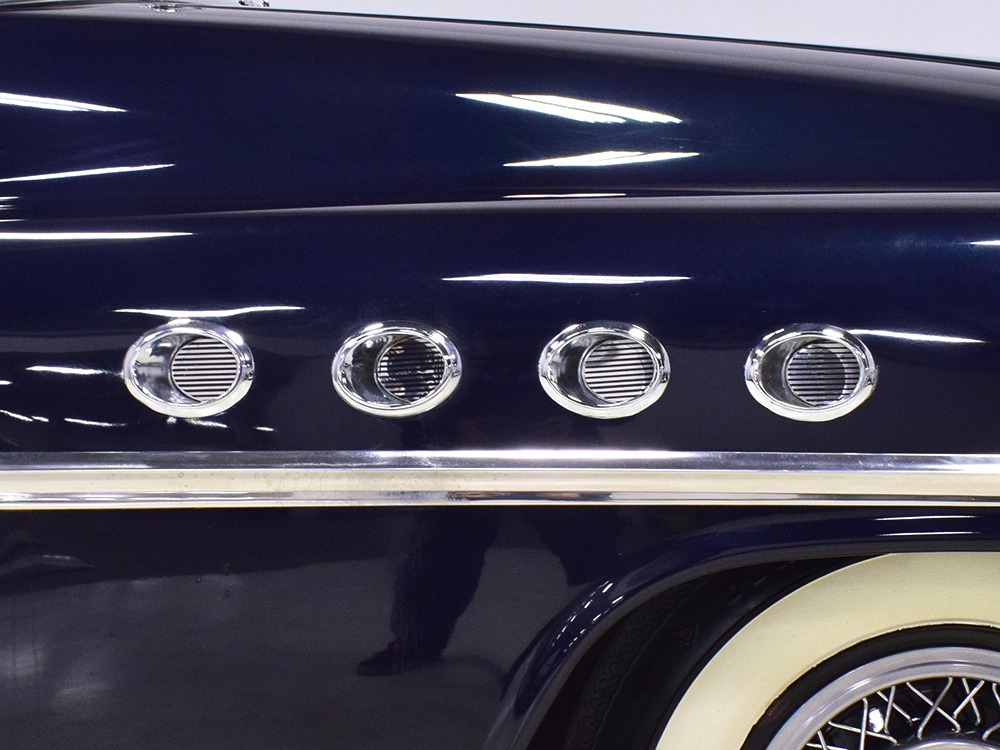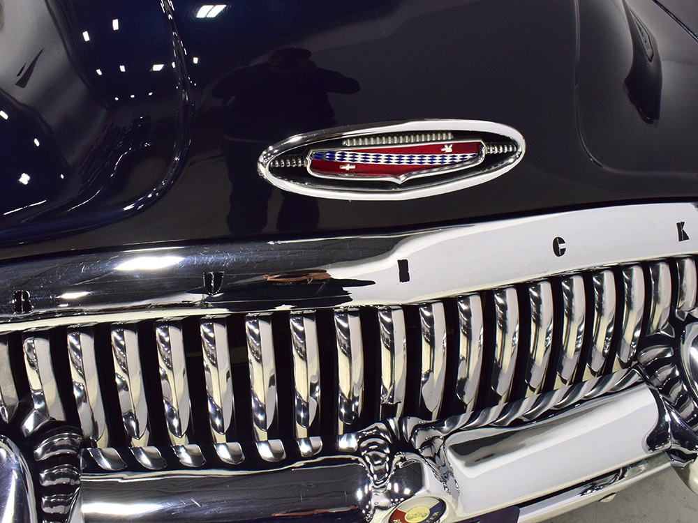 Of course, on any ‘50s car and in particular a Buick, chrome trim is critical. The ‘53s got an evolution of the ‘52’s toothy grille with slightly larger “teeth,” as well as a nicely integrated bumper and that sweeping side trim. Unique headlight doors with built-in parking lights, the “bombsight” hood ornament, and traditional Buick “Venti-Ports” in the front fenders all add to the wagon’s ornate look. This was, after all, Buick’s most expensive car and one that cost more than some Cadillacs. No worries, because someone invested a serious pile of cash restoring all that brightwork and today it presents beautifully with no demerits to mention beyond some light polishing marks that you could erase by hand if you’re really particular. Of note, this car has the optional back-up lights built into the rear bumper guards, and the emblem on the tailgate spells out ROADMASTER in big block letters so everyone knows this is a special car. You will not go unnoticed in this gorgeous wagon, I can promise you that.