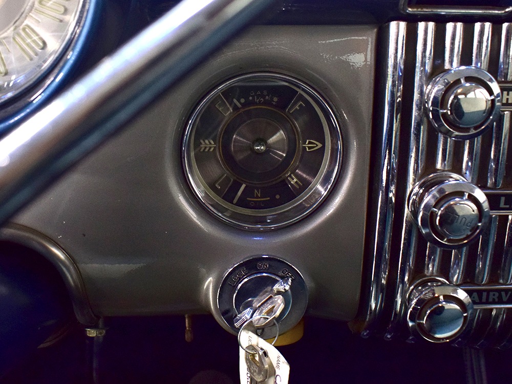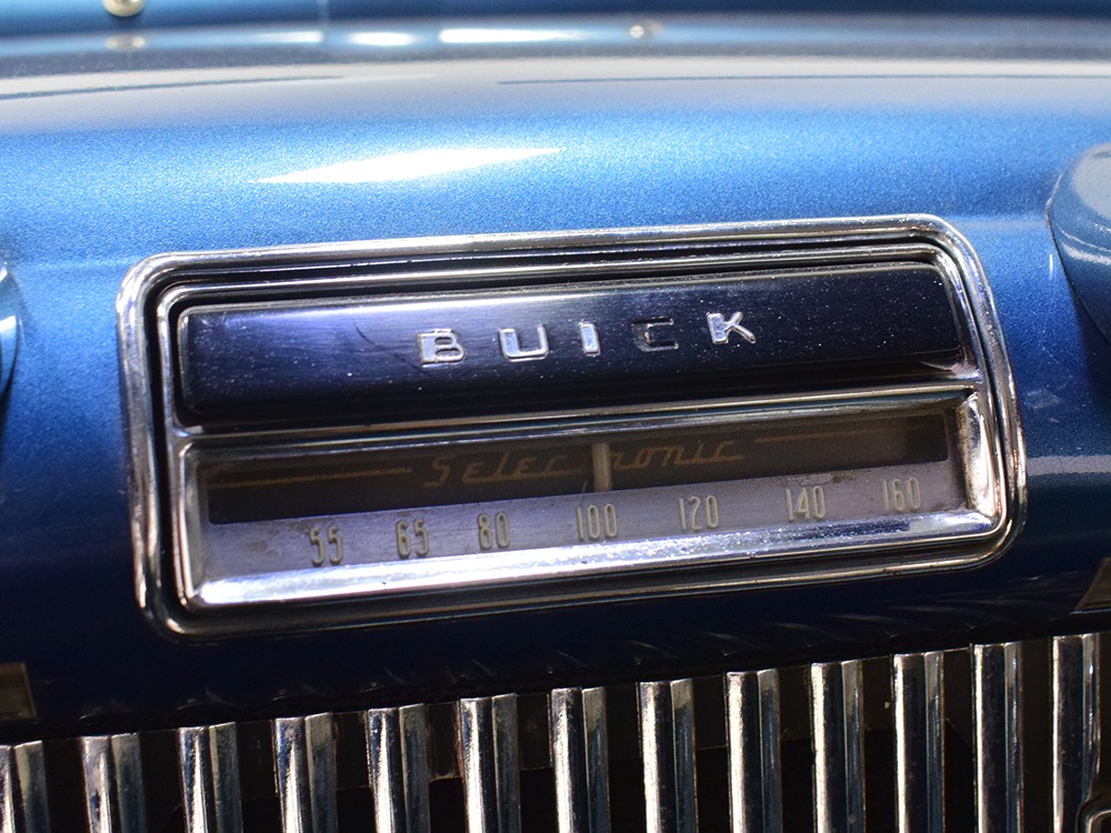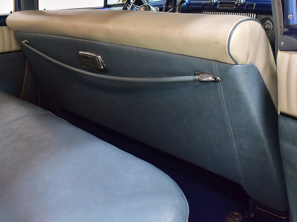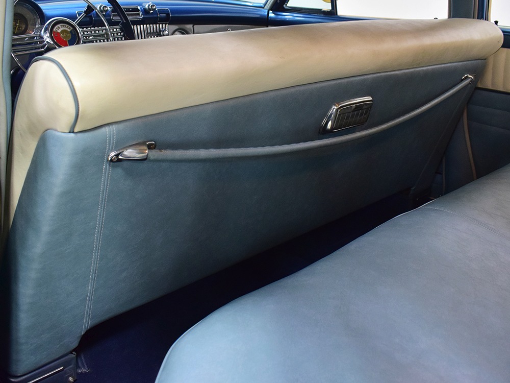 Buick’s all-new 322 cubic inch “Nailhead” V8 transformed Buick’s performance image. On paper, the 188 horsepower and 300 pounds of torque don’t seem like significant improvements over the venerable 320 cubic inch straight-8, but on the road the difference is startling. There’s massive torque available at any speed and it’s impeccably smooth, so this wagon gathers speed with surprising ease. The Nailheads have proven themselves to be virtually bulletproof and parts are readily available so service will be a snap. The engine is correctly detailed with corporate turquoise engine enamel, a heavy-duty air cleaner, reproduction decals, and a fresh reproduction wiring harness. Roadmasters received a Carter 4-barrel carburetor to give it impressive performance despite its 4200-pound mass. Seriously, it feels downright quick around town! It fires easily using the accelerator-mounted starter switch, idles well hot or cold, makes plenty of oil pressure, and seems to run nice and cool (although I’ll admit I have not driven it in rush-hour traffic on a 96-degree day). Power steering and brakes are included, so it’s easy to handle for just about anyone and the 12-volt electrical system ensures bright lights, quick starts, and easy maintenance in the future.