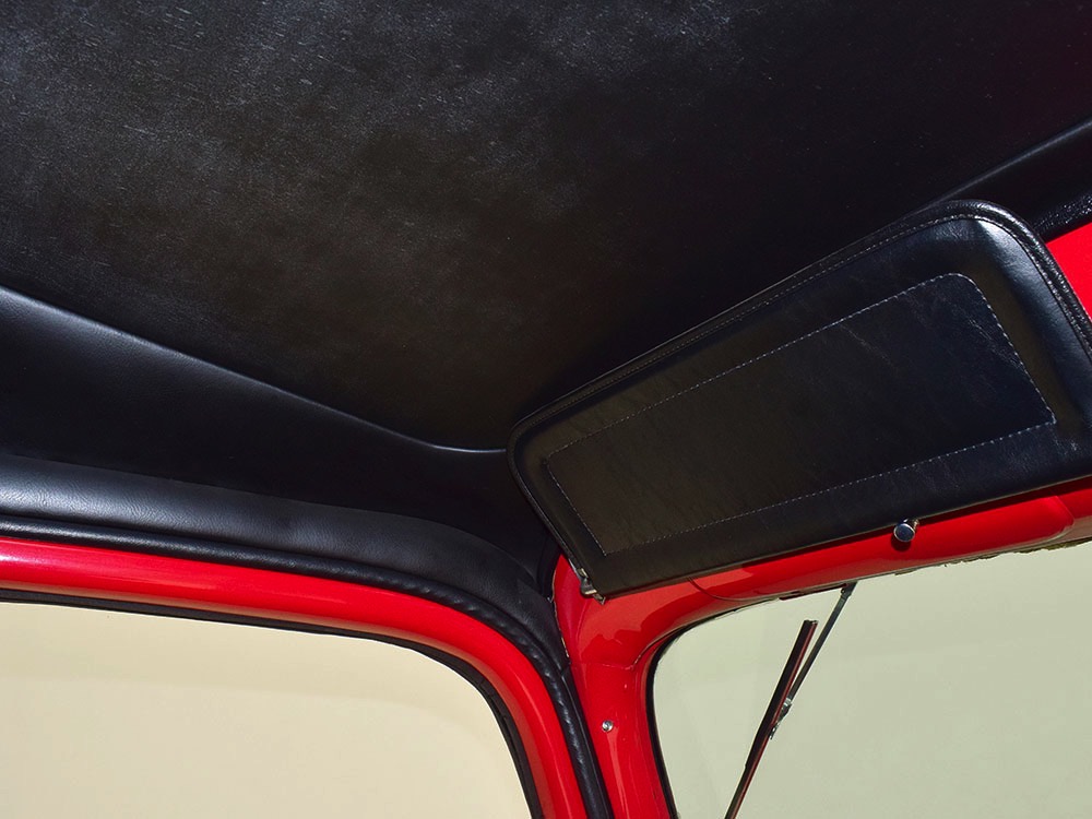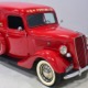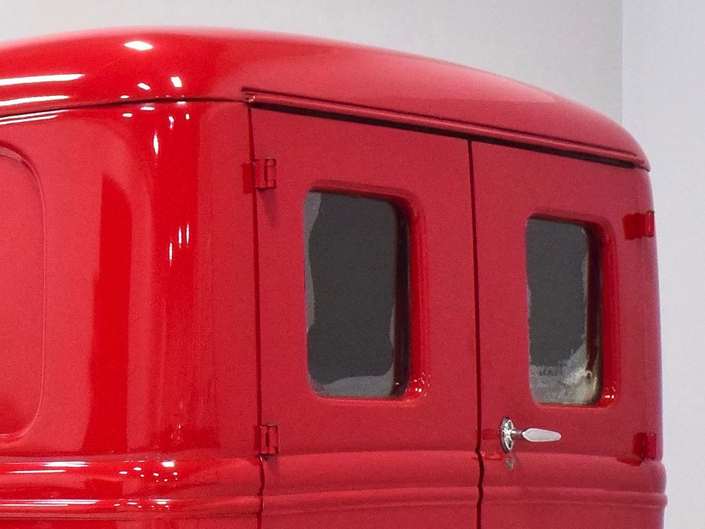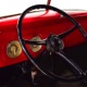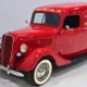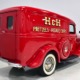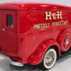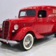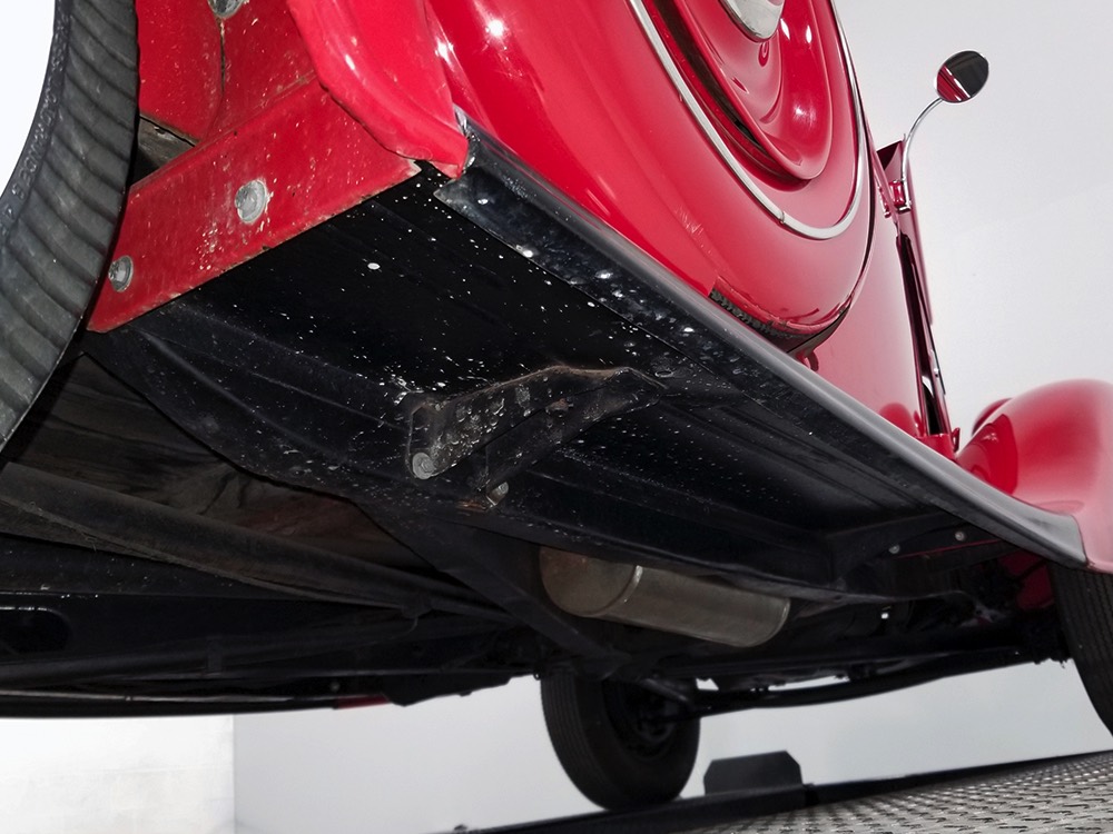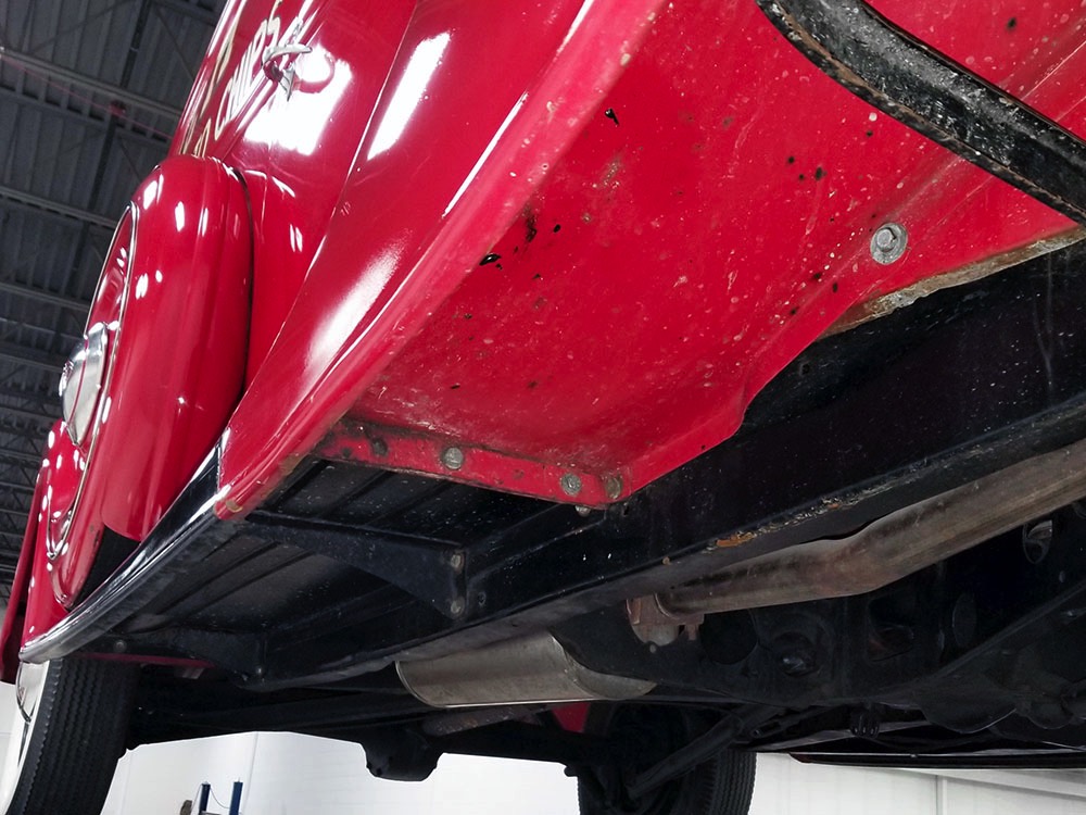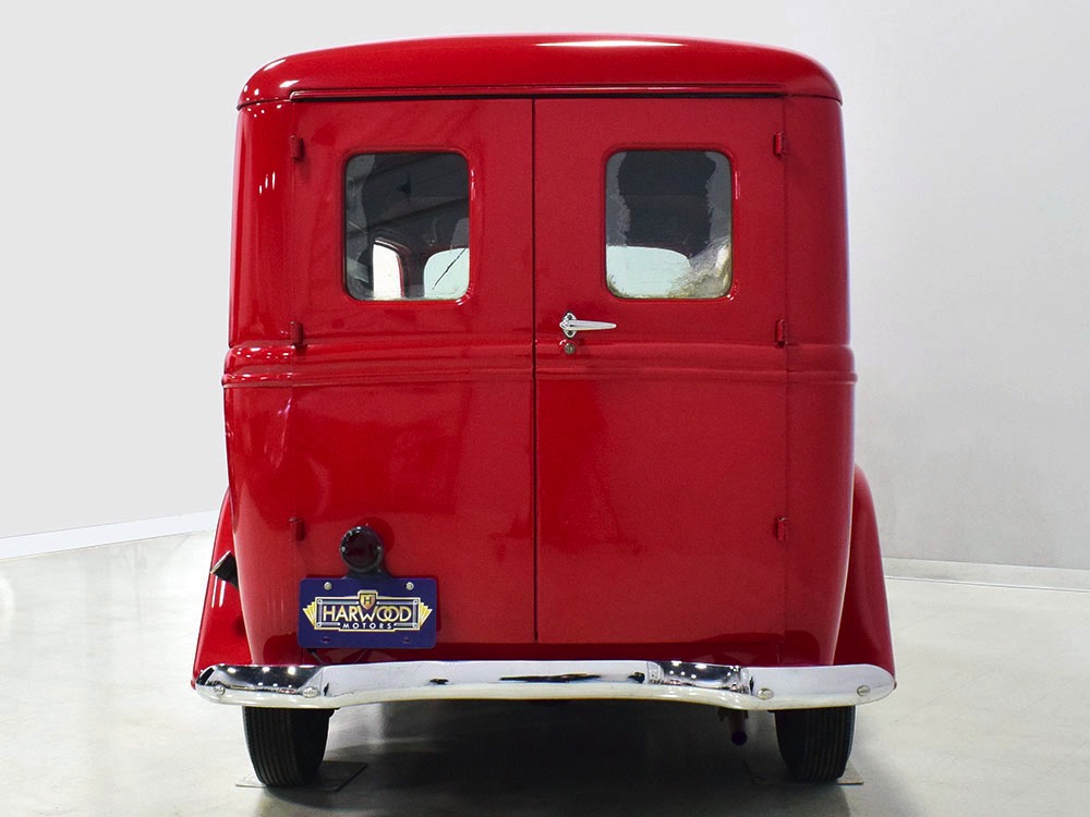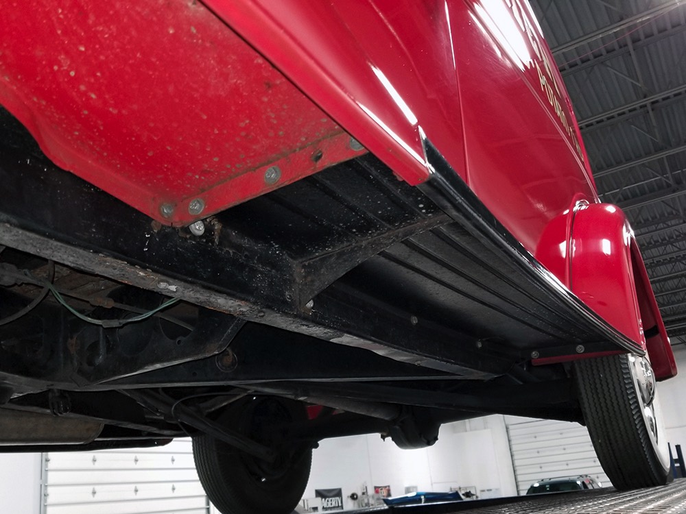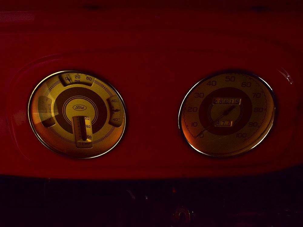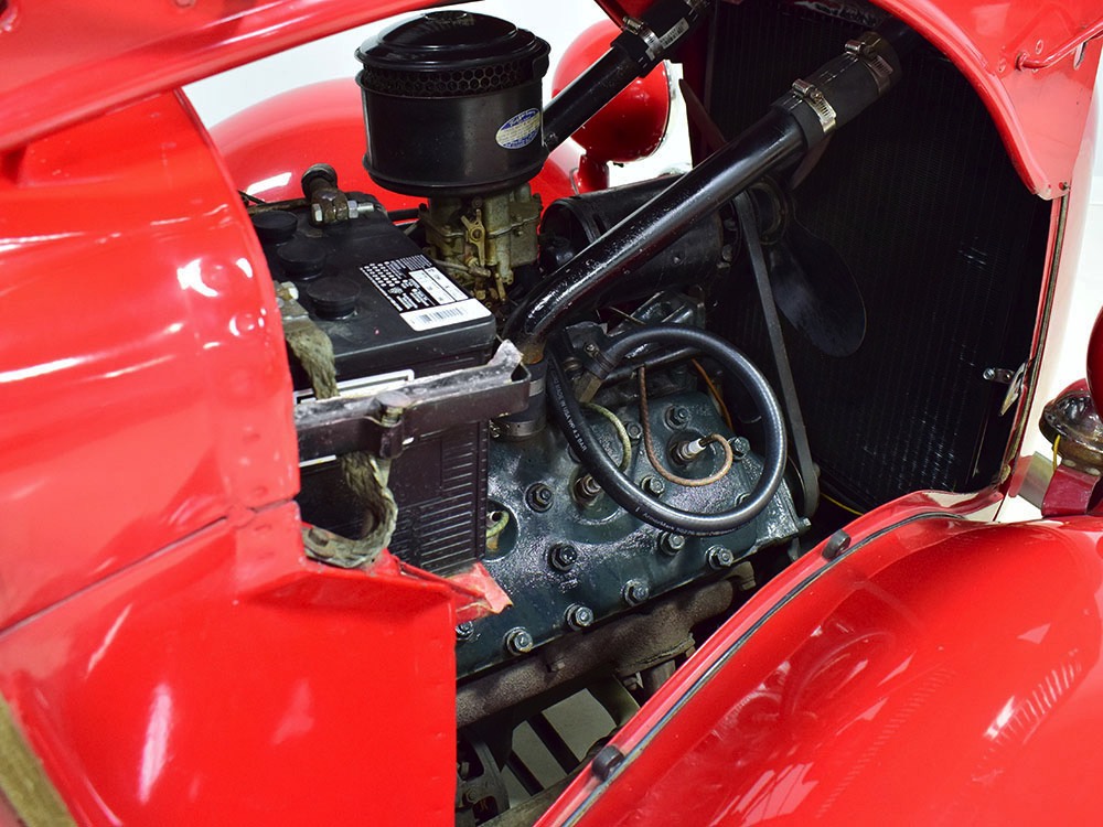 Although panel trucks were the workhorses of the ‘30s, Ford only built about 7800 panel deliveries like this bright red truck. The 1937 trucks were heavily redesigned with a new grille, bumpers, and hood to further distinguish them from their automotive siblings, although they maintain many car-like features. The proportions are excellent, showing that an artist was at work in the redesign, not just an engineer interested in maximizing practicality. The big barrel-shaped grill still echoes Ford design, as do the headlights and twin horns, but it’s more substantial and fits the bigger delivery bodywork. Beautiful details include the ornate body moldings and built-in side-mounted spare tire with a matching metal cover—nice! The bright red livery with hand-painted lettering is how it has looked from Day One, and while Henry Ford himself didn’t much care for red paint, it sure looks good here! We believe the mileage of 28,615 is authentic (it was only doing local deliveries, after all) and as a result the body never really had much of a chance to get rusty or banged up. We do have extensive restoration photos, but none show any serious metal work or body rot, so it feels surprisingly tight and solid even today. Sure, there are signs of use and age after 25 years of show duty, but it still presents extremely well and we find it almost irresistible sitting here in the showroom. Add in a few chrome details, including the optional rear bumper, add some sparkle and we love the Ford Blue ’85’ emblems (representing 85 horsepower) on the hood and the single industrial-style rear taillight, and you get one of the prettiest commercial vehicles we’ve seen in a long time.