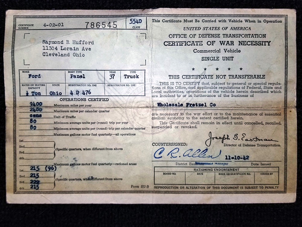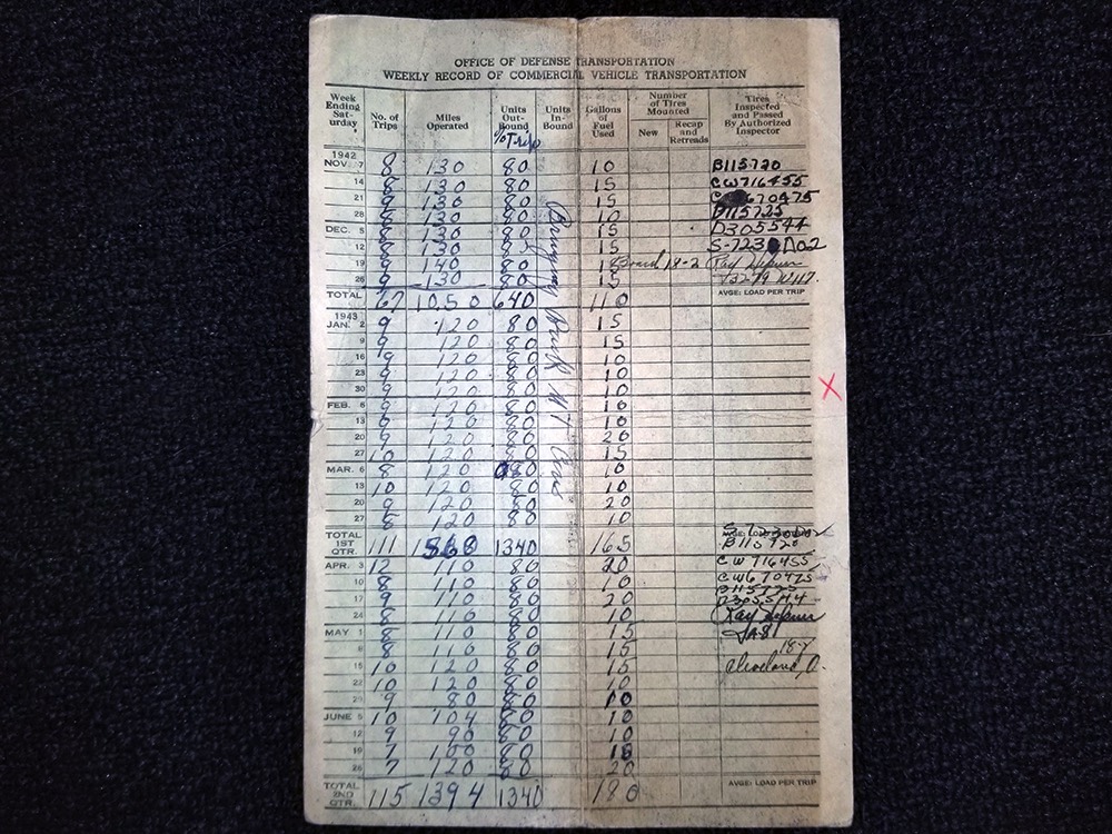 Documentation is extensive, including gas ration cards from the ‘40s, maintenance receipts, restoration photos, original purchase records, and more. The history is tangible with this truck!