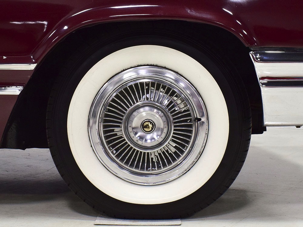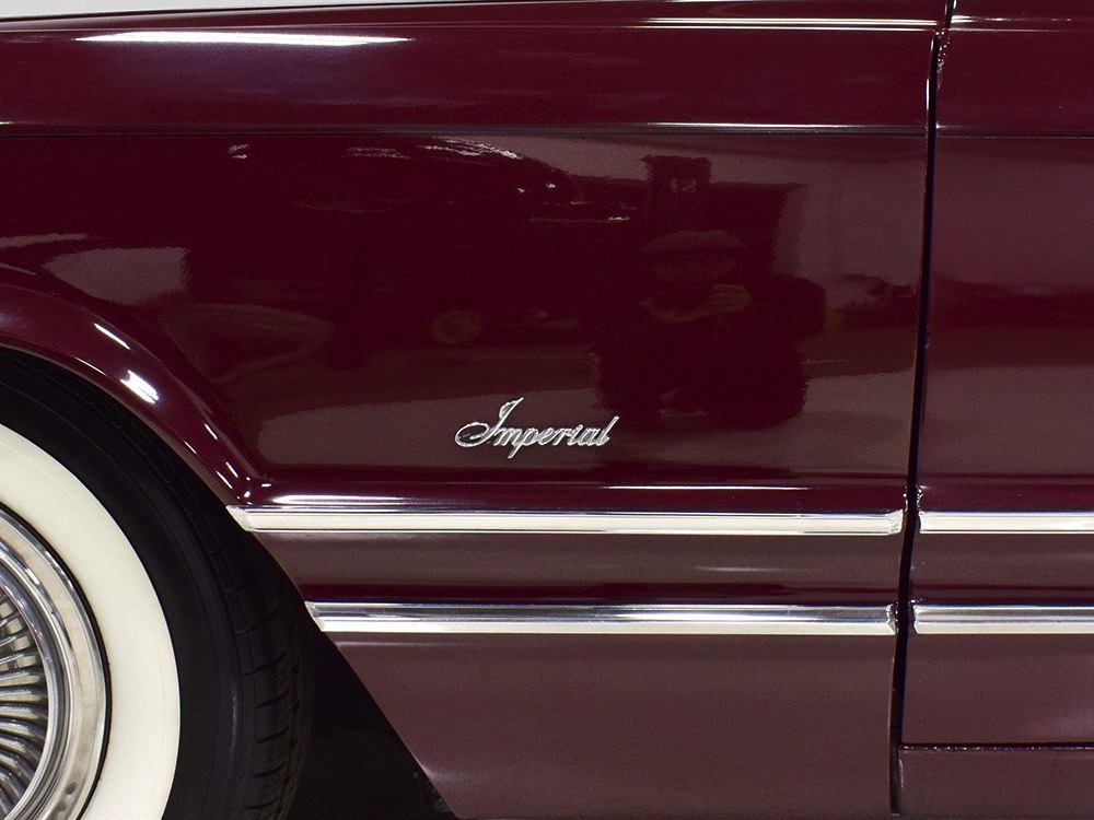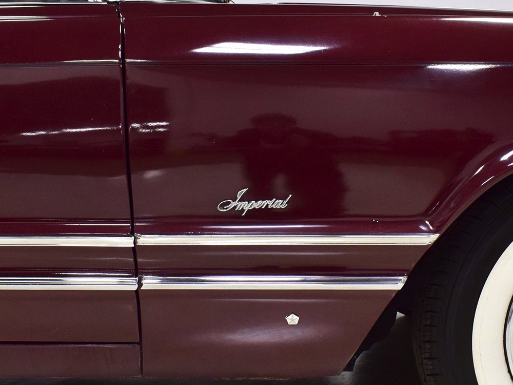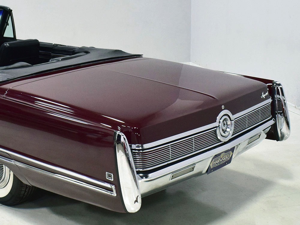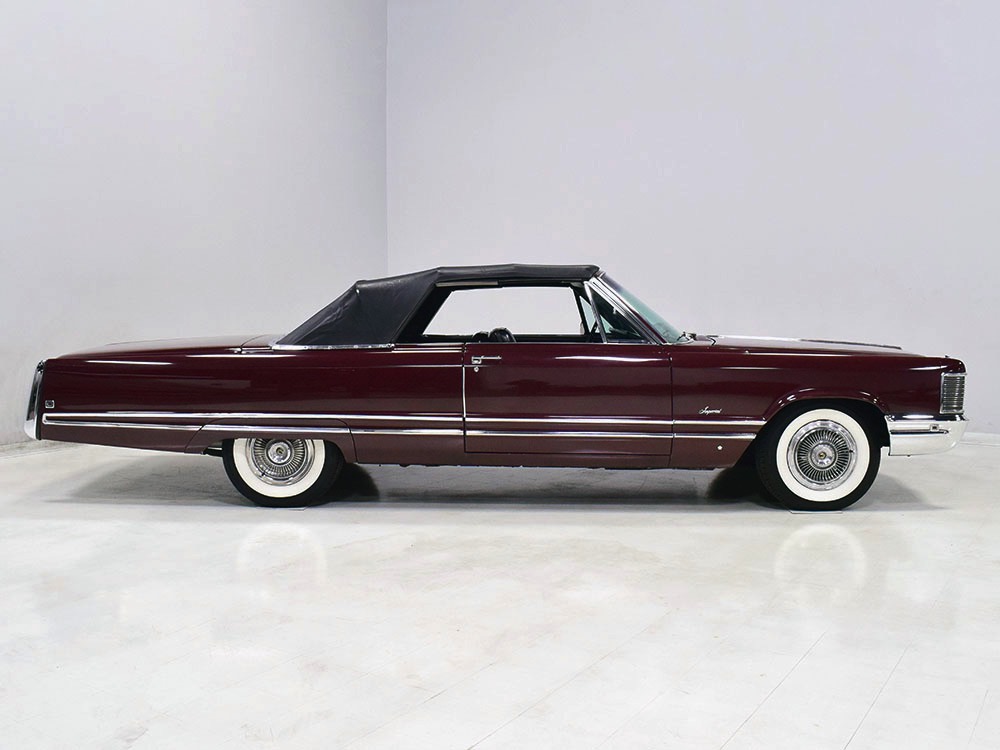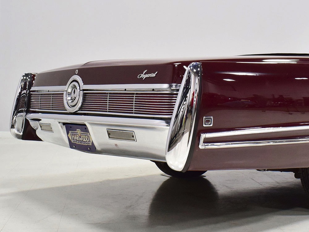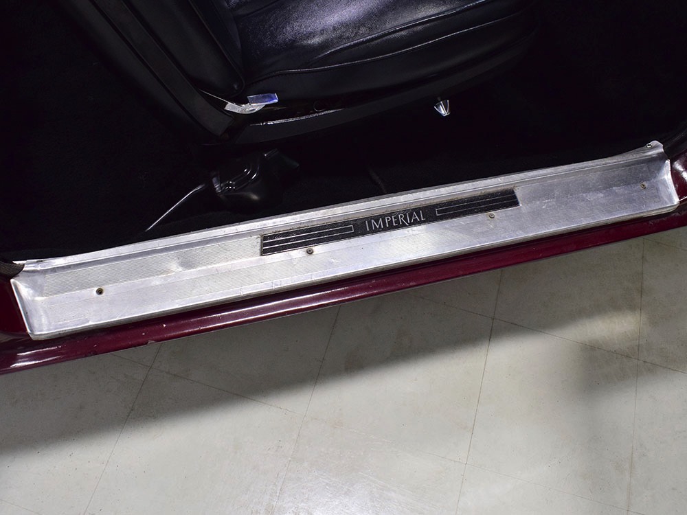 Today, this Imperial Crown ragtop offers an appealing combination of functionality and good looks, far from perfect but ideal for the enthusiast who wants to drive rather than show. The paint is a match for the original code RR Burgundy Metallic and while even the respray is now approaching its 30th birthday, it remains shiny and lustrous. There are a few minor signs of use and age, of course, but as a car that was never rusty or wrecked, the sheetmetal underneath remains in excellent condition. And that’s especially important on a car with mile-long quarter panels and clean, unadorned styling. The only issue of note is some bubbling on the driver’s lower rocker panel, but we do not believe this is a rust problem as everything around and behind it is completely solid—it is almost certainly a prep issue from the repaint. Beyond that, the chrome is original and in good overall condition and all the unique lenses and trim pieces are intact so you won’t have to hunt for any bits of unobtainium (important on a very rare car like this).
