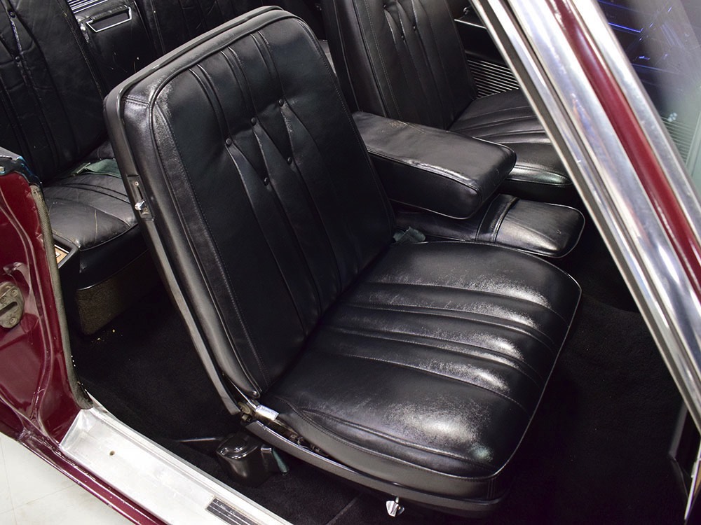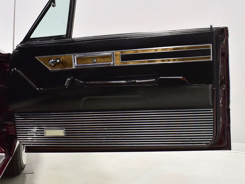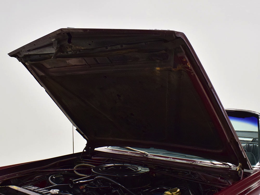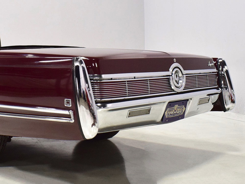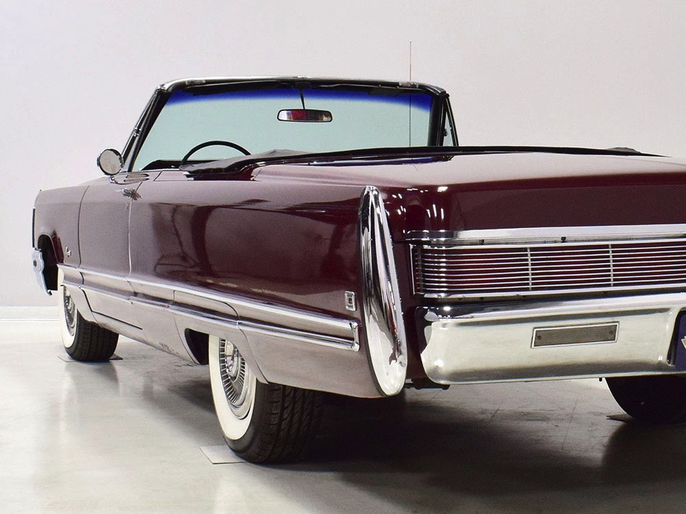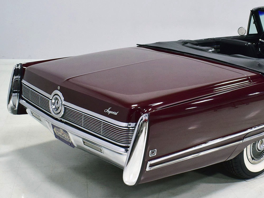 Today, this Imperial Crown ragtop offers an appealing combination of functionality and good looks, far from perfect but ideal for the enthusiast who wants to drive rather than show. The paint is a match for the original code RR Burgundy Metallic and while even the respray is now approaching its 30th birthday, it remains shiny and lustrous. There are a few minor signs of use and age, of course, but as a car that was never rusty or wrecked, the sheetmetal underneath remains in excellent condition. And that’s especially important on a car with mile-long quarter panels and clean, unadorned styling. The only issue of note is some bubbling on the driver’s lower rocker panel, but we do not believe this is a rust problem as everything around and behind it is completely solid—it is almost certainly a prep issue from the repaint. Beyond that, the chrome is original and in good overall condition and all the unique lenses and trim pieces are intact so you won’t have to hunt for any bits of unobtainium (important on a very rare car like this).