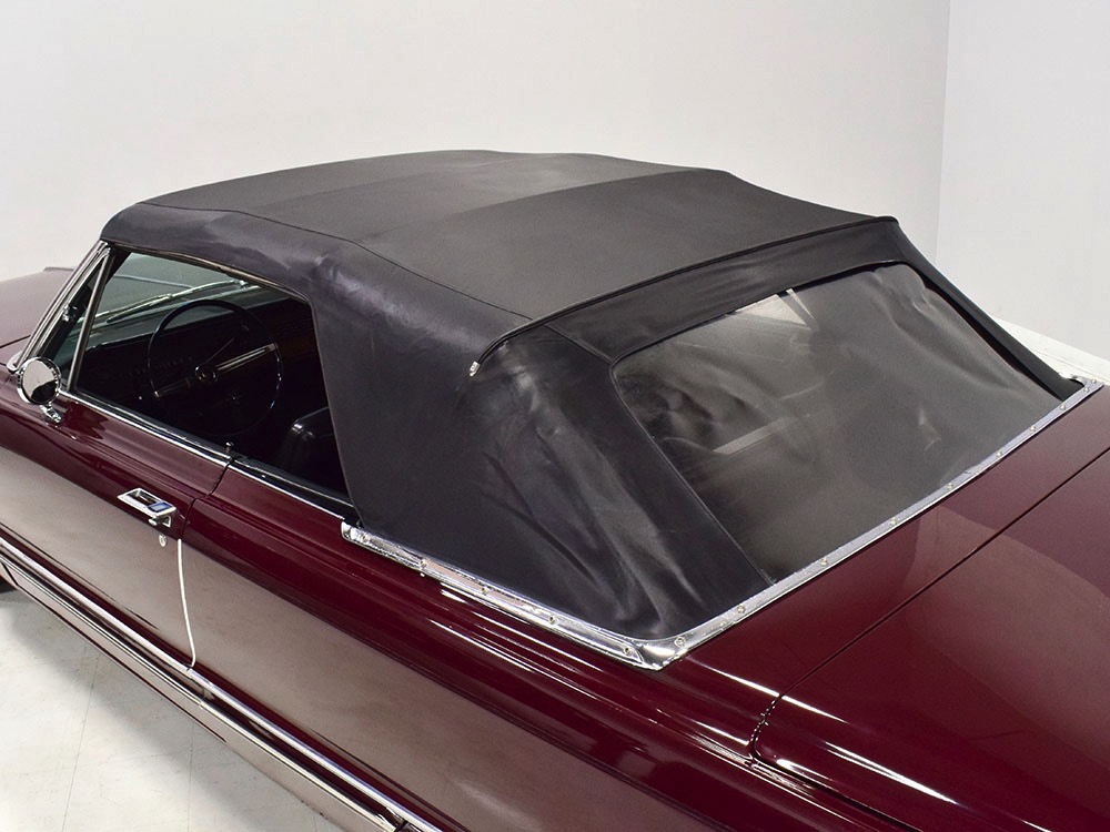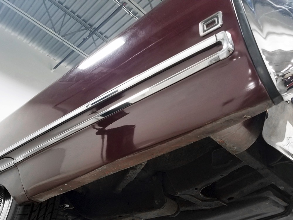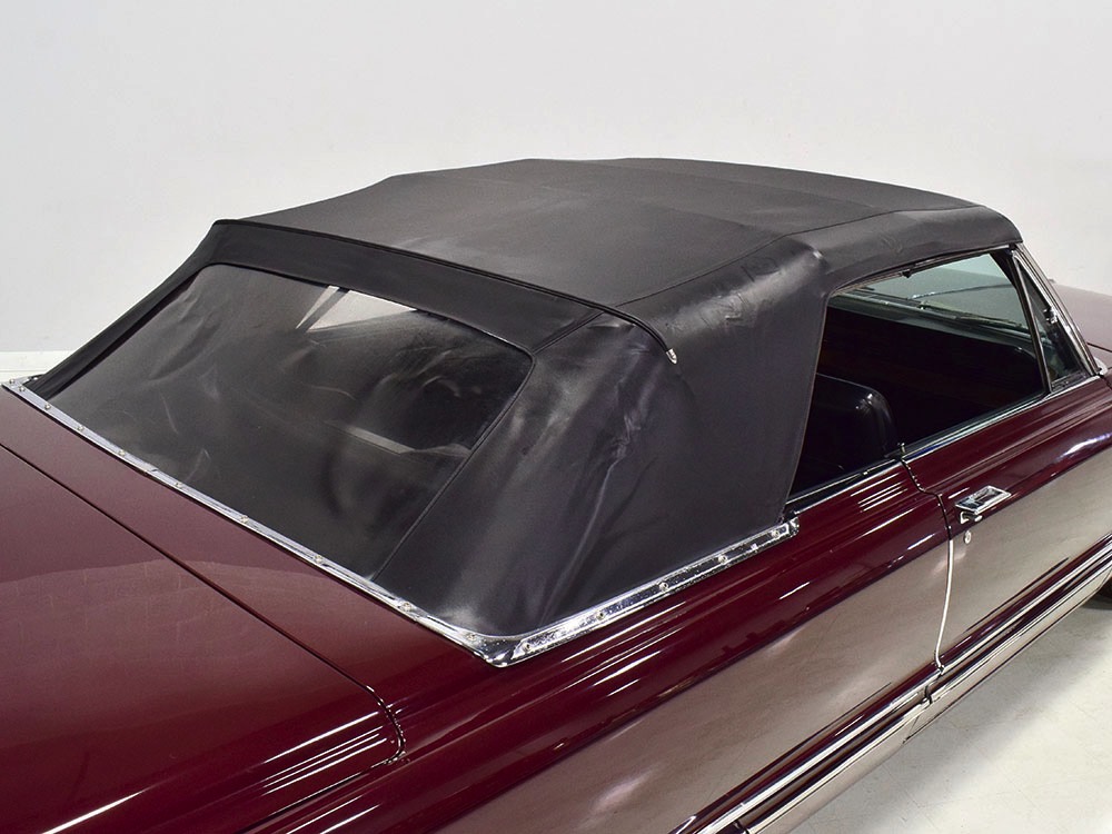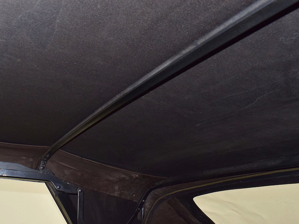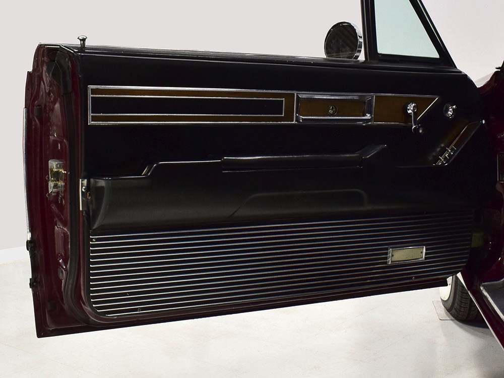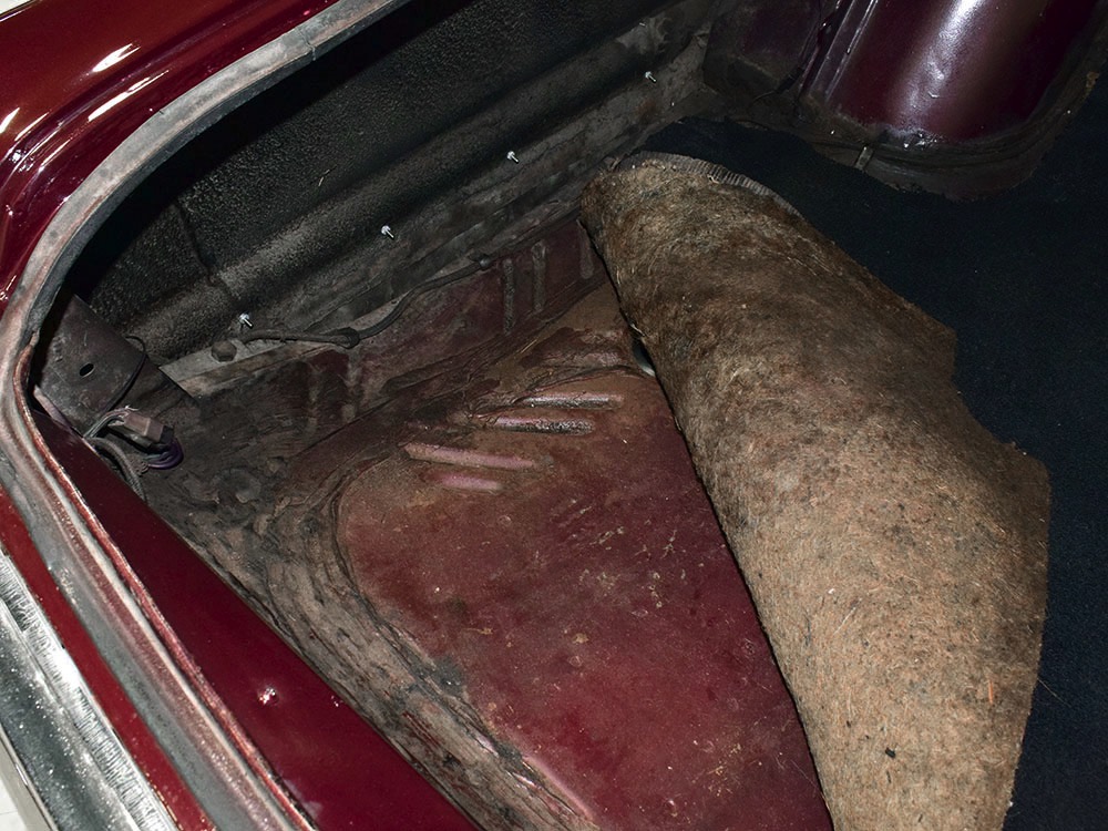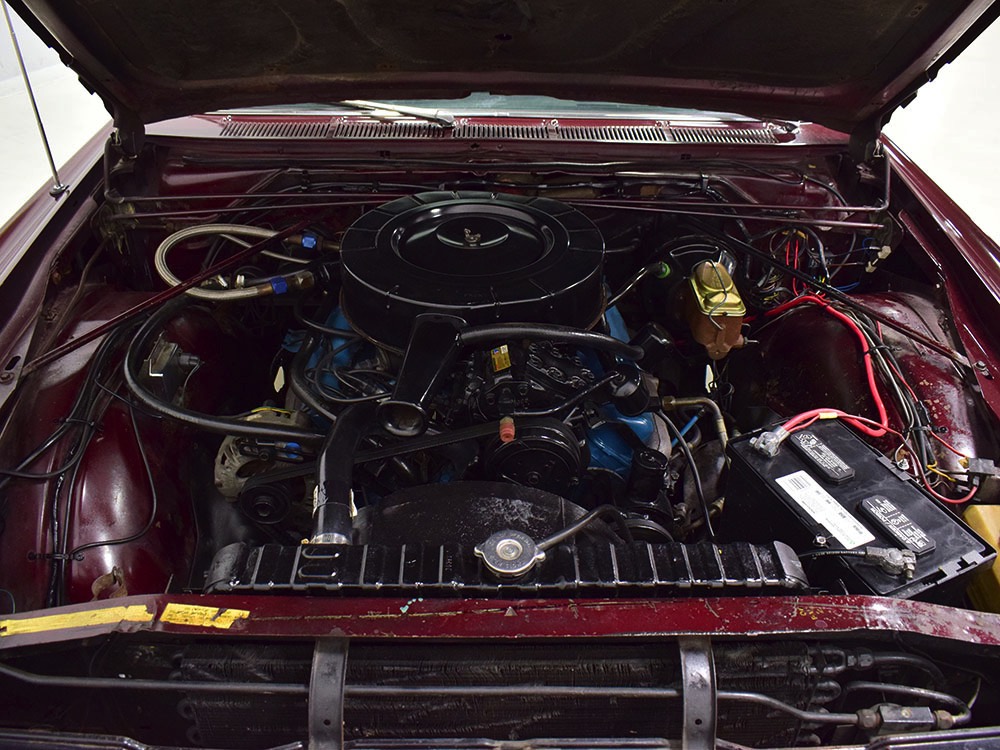 Today, this Imperial Crown ragtop offers an appealing combination of functionality and good looks, far from perfect but ideal for the enthusiast who wants to drive rather than show. The paint is a match for the original code RR Burgundy Metallic and while even the respray is now approaching its 30th birthday, it remains shiny and lustrous. There are a few minor signs of use and age, of course, but as a car that was never rusty or wrecked, the sheetmetal underneath remains in excellent condition. And that’s especially important on a car with mile-long quarter panels and clean, unadorned styling. The only issue of note is some bubbling on the driver’s lower rocker panel, but we do not believe this is a rust problem as everything around and behind it is completely solid—it is almost certainly a prep issue from the repaint. Beyond that, the chrome is original and in good overall condition and all the unique lenses and trim pieces are intact so you won’t have to hunt for any bits of unobtainium (important on a very rare car like this).