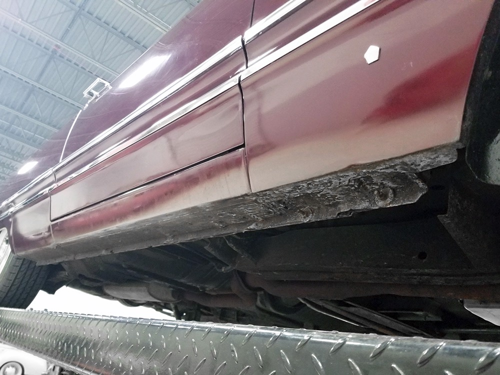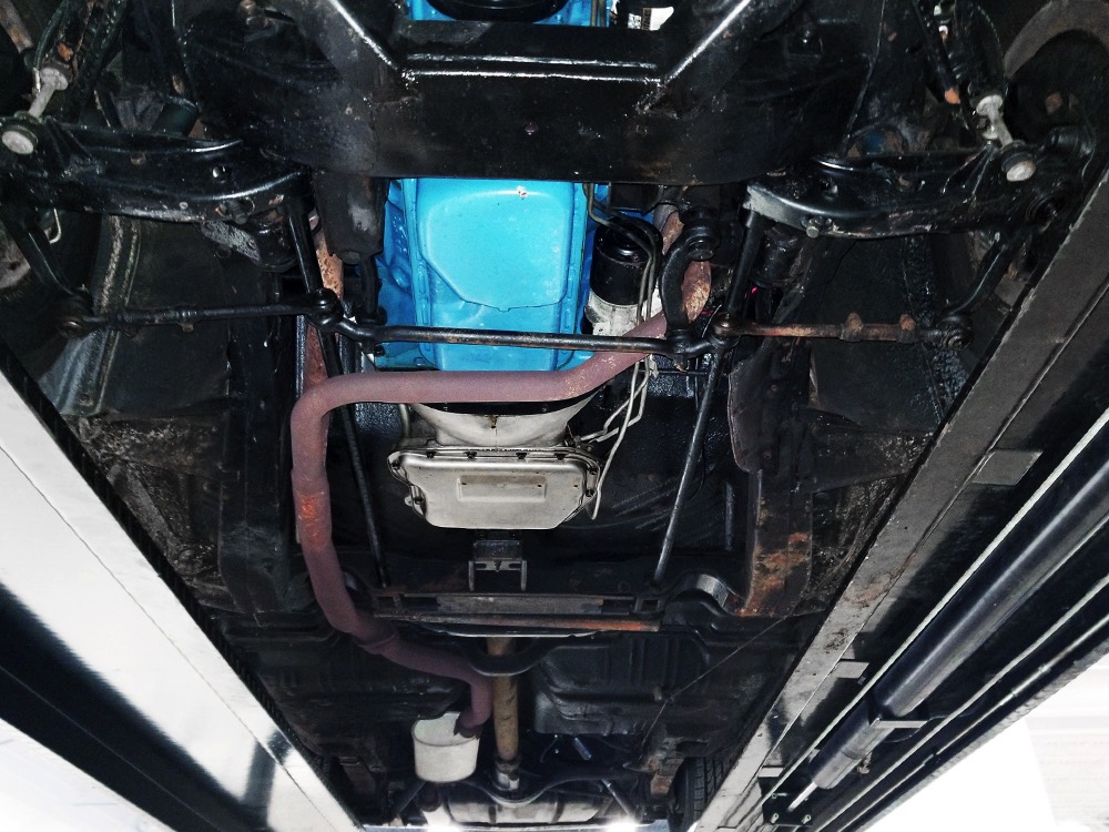Underneath you’ll find a very clean undercarriage, and the lack of structural rust is important on a unit-body car like the Imperial. The aforementioned TorqueFlite was rebuilt along with the engine, the brakes were rebuilt, and there are new components on the front end, so it tracks straight and steers well. Chrysler’s torsion bar suspension was one of their better ideas and combined with the new-for-1968 power front disc brakes with giant 4-piston calipers, this is a big car that feels competent on the road without being mushy. The floors are solid, the trunk extensions and quarter panels are original, and an electric fuel pump with bypass was added to help prime the big carburetor after periods of inactivity (this was a collector car that was used sparingly for much of its life). 2.94 gears out back make this a fantastic highway cruiser and the big torque of the 440 means it never feels like it’s working very hard at all. The gas tank was cleaned and sealed a few years ago and it sits on fresh 235/75/15 wide whitewall radials from Diamondback Classic that make a huge difference in ride and handling.