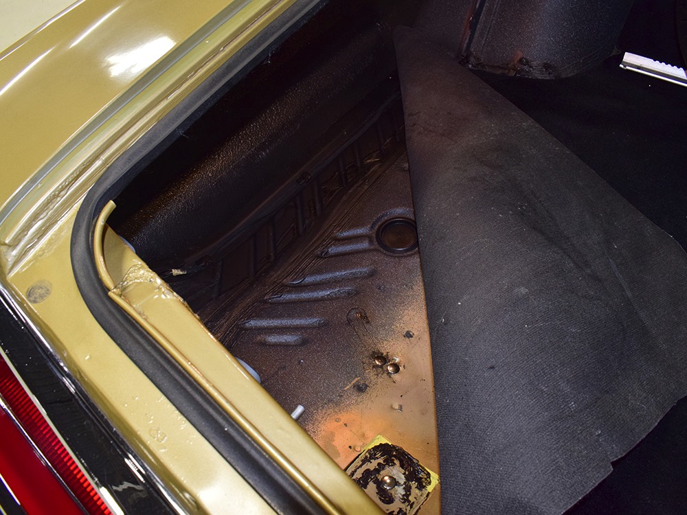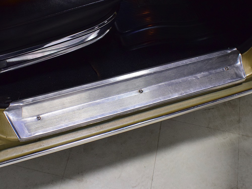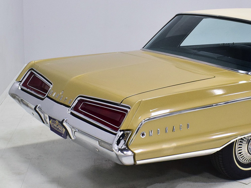 Gold is a great period color and it appears that the paint on this Monaco has been touched up here and there but we don’t believe the car has ever been fully repainted. Thanks to a lifetime in California (Mr. Trefrew kept it until 1991, when the second owner bought it and took it to San Francisco, where it remained until 2017), the vinyl top is in great shape with no visible issues underneath. There's no evidence of previous accidents or rust, and all four doors fit well and close with a fantastic kerCHUNK sound. There are, of course, a few signs of use and a slightly amateurish touch-up on the right rear quarter where it probably grazed the side of a garage door opening, but like all good survivors, it has weathered the past 53 years and 51,000 miles rather well. I mean, there aren’t even any door dings on those vast, unprotected flanks. The chrome is in fantastic shape without even a parking ding on a bumper and those giant taillights are probably Chrysler’s best variation on that particular theme. Experts will note that this 1967 car has side marker lights, which weren't mandated until 1968, but apparently the first owner—a professional mechanic—added them after seeing them on later cars simply because he liked the look.