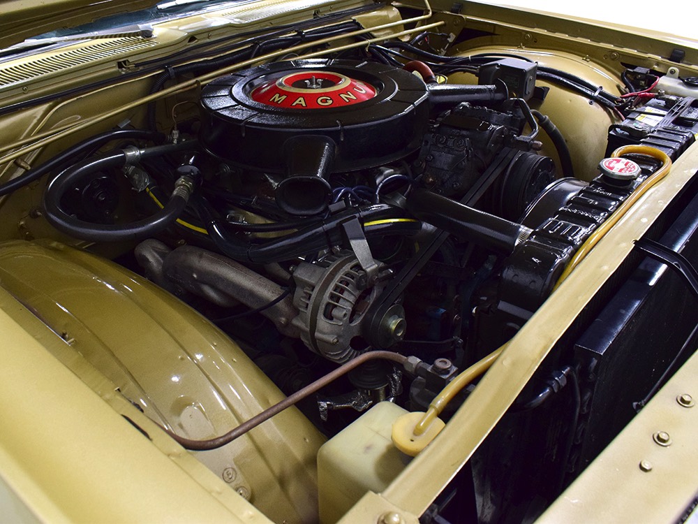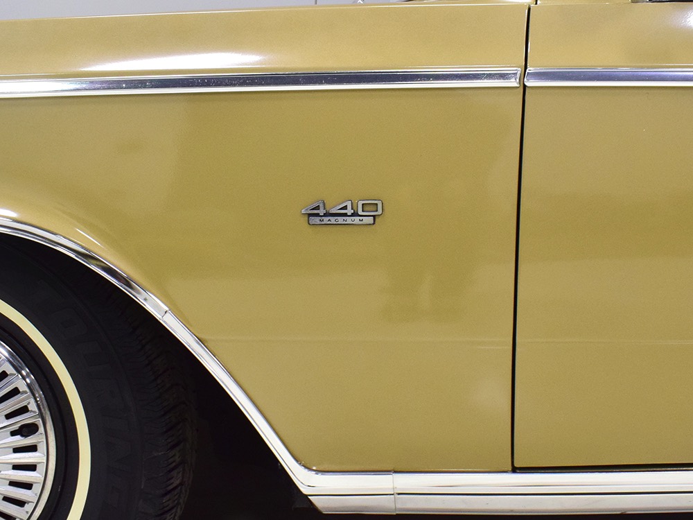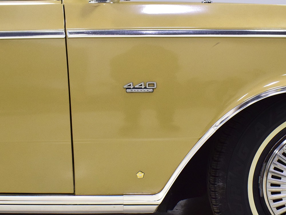 The 440 cubic inch Magnum V8 is the same one that delivered legendary performance in Chrysler's most potent muscle cars, delivering 375 horsepower and 480 pounds of torque, all with hardly a vibration. There's a newer Edelbrock carburetor on top, but otherwise the engine is unmodified and runs beautifully. Quick starts, a nice idle, and plenty of grunt at virtually any speed make this big sedan feel far more expensive than it is. The engine bay is nicely detailed and shows plenty of evidence of conscientious maintenance--we have one receipt dating from just a few years ago adding up to more than $2000, which included things like a new radiator core, water pump, the aforementioned carburetor, a full brake job, master cylinder, and new mufflers. It runs and drives superbly with no issues, no hiccups, and no reason not to embark on another cross-country drive.