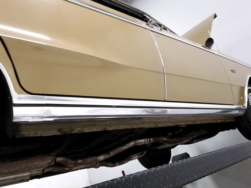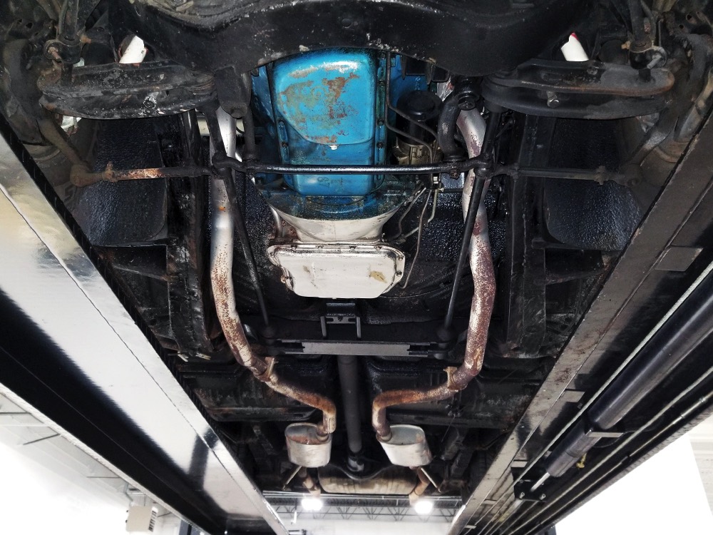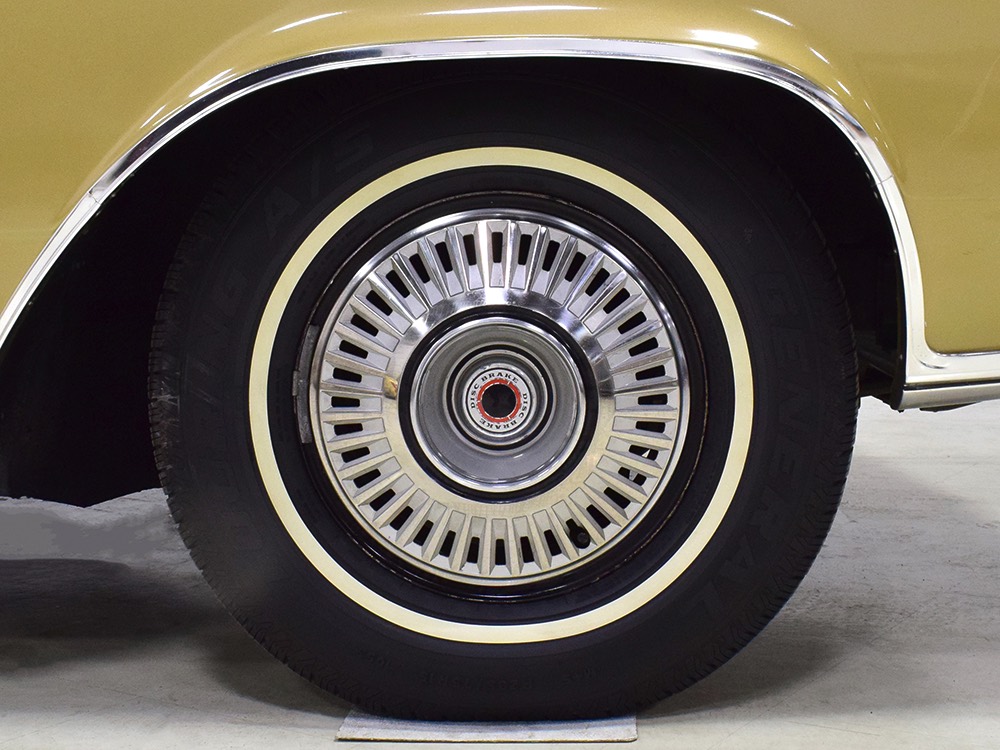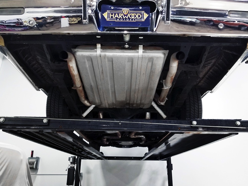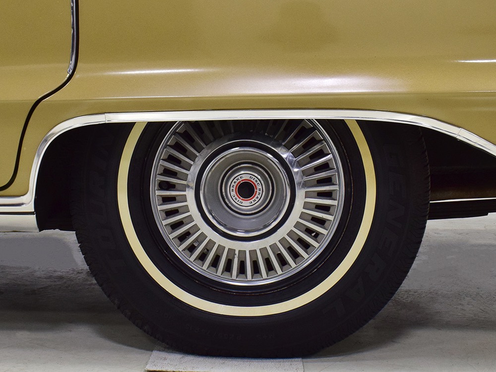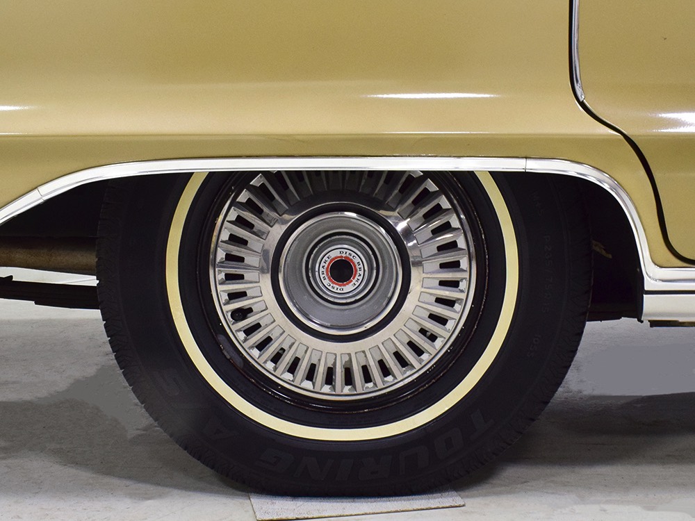 The original invoice shows undercoating was part of the deal in 1967 and it's still clinging to the bottom of the car, so rust is obviously a non-issue. The TorqueFlite 3-speed automatic transmission spins 3.23 gears out back and thanks to new shocks the ride is like most American luxury cars of the period: smooth and effortless. The new-for-1967 power front disc brakes are quite effective and while steering feel is best described as over-boosted, it tracks down the road without any drama making this an excellent road trip vehicle. The exhaust note is muscular without being aggressive, which is just right for a low-key sedan like this, although we do find the two big pipes poking out from under the rear bumper a bit menacing. There’s also a newer gas tank hanging out back. Factory wheels wear special hubcaps advertising the newly-available disc brakes and carry recent 235/75/15 whitewall radials.