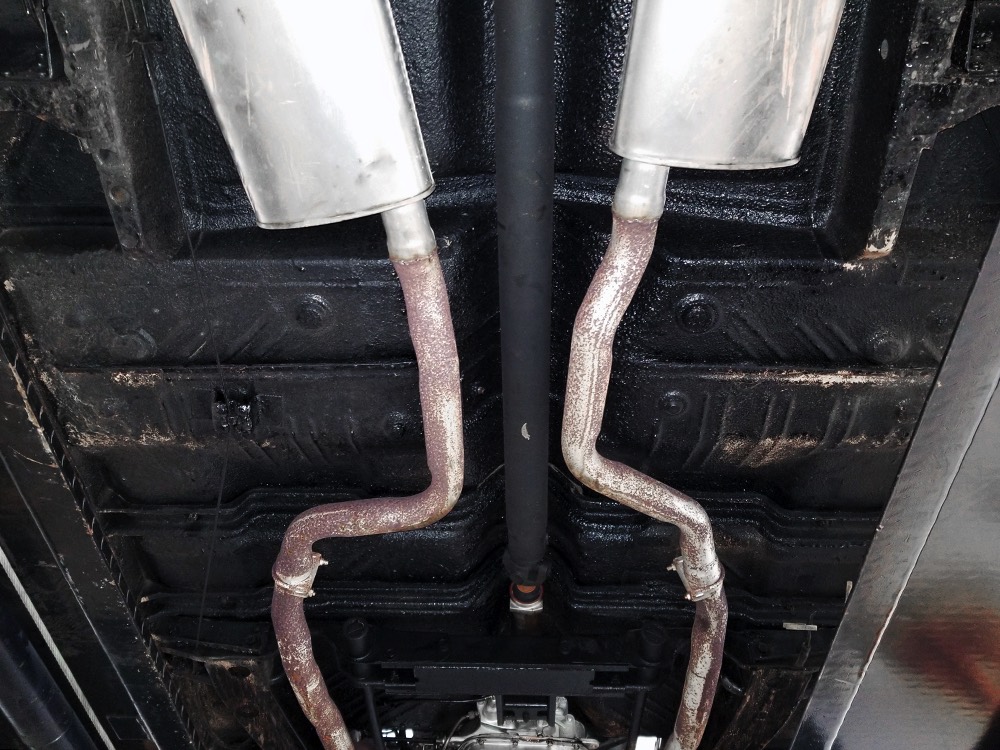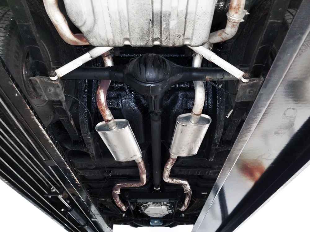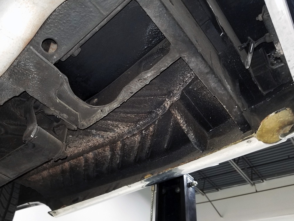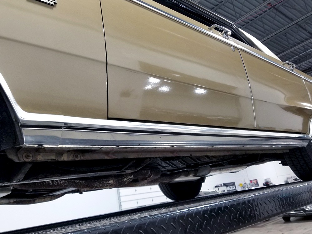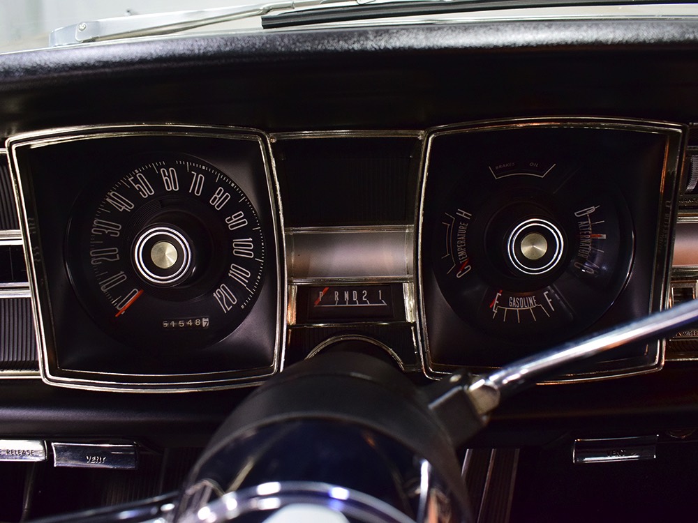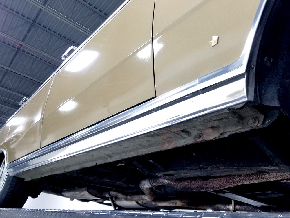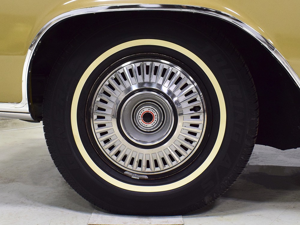 The original invoice shows undercoating was part of the deal in 1967 and it's still clinging to the bottom of the car, so rust is obviously a non-issue. The TorqueFlite 3-speed automatic transmission spins 3.23 gears out back and thanks to new shocks the ride is like most American luxury cars of the period: smooth and effortless. The new-for-1967 power front disc brakes are quite effective and while steering feel is best described as over-boosted, it tracks down the road without any drama making this an excellent road trip vehicle. The exhaust note is muscular without being aggressive, which is just right for a low-key sedan like this, although we do find the two big pipes poking out from under the rear bumper a bit menacing. There’s also a newer gas tank hanging out back. Factory wheels wear special hubcaps advertising the newly-available disc brakes and carry recent 235/75/15 whitewall radials.