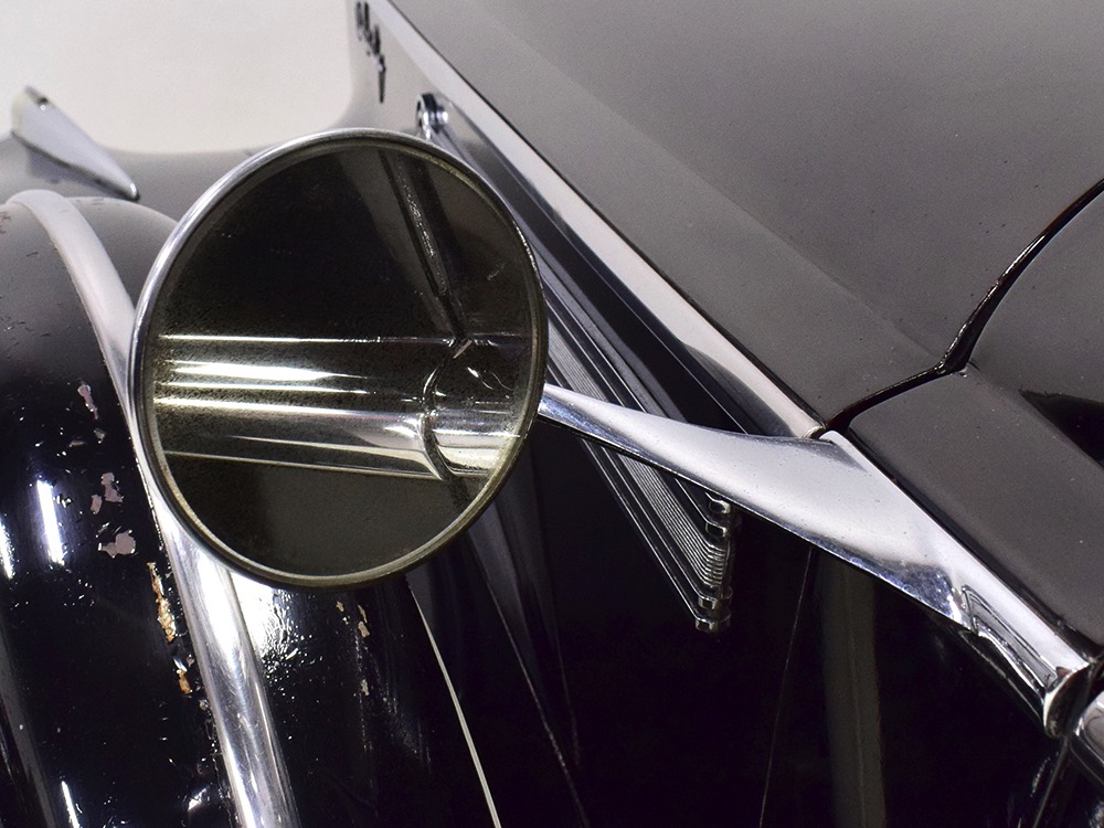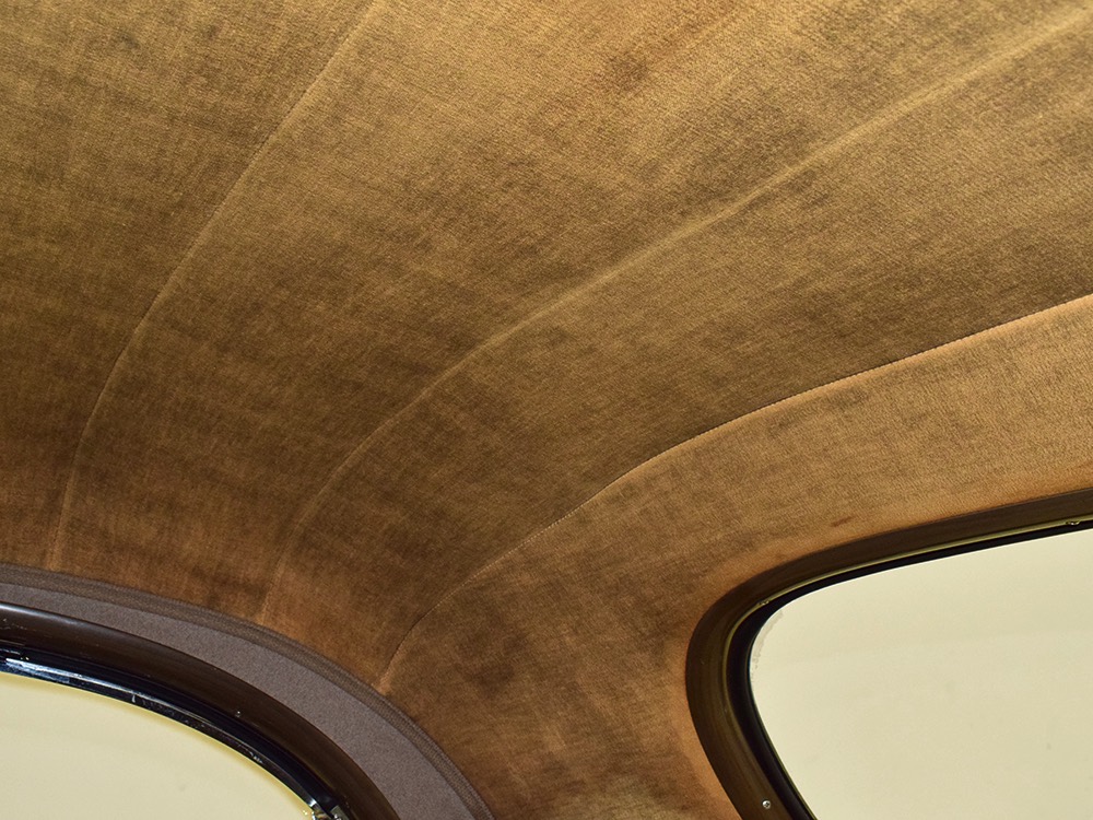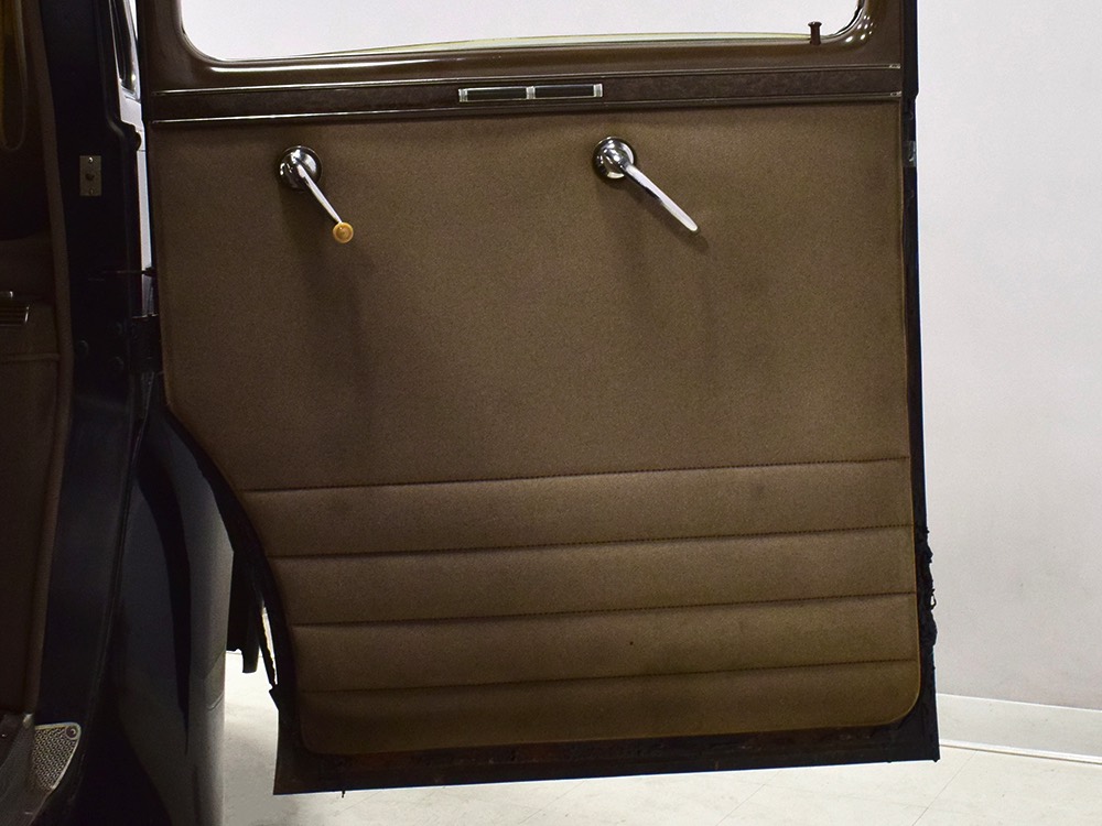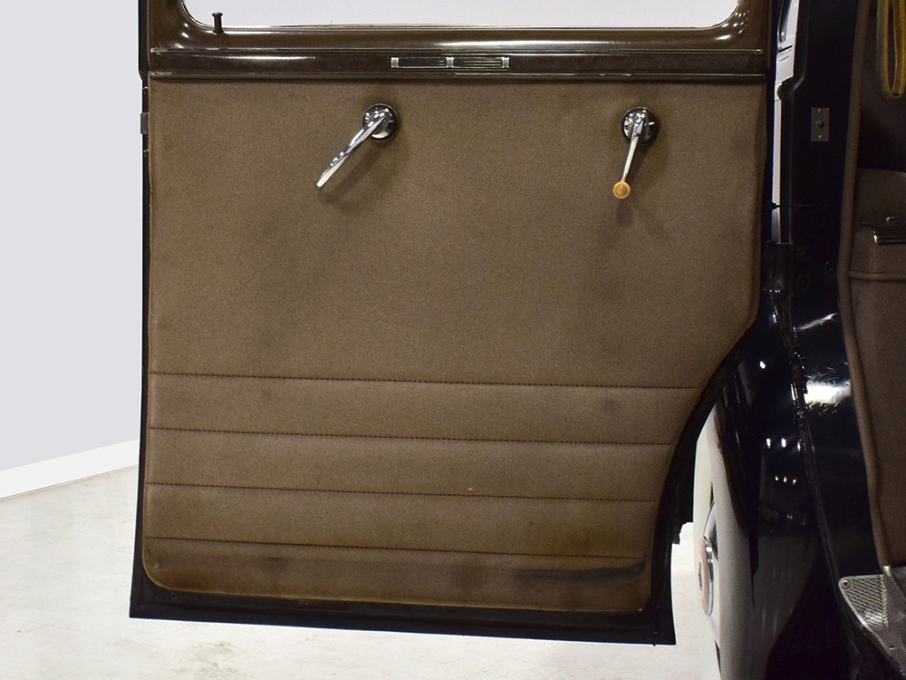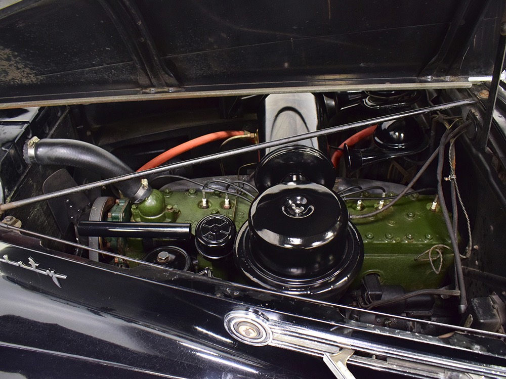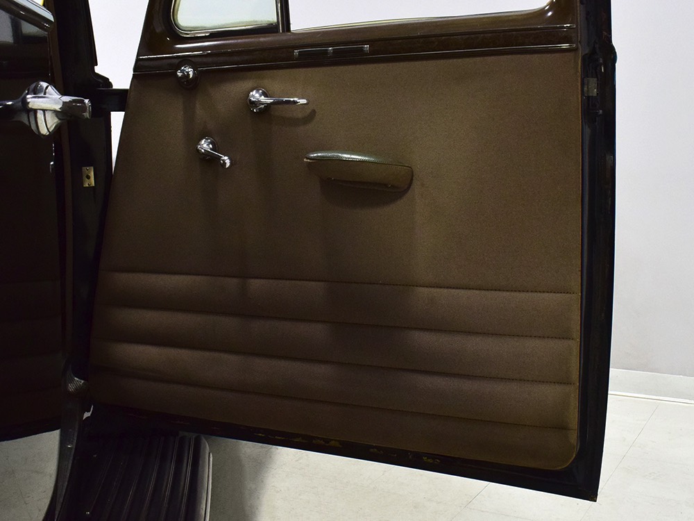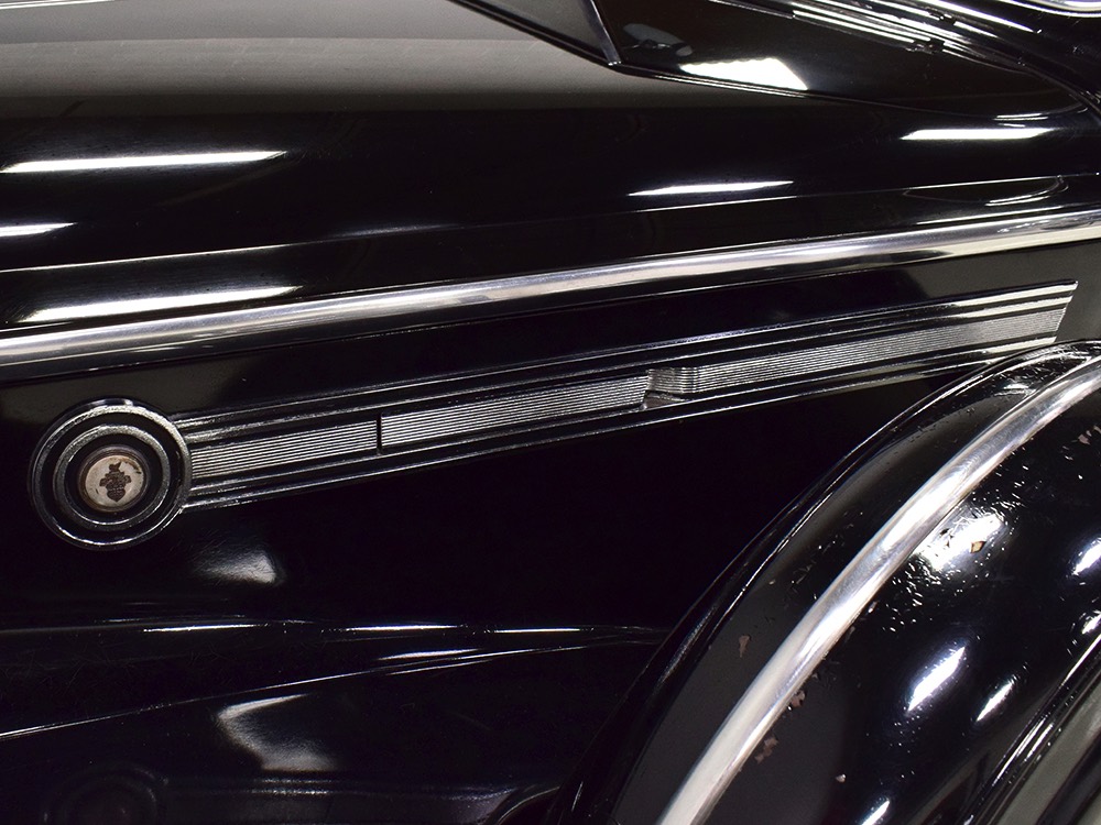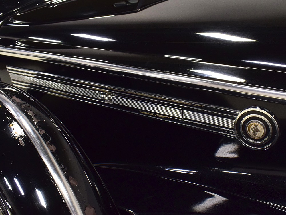 The glossy black lacquer paint shows why Packards were special, and even after nearly 80 years it shines up beautifully. Yes, of course there are signs of age, including some minor checking and some chips in the finish, most notably on the sidemount covers, but nothing that requires attention or detracts from the presentation. Original paint is special for a variety of reasons, not the least of which is the fact that there is no bad news hiding underneath—original paint means original steel and no botched bodywork for a new owner to manage. The quality of the finish is testament to the car’s care, which was surely impeccable while in funeral home service, and thereafter it was treated as a special car, used only on weekends during nice weather. This car has been loved and it shows. It looks a bit nicer in photos than it does in person, simply because the camera can’t capture the minor crazing and micro-blisters, but even in person is presents beautifully. Again, people who understand survivors will find it lovely while those who insist on shiny perfection will wonder about the cost of a paint job. It is my personal and professional opinion that painting this car would be a crime.