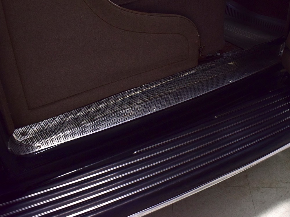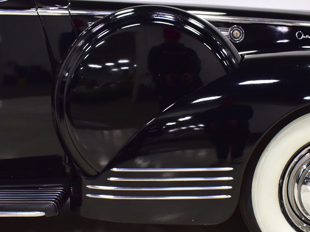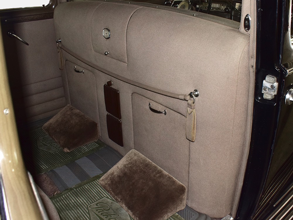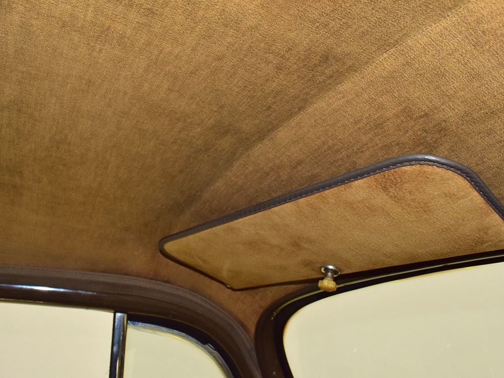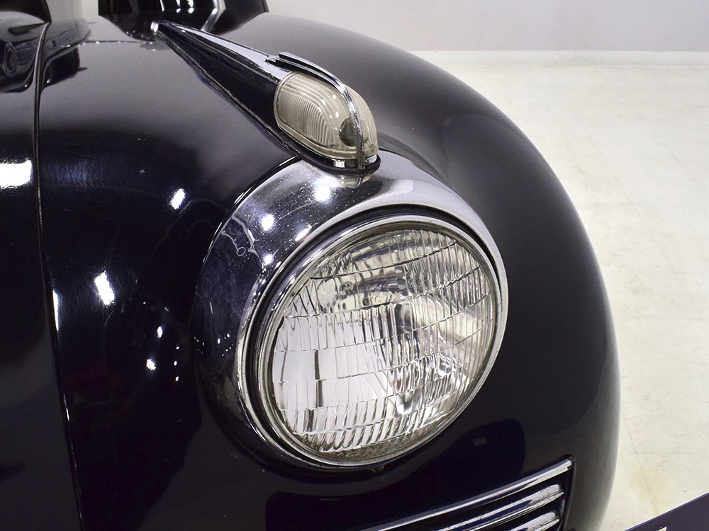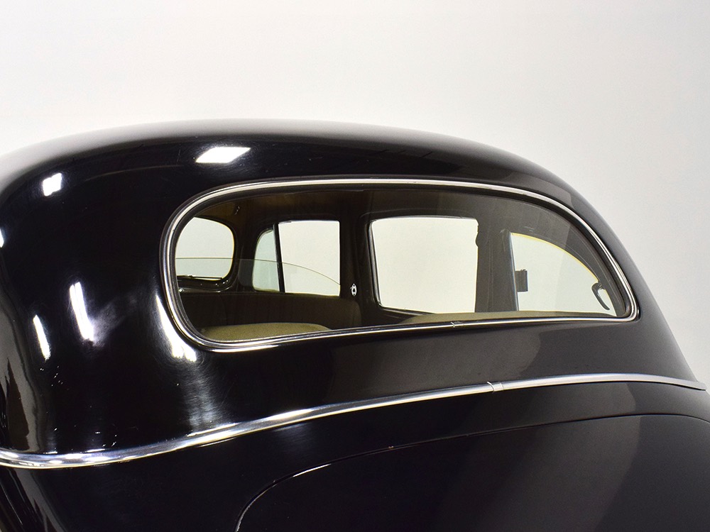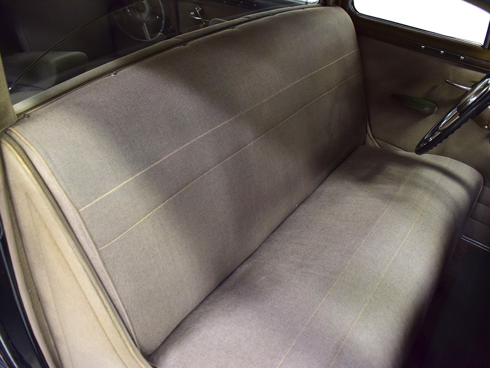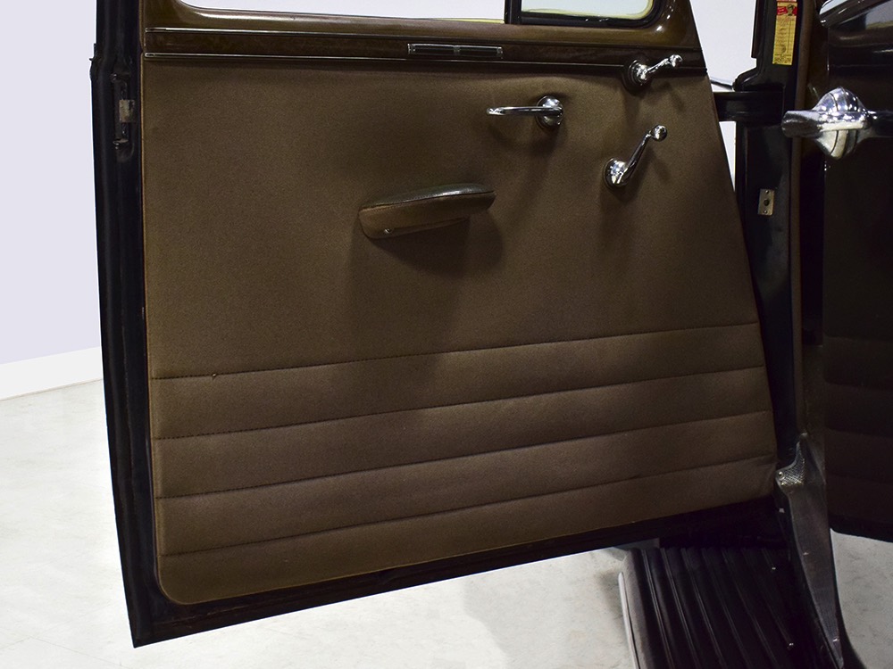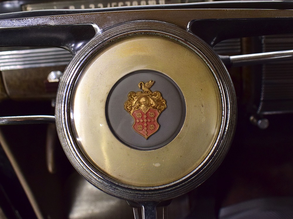 The glossy black lacquer paint shows why Packards were special, and even after nearly 80 years it shines up beautifully. Yes, of course there are signs of age, including some minor checking and some chips in the finish, most notably on the sidemount covers, but nothing that requires attention or detracts from the presentation. Original paint is special for a variety of reasons, not the least of which is the fact that there is no bad news hiding underneath—original paint means original steel and no botched bodywork for a new owner to manage. The quality of the finish is testament to the car’s care, which was surely impeccable while in funeral home service, and thereafter it was treated as a special car, used only on weekends during nice weather. This car has been loved and it shows. It looks a bit nicer in photos than it does in person, simply because the camera can’t capture the minor crazing and micro-blisters, but even in person is presents beautifully. Again, people who understand survivors will find it lovely while those who insist on shiny perfection will wonder about the cost of a paint job. It is my personal and professional opinion that painting this car would be a crime.